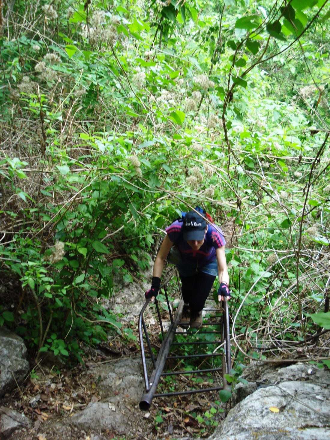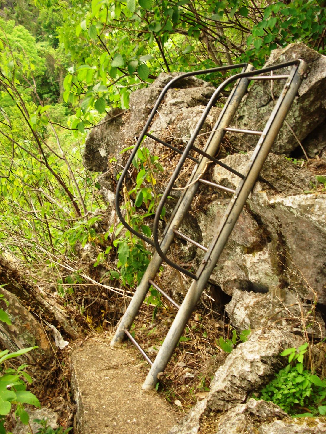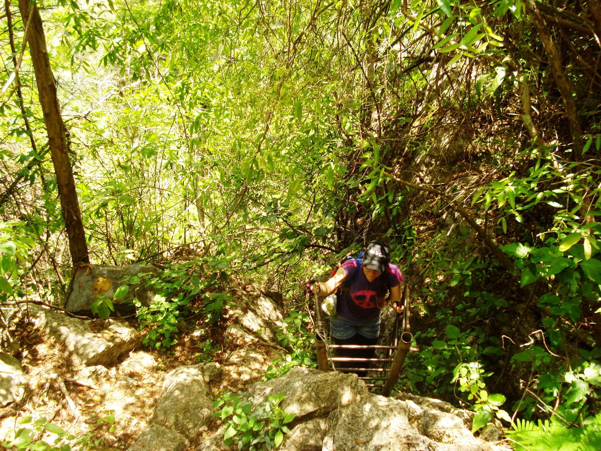 That climb made us sweat a lot. When we almost touched the wall of the Morro we entered a part with vegetation that gave us shade and a few steps away, there was the iron staircase! We screamed with excitement hehehe ...