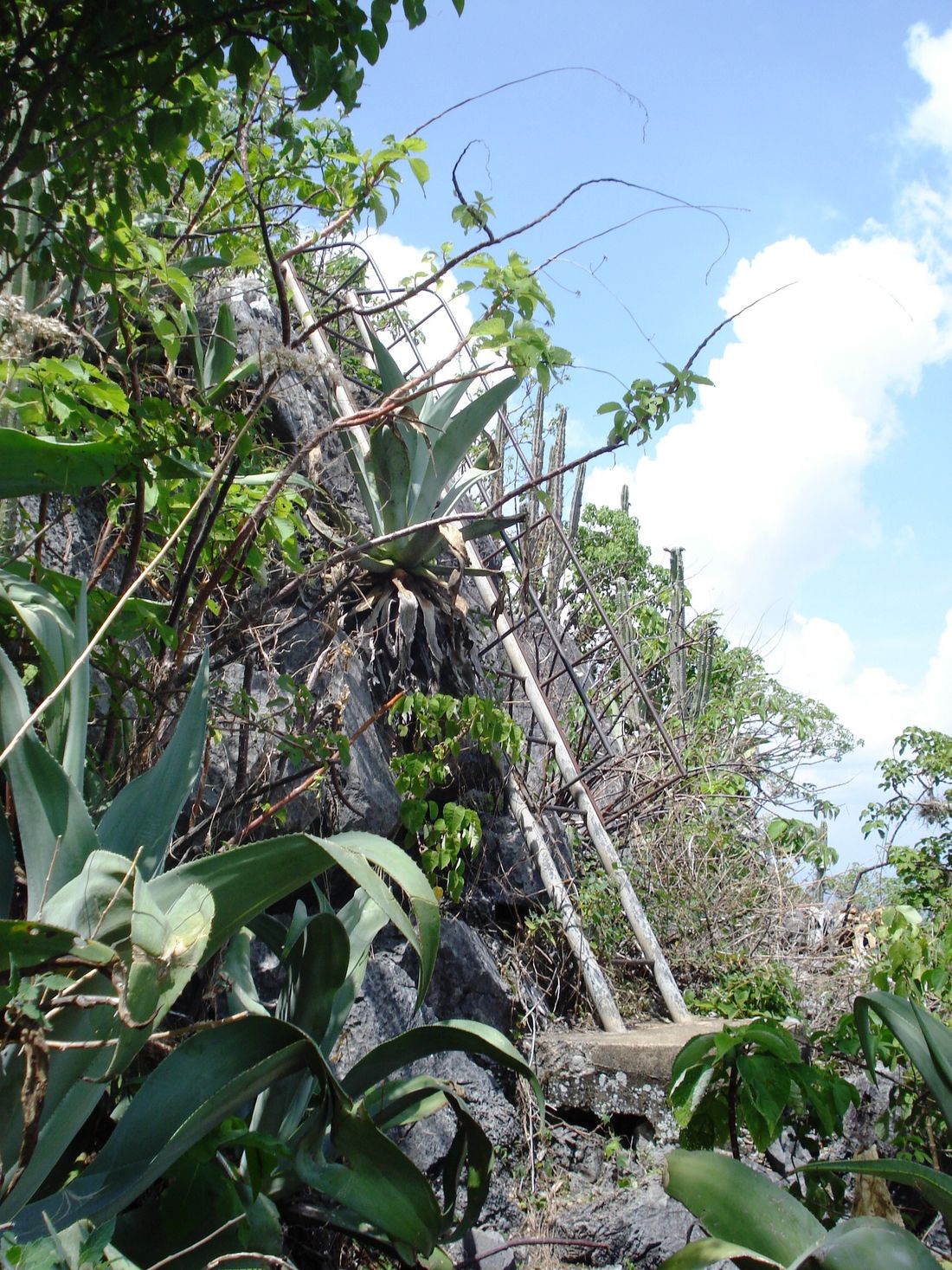 Since the ascent up the different stairs begins, the vegetation is dense and the climate cool, very different from the heat we experience on the way to the wall of Morro Mayor.