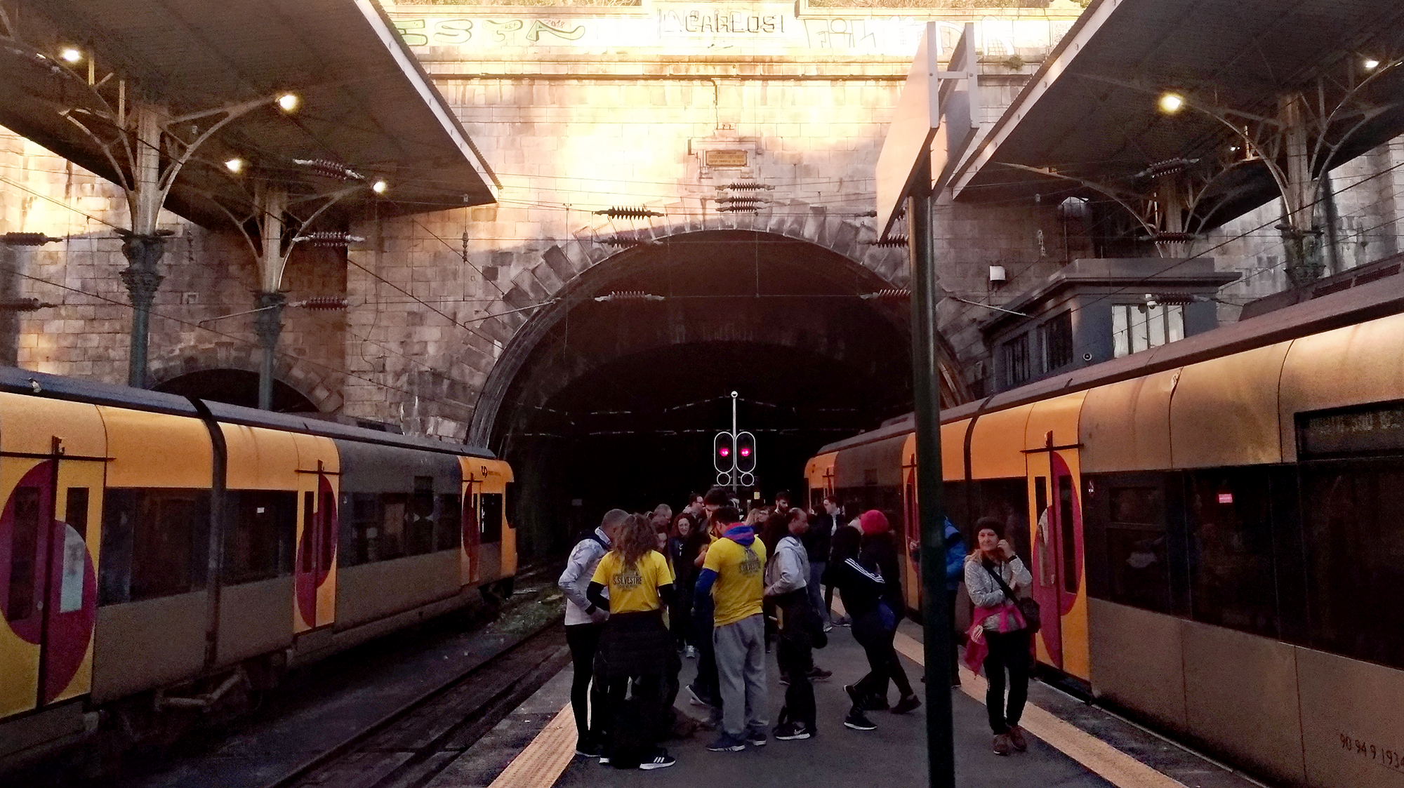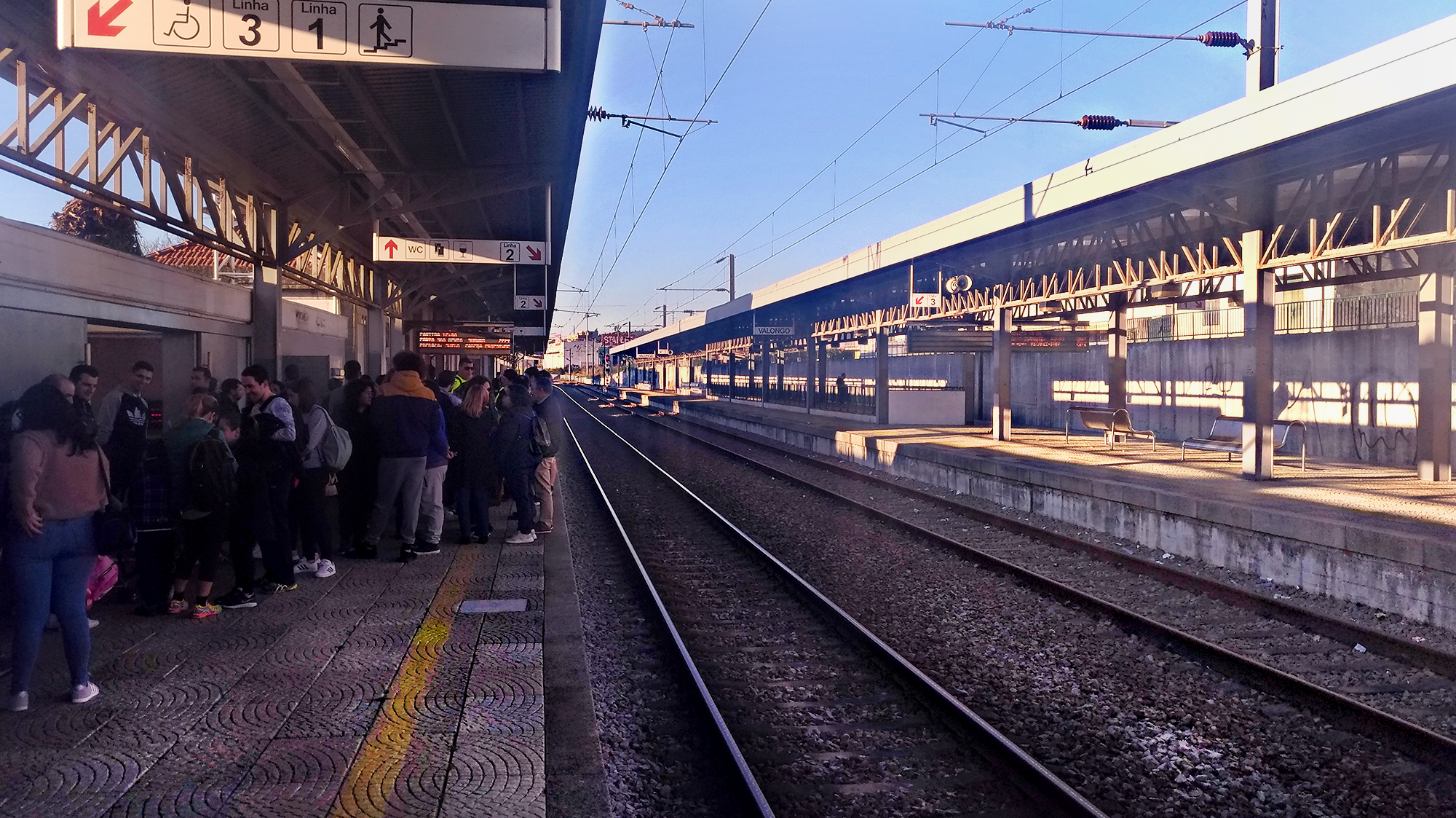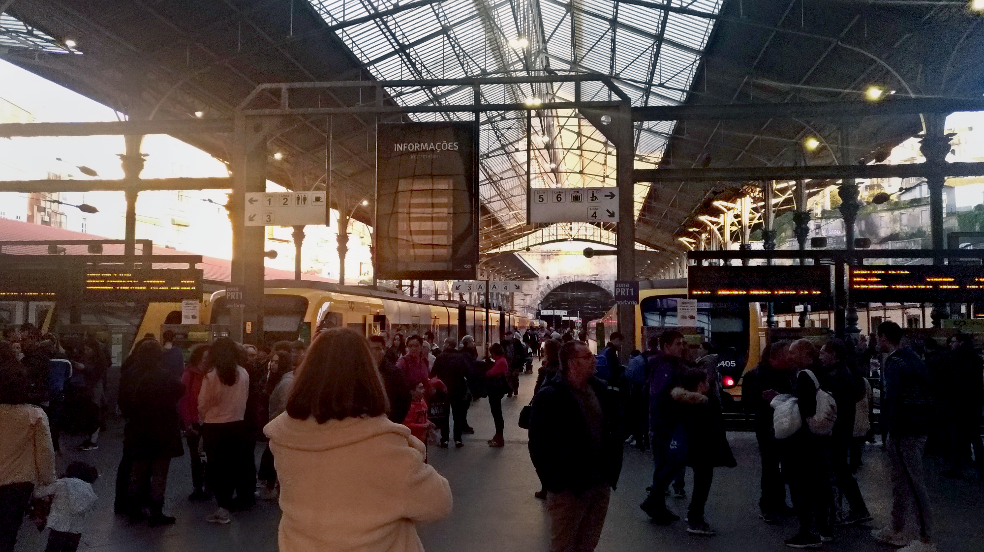 The train arrived completely crowded, so the 30-minute trip to Porto was made on foot and there were bumps between people who took advantage of the trip to warm up.