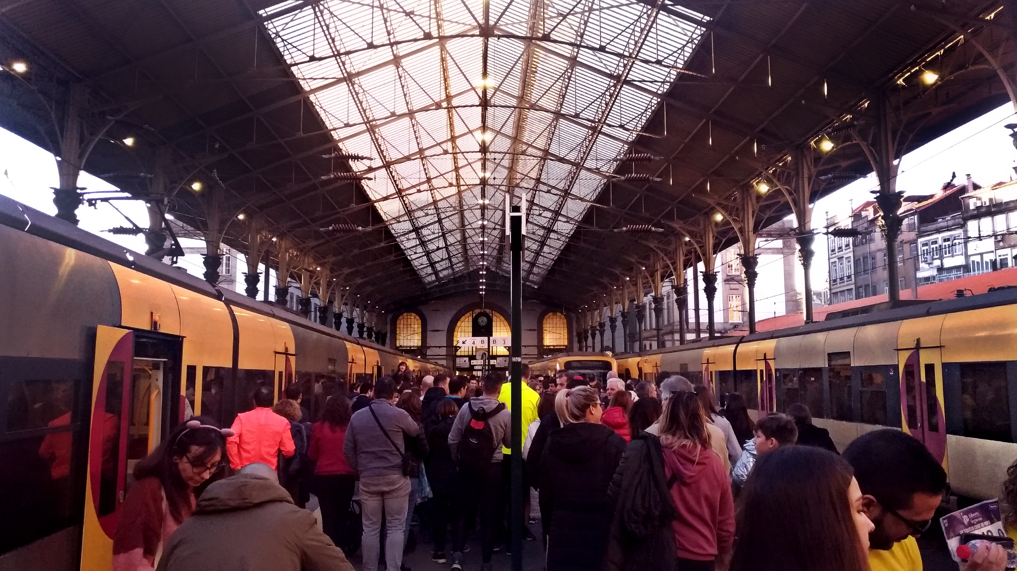 Before departure and still at the train station, I began to find a bit strange the abnormally high number of people waiting to catch the train, but by the equipment they wore quickly I came to the conclusion that it was on that Sunday that the famous Sao Silvestre do Porto race took place. .