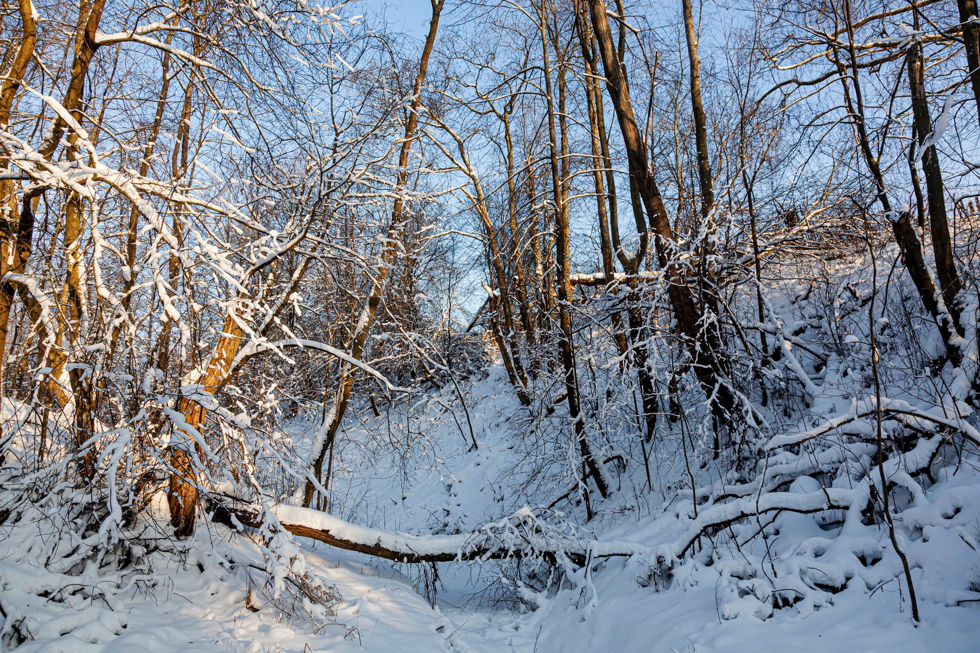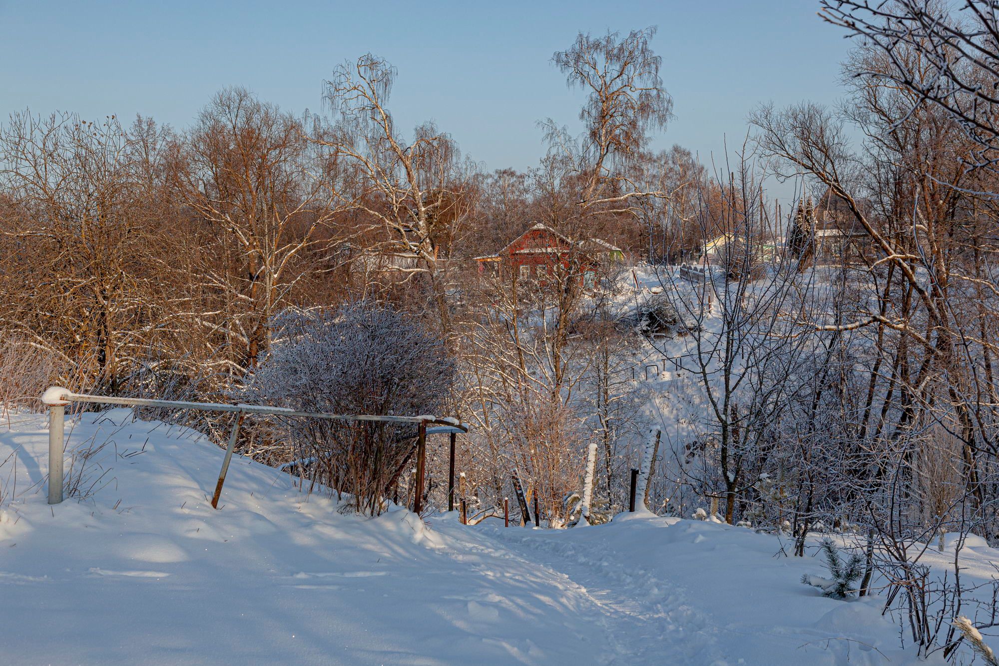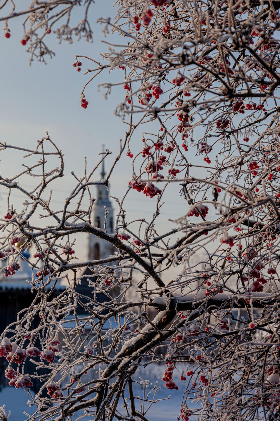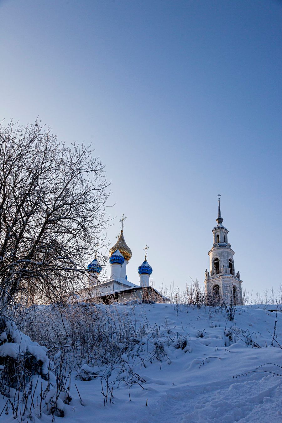 The village of Teterinskoe is one of such places. There is a deep picturesque ravine. There is a beautiful high bell tower with history. There are beautiful wooden houses and trees with red berries, which are very good against the background of snow.