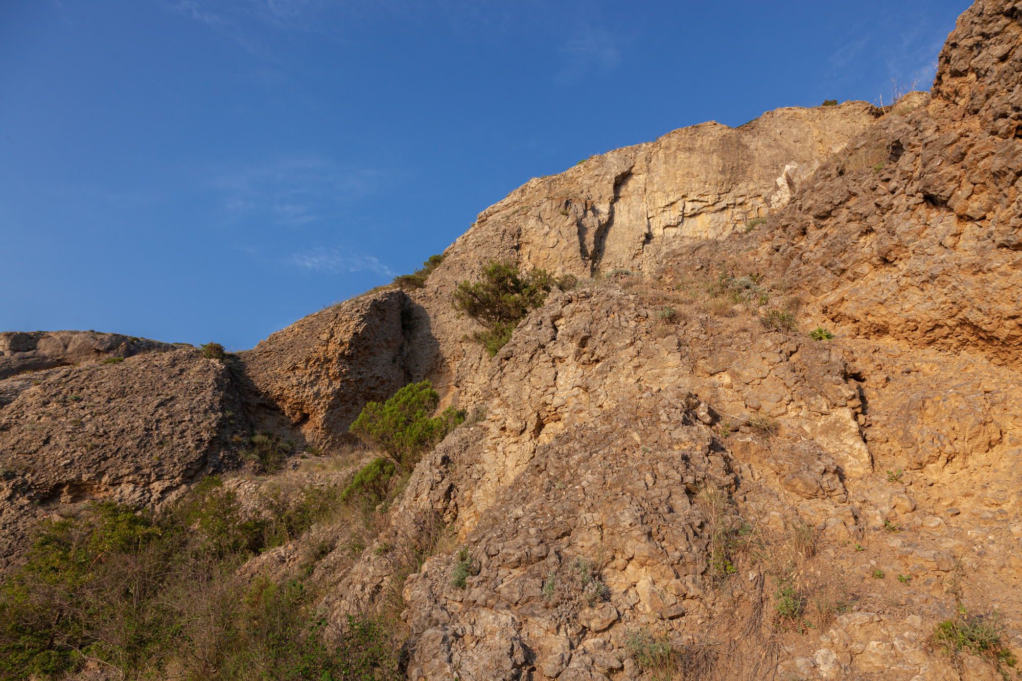 One of the attractions of the city of Sudak is the Alchak-Kaya Mountain. It was once a very, very long time ago, an ancient coral reef. This small mountain or rock is located on the eastern border of the city of Sudak. You can climb the mountain directly from the city beach.