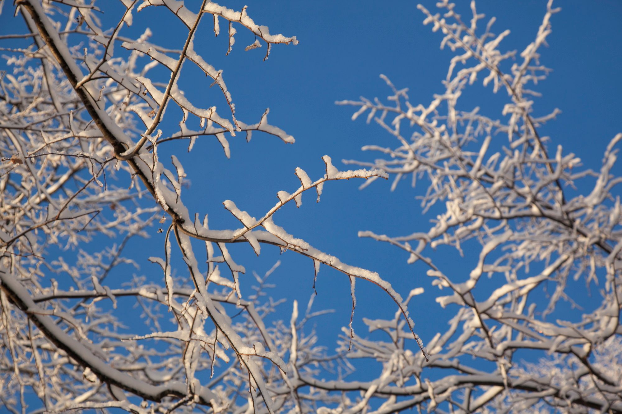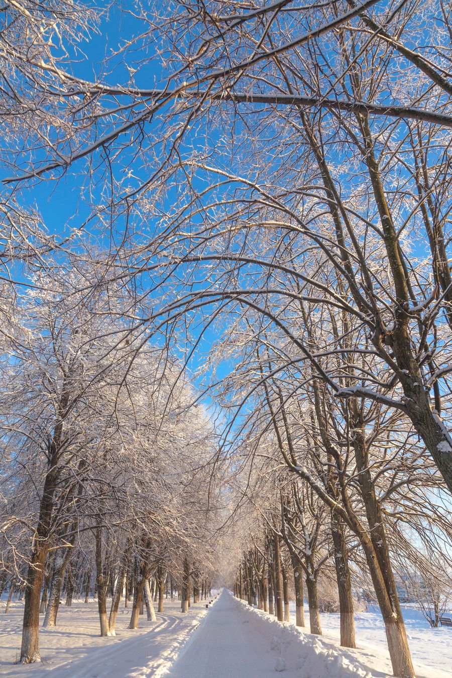 Now everything has changed. Now all flat surfaces are covered with a layer of soft snow. Here and there, paths are trampled through the fresh snow.