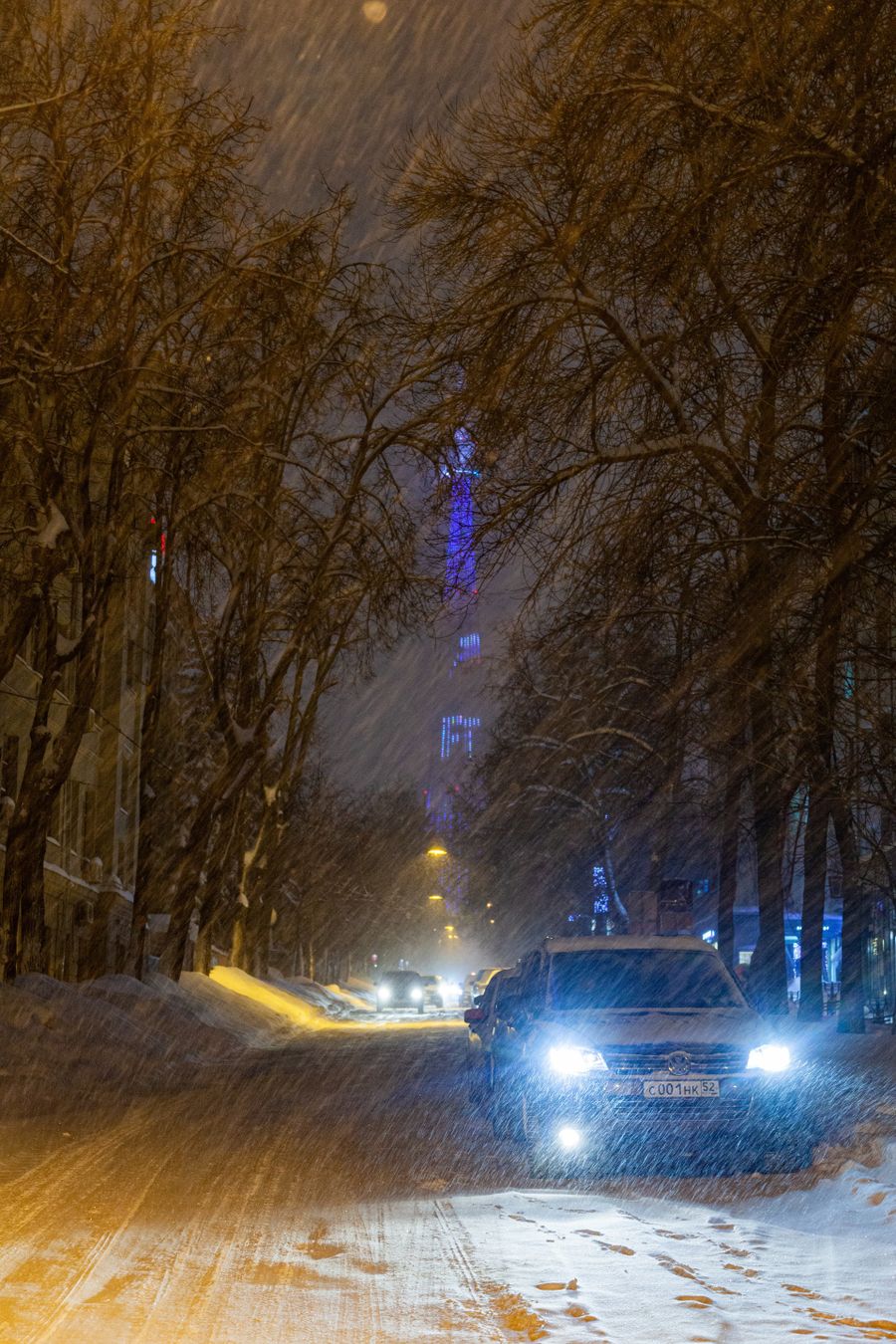 The night walk through the city of Nizhny Novgorod has come to an end. Actually, the walk was not great. Simply, snowfall, cold and city lights.
