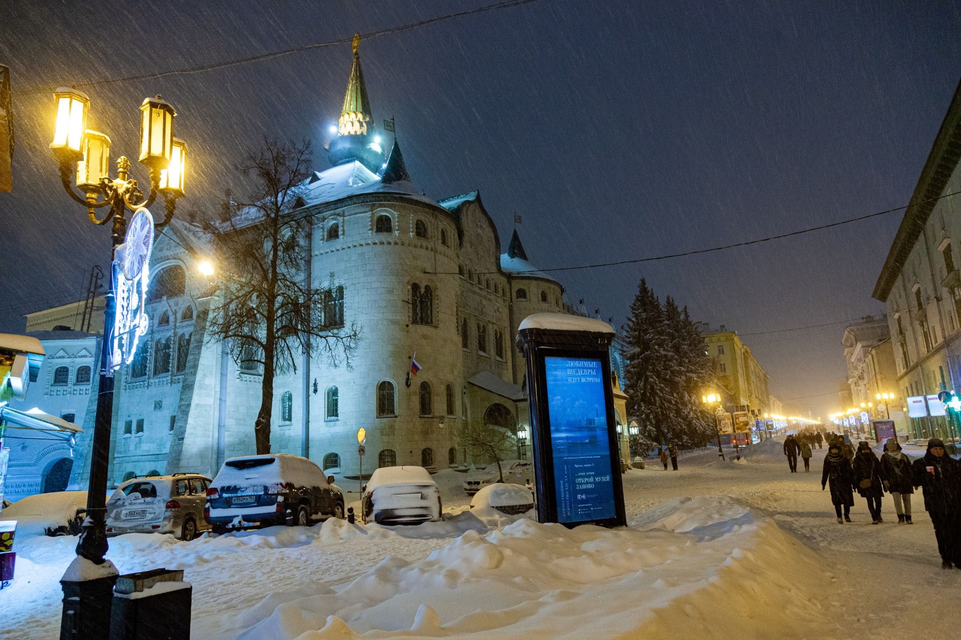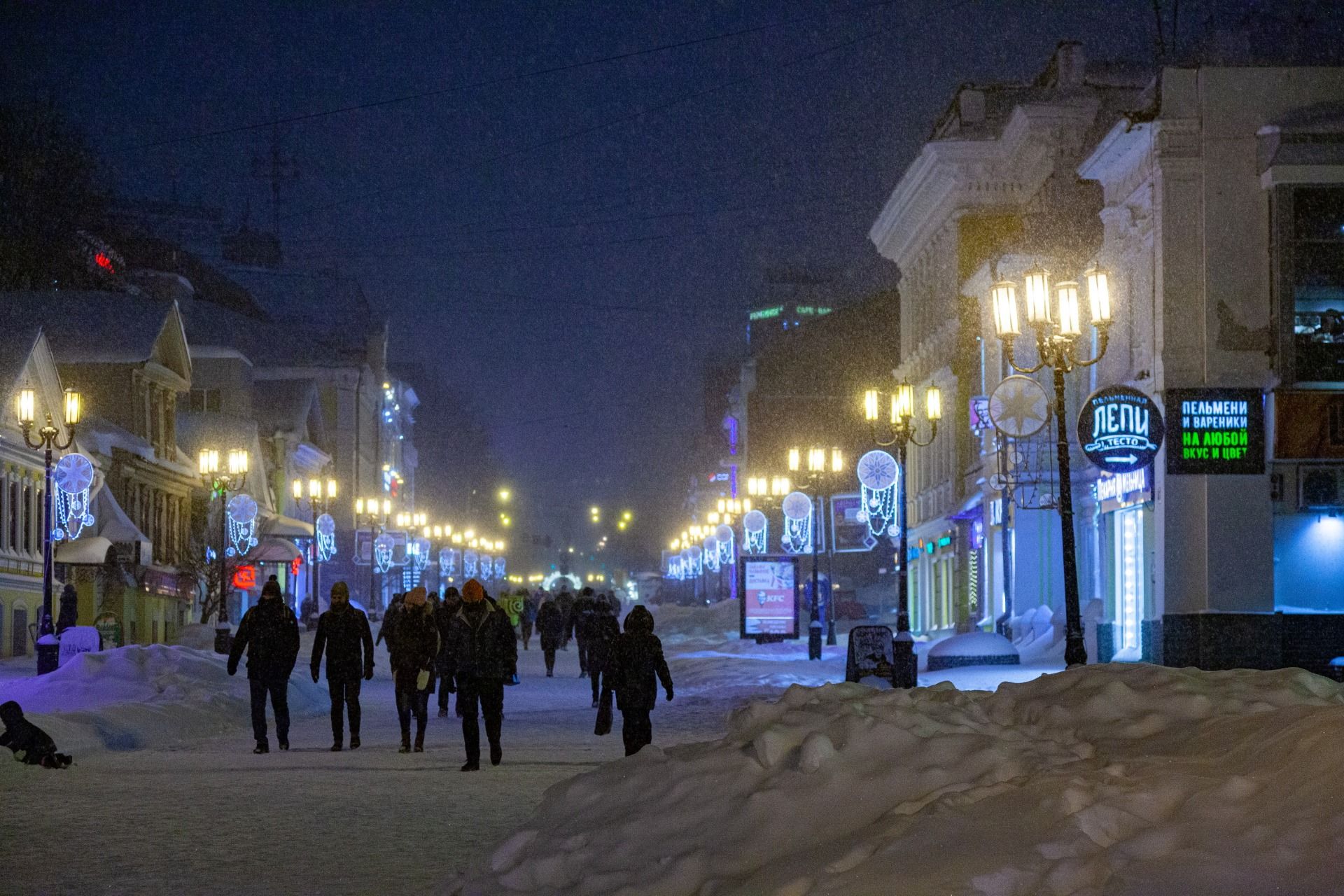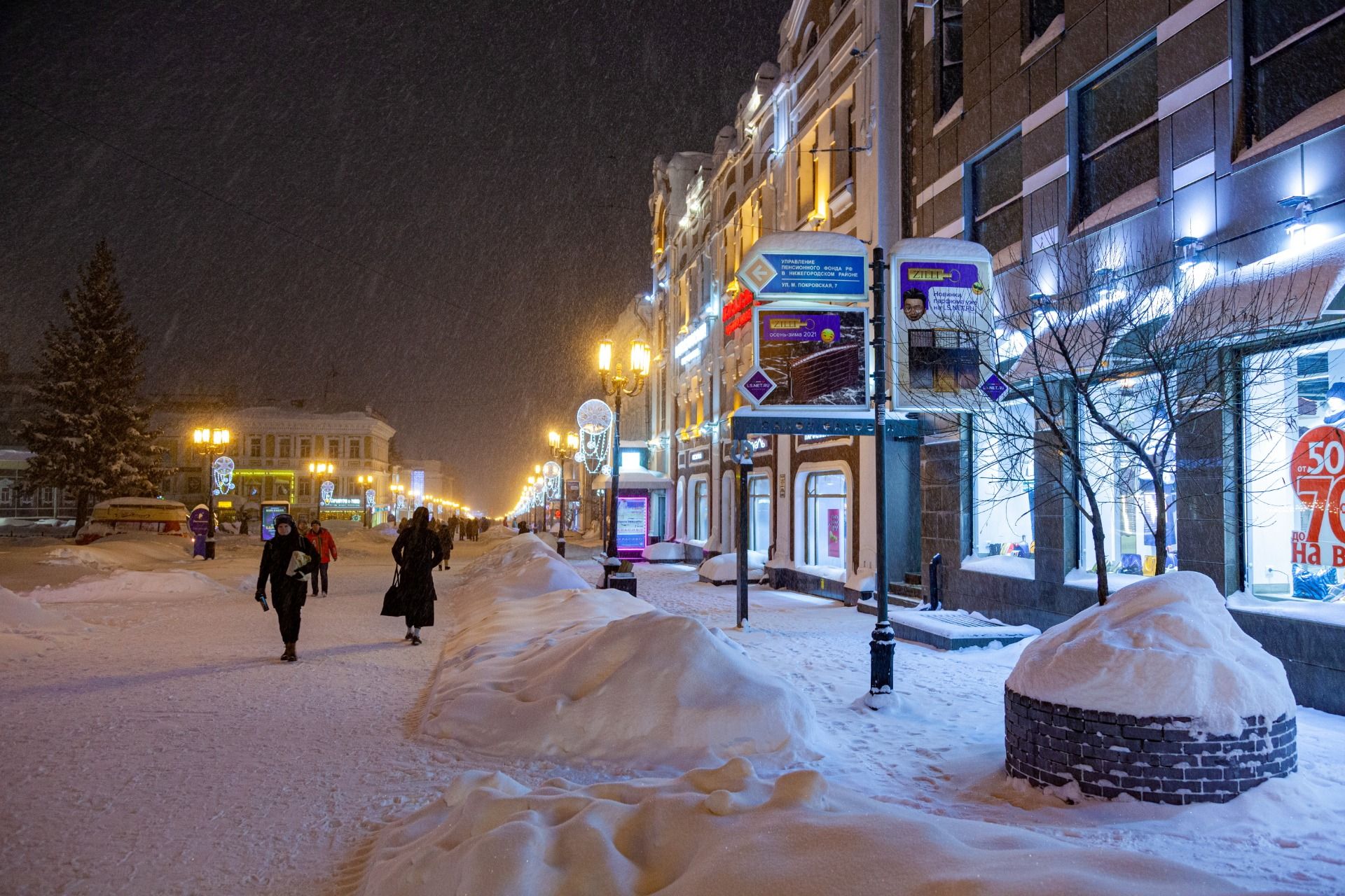 I arrived in Nizhny Novgorod at about 4 pm. In winter, it is already quite dark at this time. We decided to walk through the night Nizhny Novgorod.