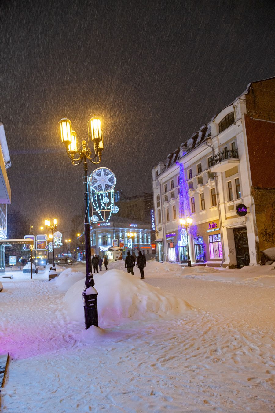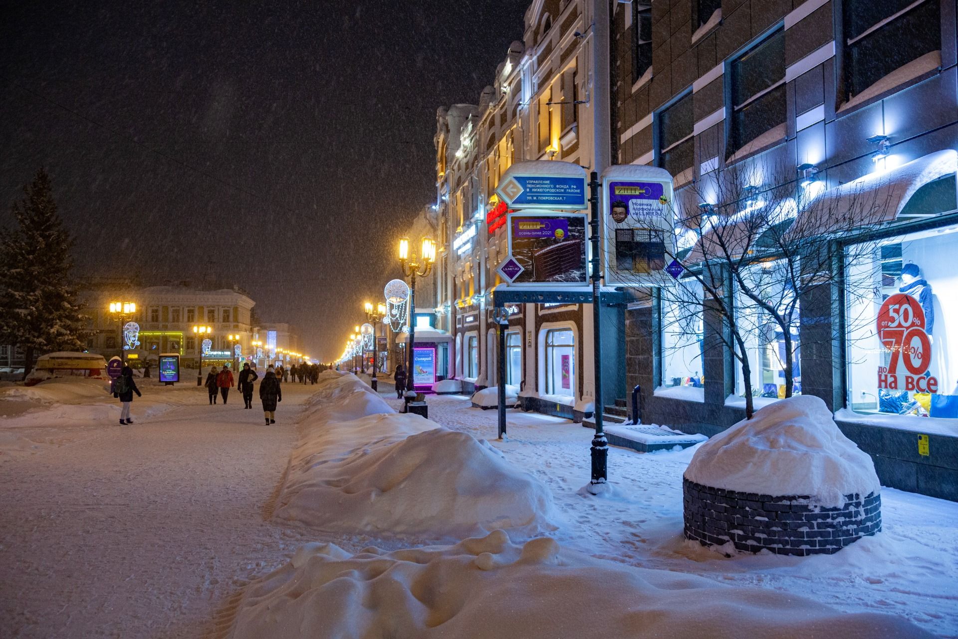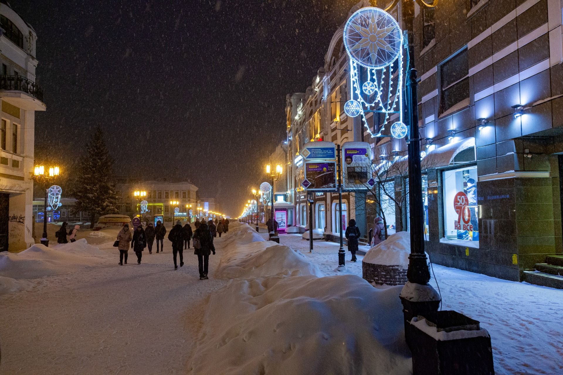 I arrived in Nizhny Novgorod at about 4 pm. In winter, it is already quite dark at this time. We decided to walk through the night Nizhny Novgorod.