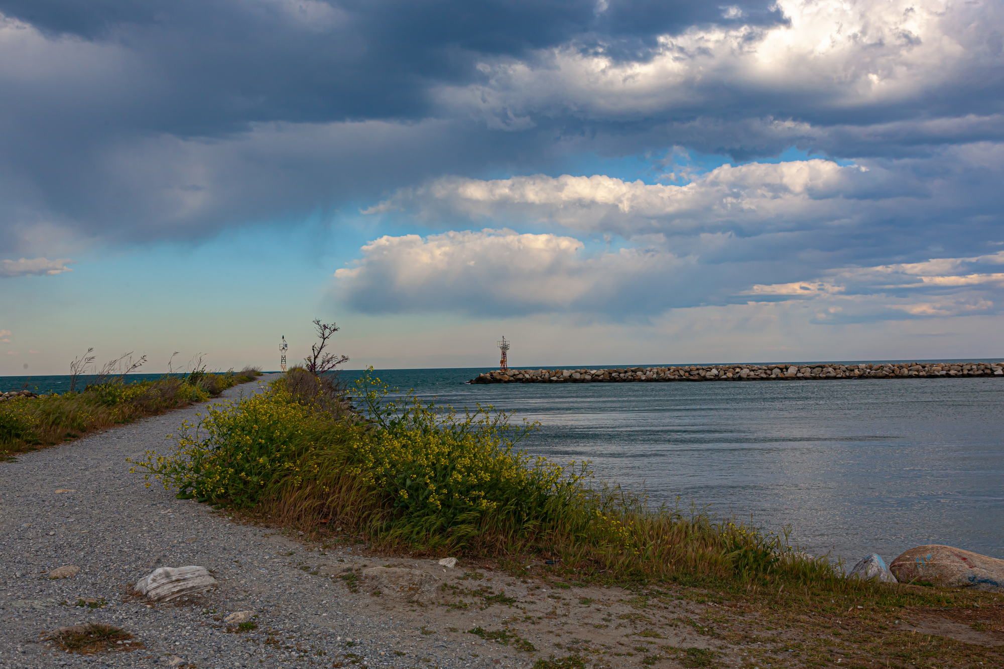 It is interesting that at the moment when I arrived at this port, it was still sun and day. The sky was blue, though overcast. Clouds sometimes covered the sun and it became cloudy.