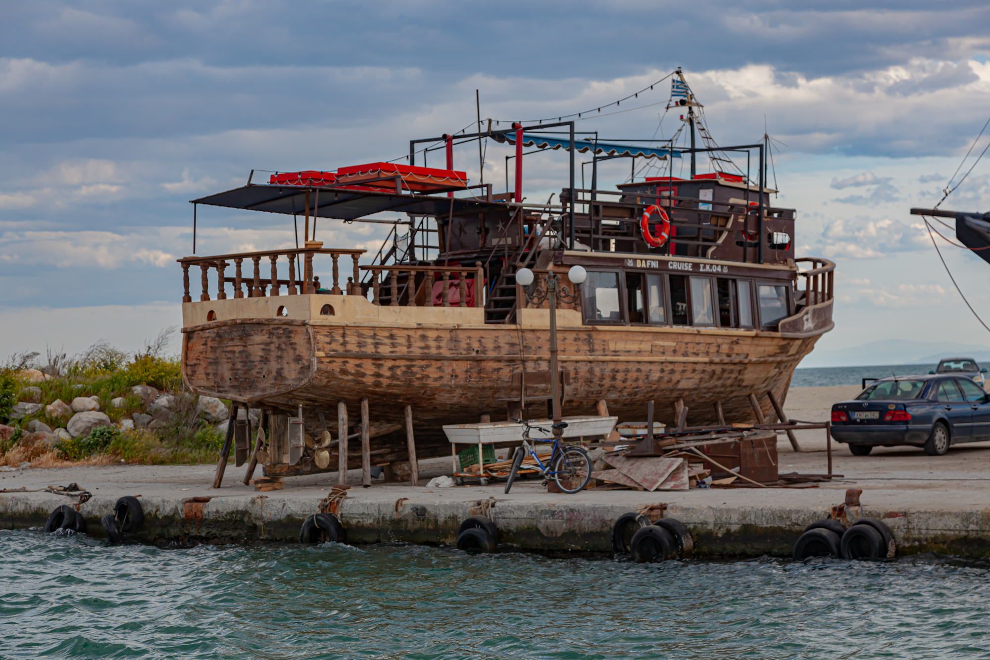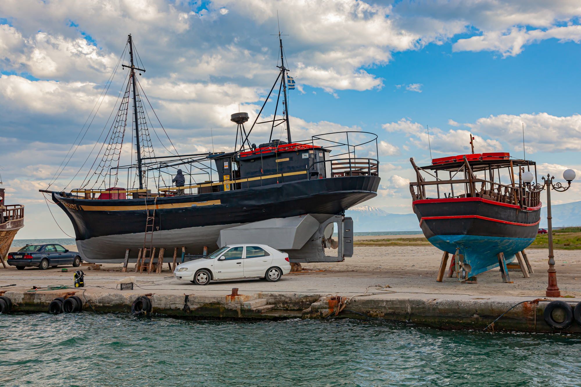 After starting the journey from the city of Thessaloniki, we drove to the coast to admire the sea and touch the water. In addition, the guidebooks stated that a good fur coat could be purchased in this small town. Greece is a well-known country in this business.