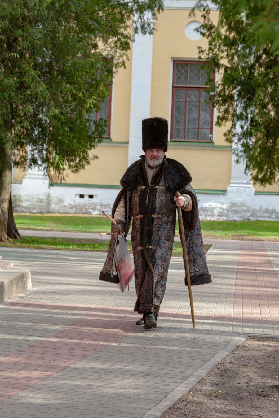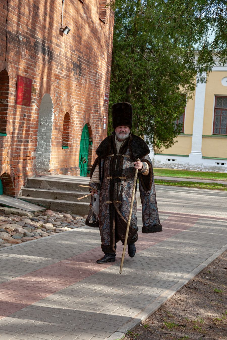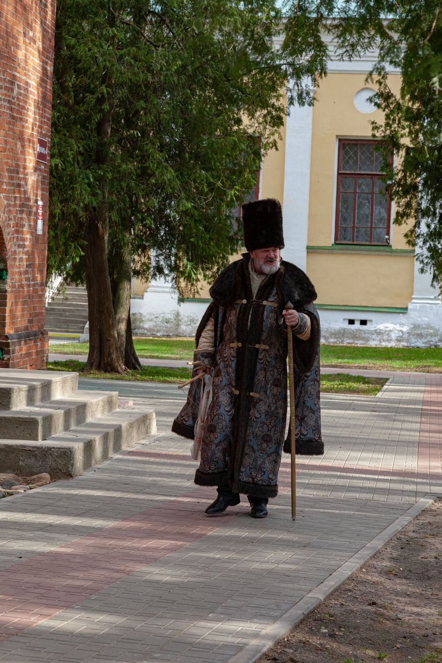 While I was walking along these paths inside the former fortress walls, I saw a man in a boyar robe and a hat with a staff in his hand walking along one of the paths. I started taking pictures of him. He noticed this and we talked with him. I love such meetings and conversations.