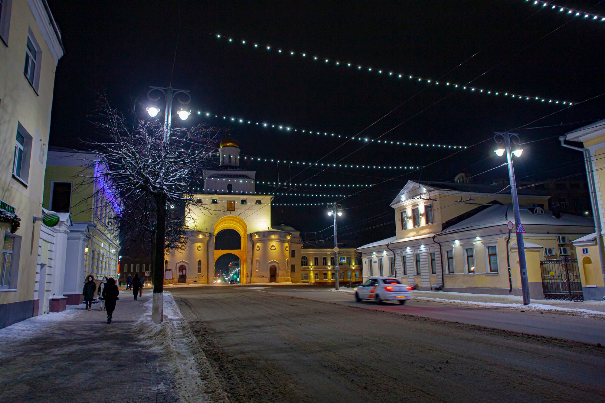 One of the main tourist streets of the city is Moskovskaya Street. There is a significant monument of ancient architecture, the Golden Gate, on it. This is one of the towers of the ancient city, which was built before the Mongol invasion. The city fell in a terrible battle with the Tatar-Mongol troops, but some stone objects have survived. Including this tower. This tower now houses a museum.