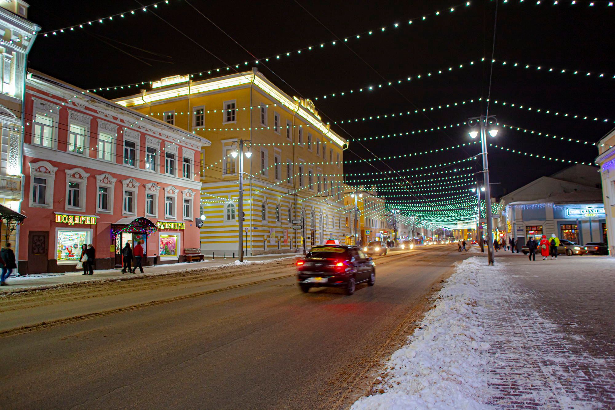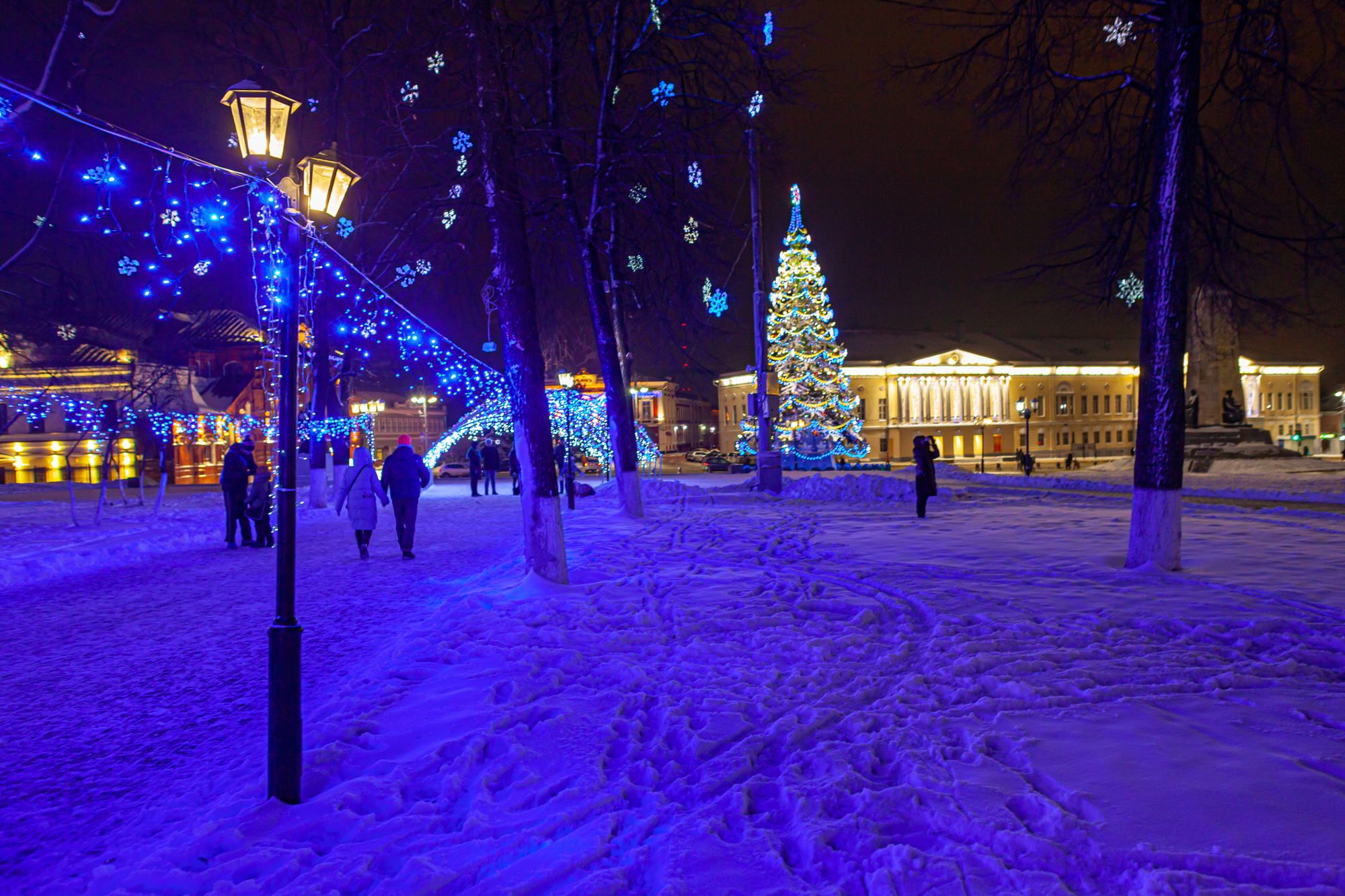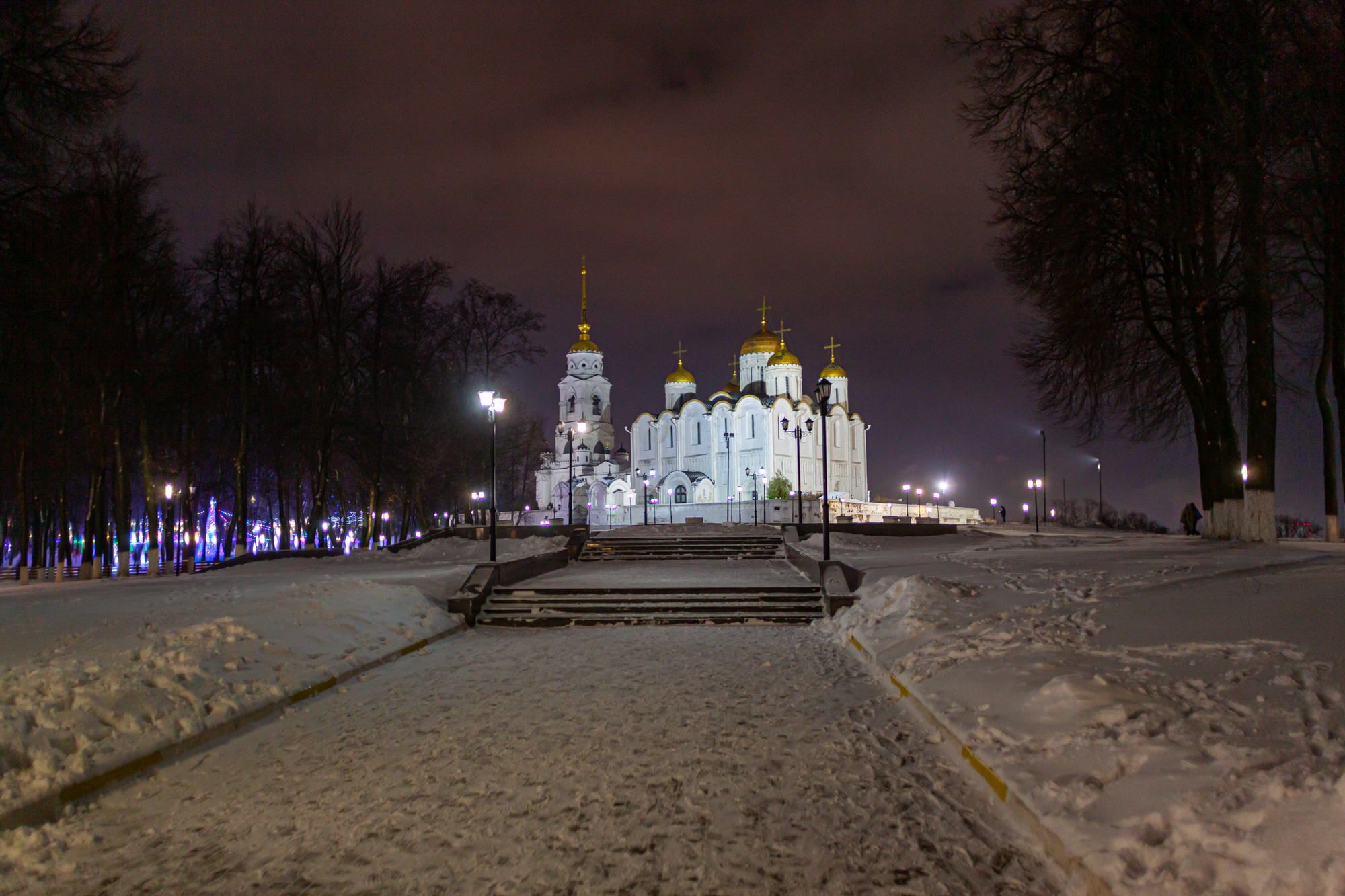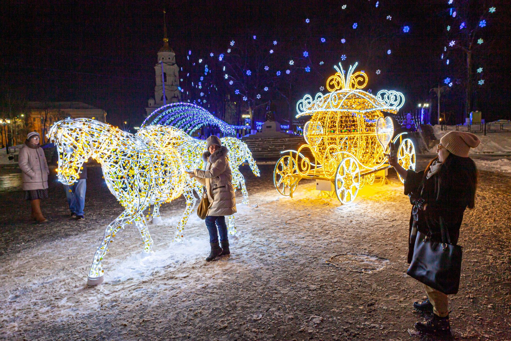 The occasion is the beautiful old city of Vladimir in winter dress. In winter, New Year and Christmas are celebrated in Russia.