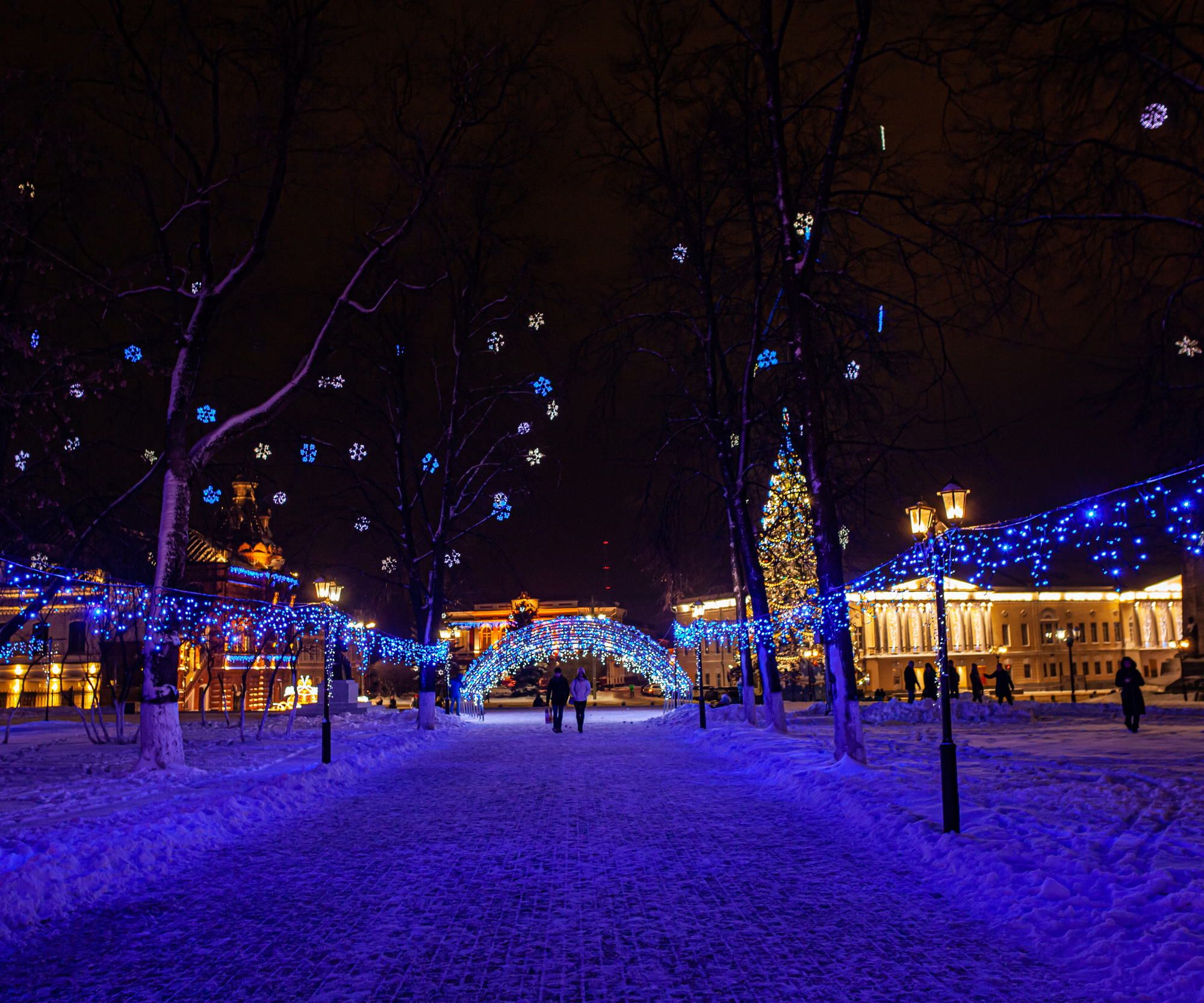 We walked around the city enjoying the novelty of sensations. A skating rink was organized in the park next to the main temple of Vladimir. All paths of the park were covered with ice and satisfied townspeople skated on them. Hot drinks were sold here and there.