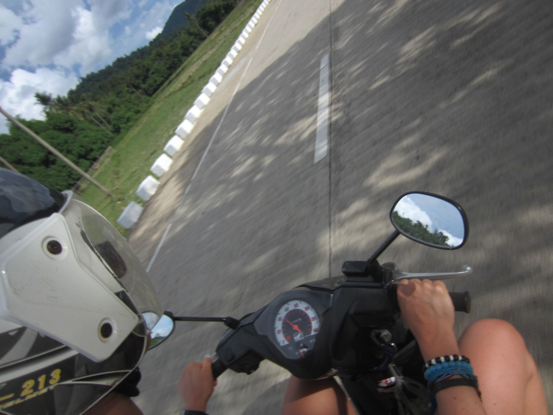 But like all good moments, they pass and hast must take place as we move along to the road way, and get on the moped.