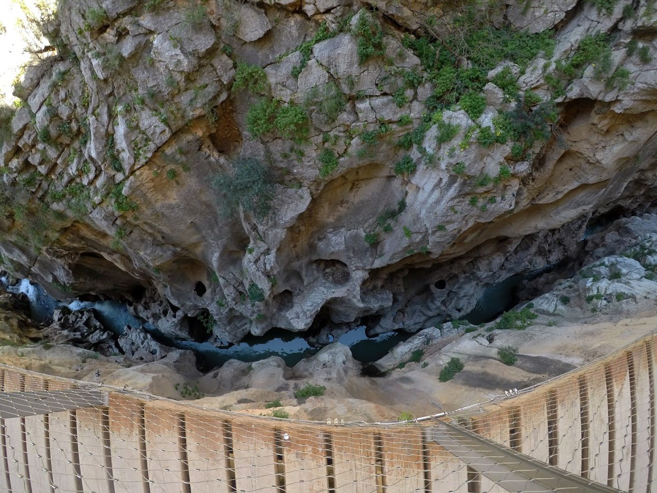 At the end of the path, there is one of the most spectacular points - the passage between two opposite walls of the Desfiladero de los Gaitanes gorge. It is a metal suspension bridge towering high above the canyon - Puente Colgante. Walking through it is quite a challenge for people who are afraid of heights, especially as the wind can blow mercilessly in this place. When we were crossing the bridge, it was feeling like it was swinging from side to side.