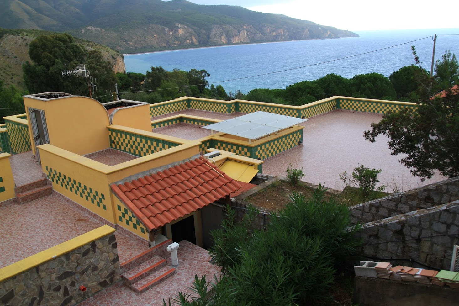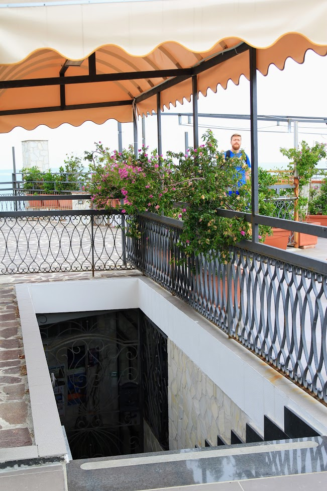 I love the architecture of southern Italy. The houses are built in such a way that you can enter the house from the street level through the roof. On the roof, you can find both a lounge area and a car park. The lower level of the house overlooks the water - there may be a micro beach there, but rather there are rocks and a small landing with an entrance to the water.