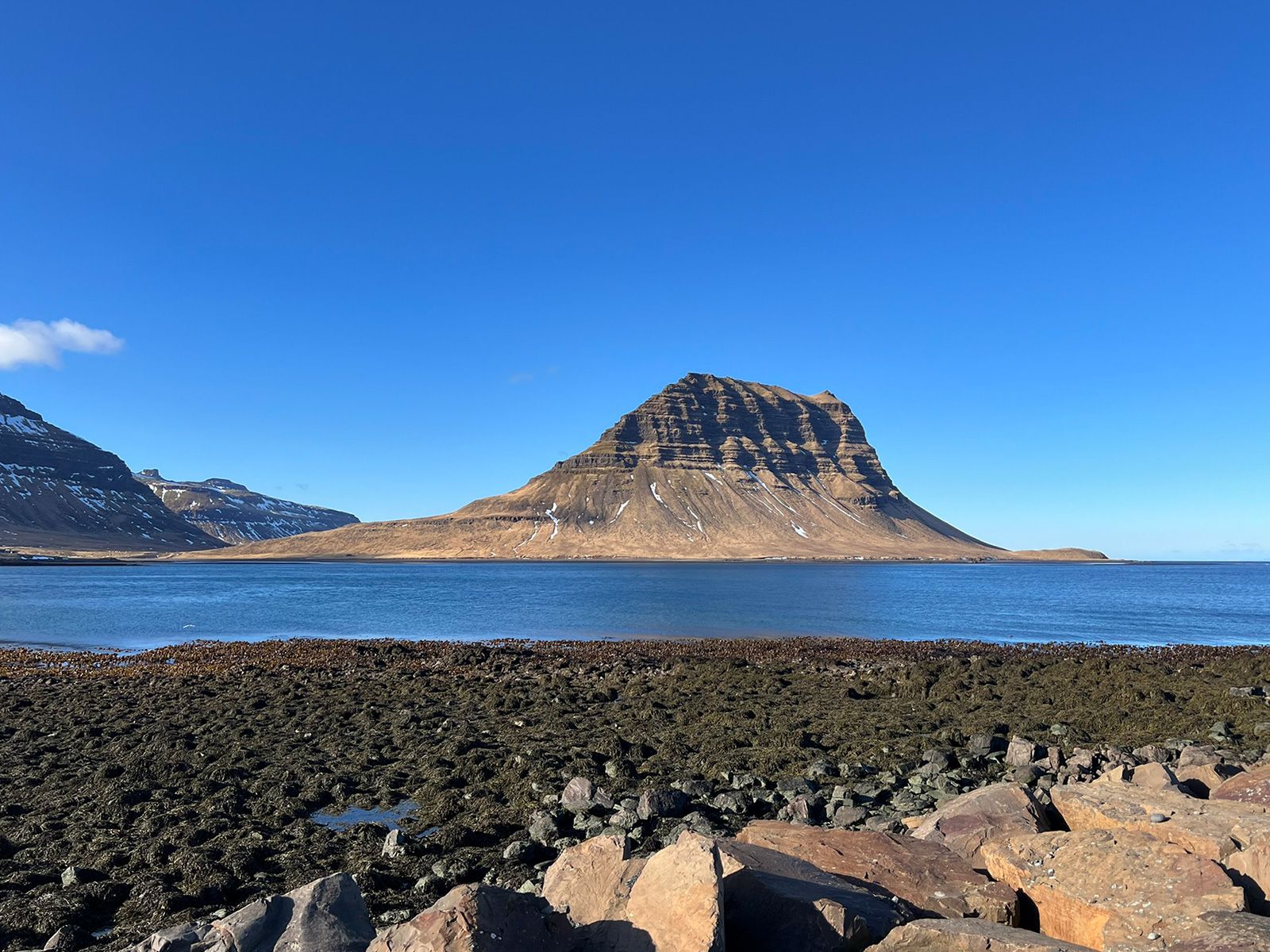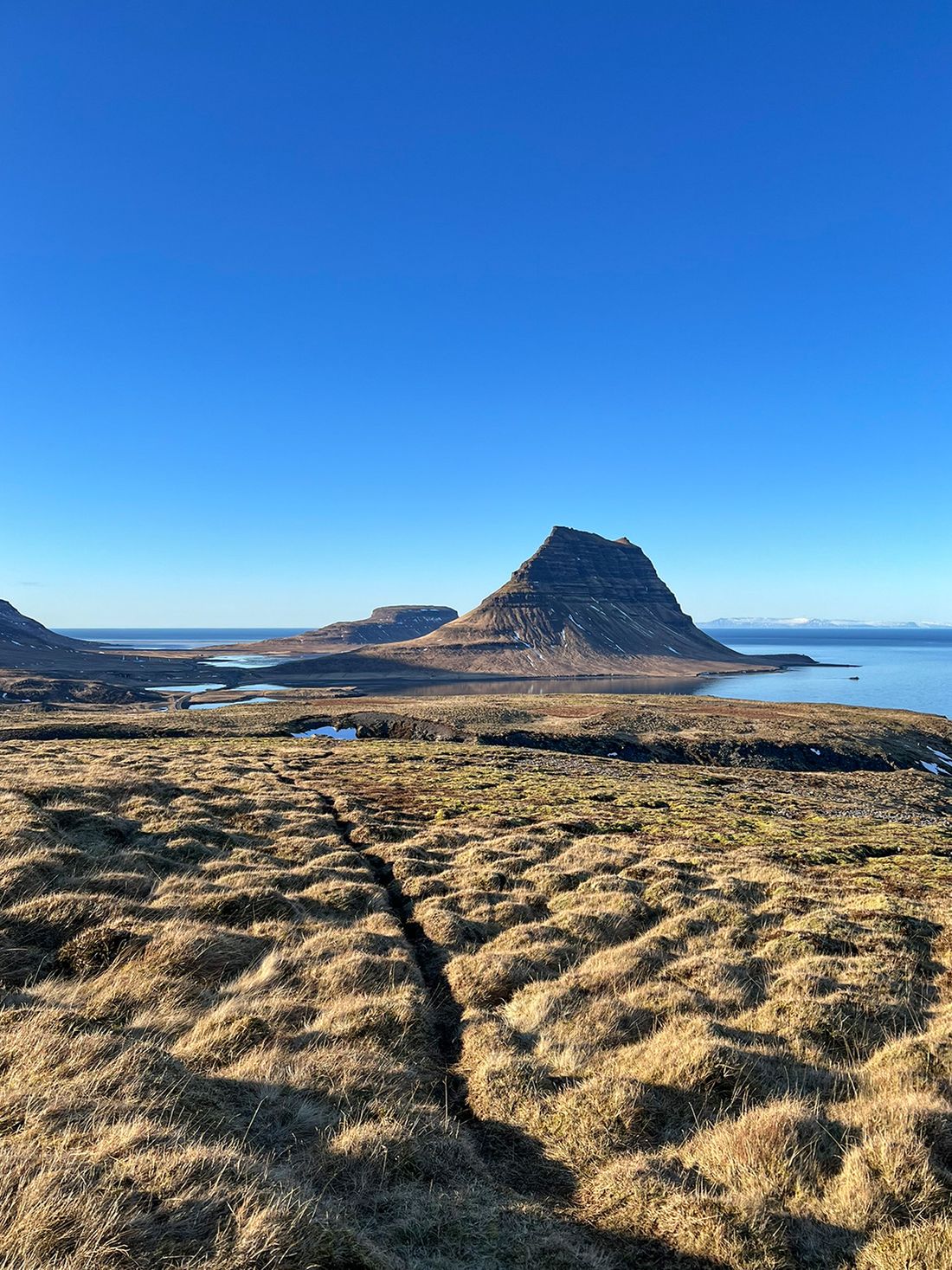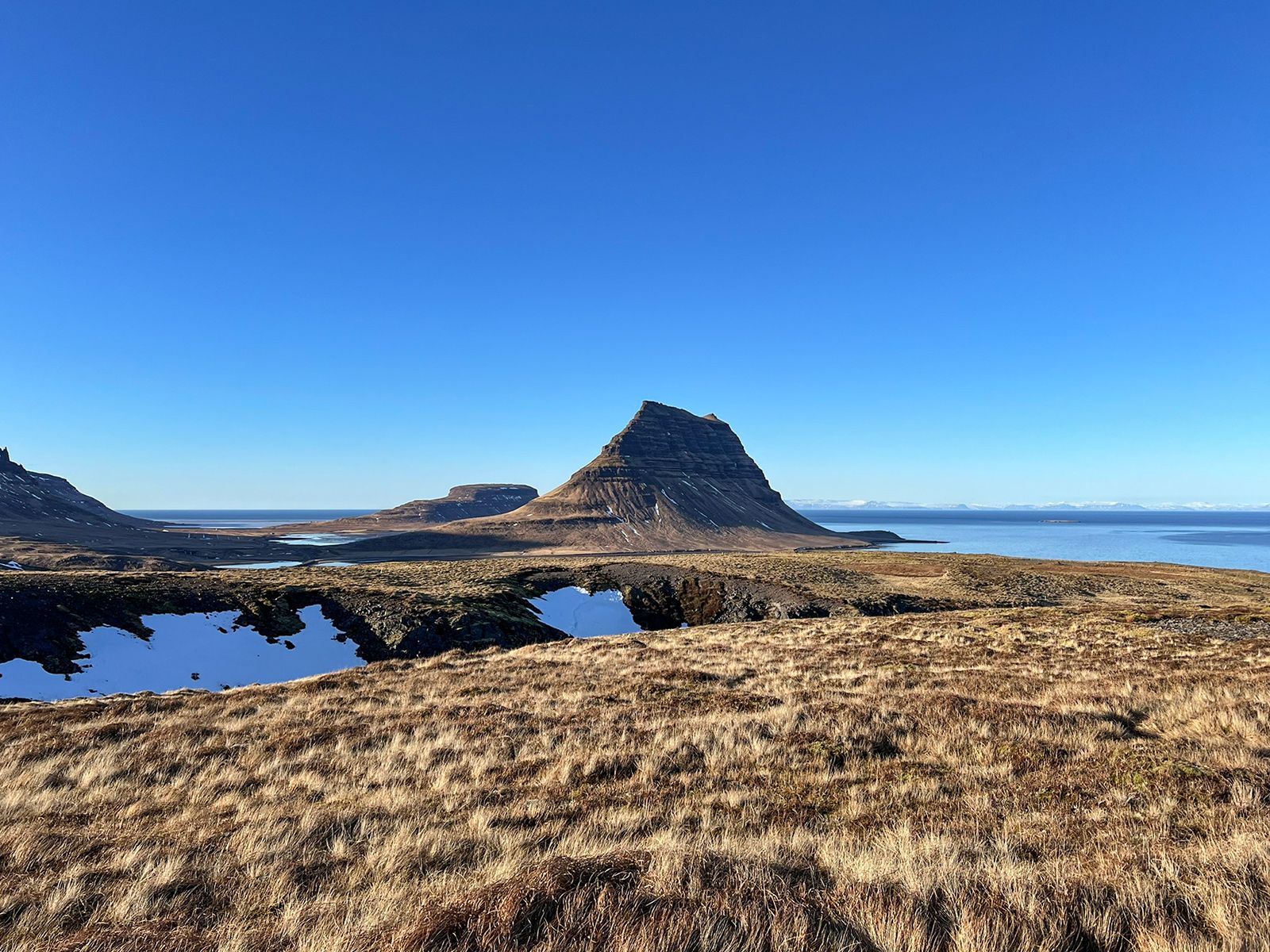 Just a few more steps and Kirkjufell emerges, with smaller Stöð behind it. And far beyond them, the Western Fjords loom on the horizon.