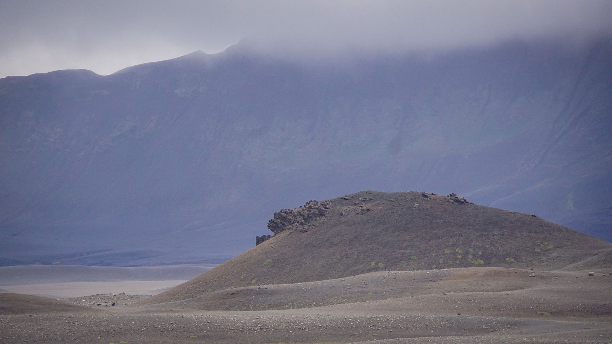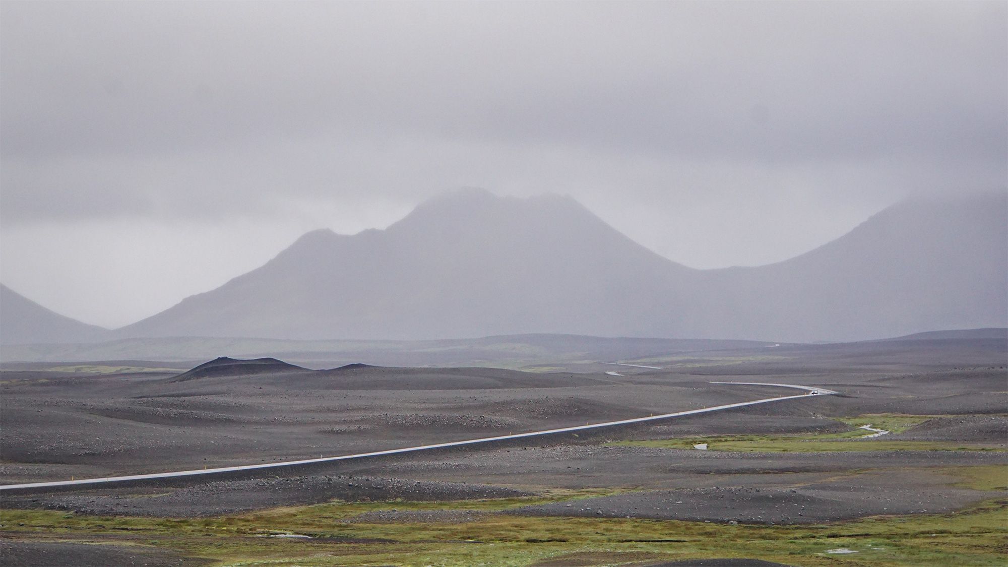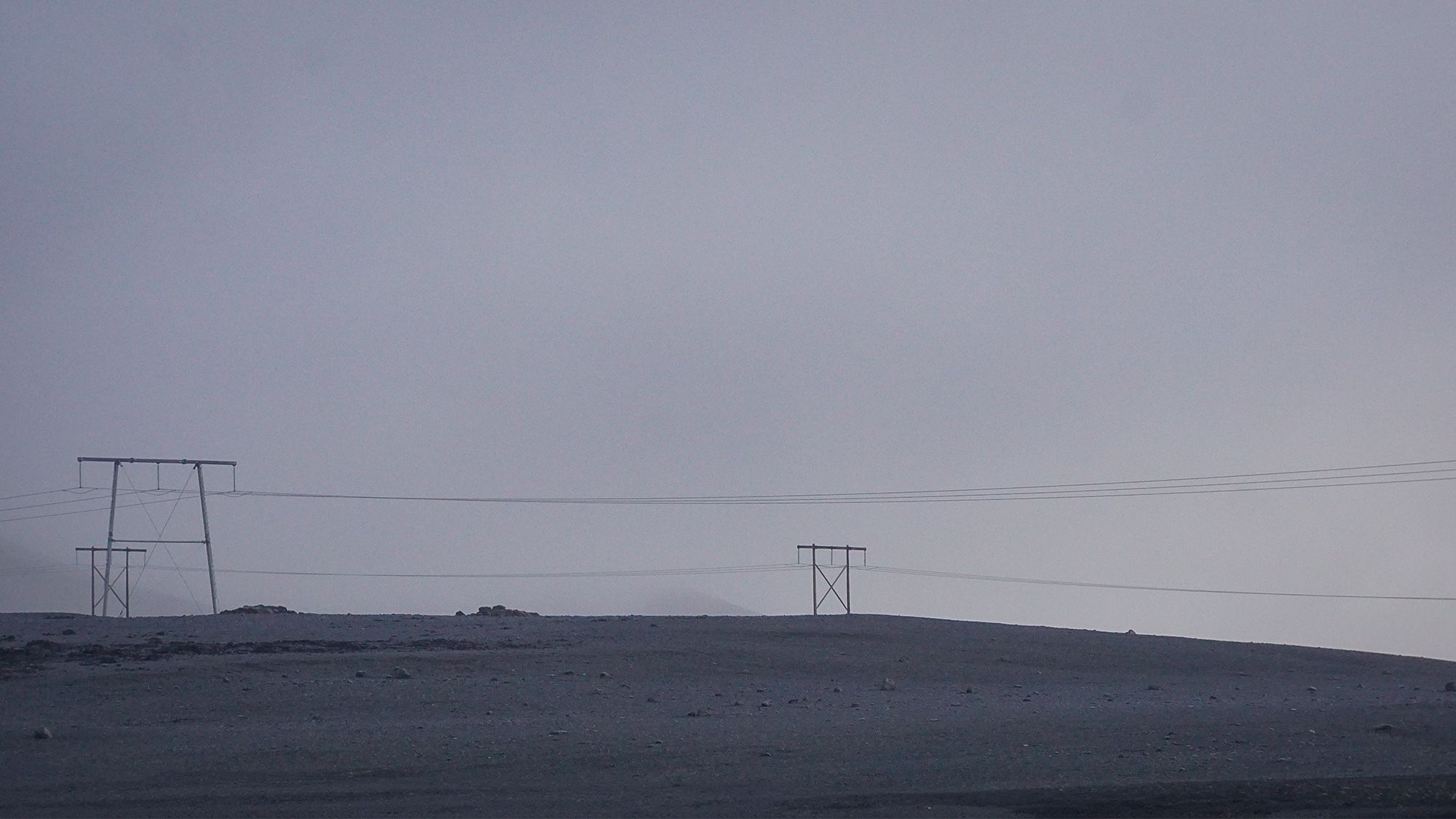 The road went through wide, empty landscapes, with only the good-quality highway (Route 1) breaking the wildness. After many days on rough mountain roads, we welcomed the smooth ride. The gloomy weather matched the scenery perfectly. I love these simple, almost single-color views.