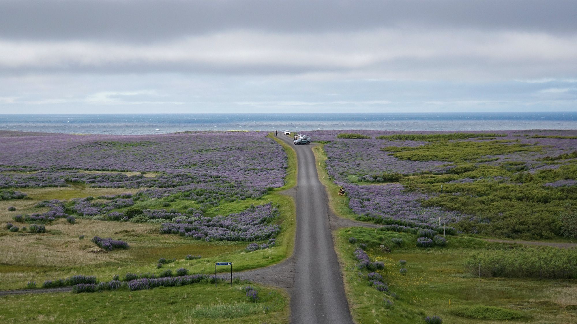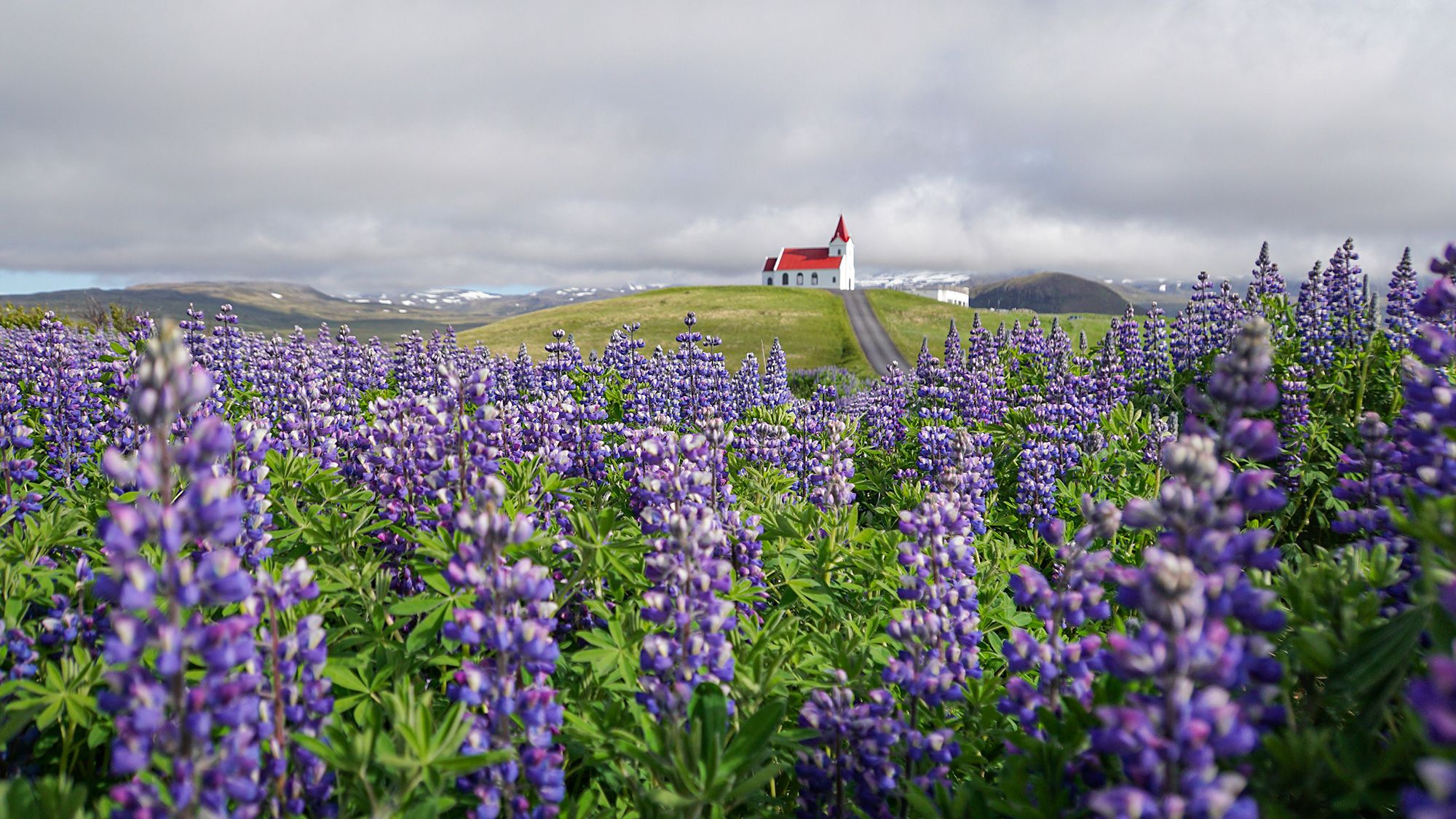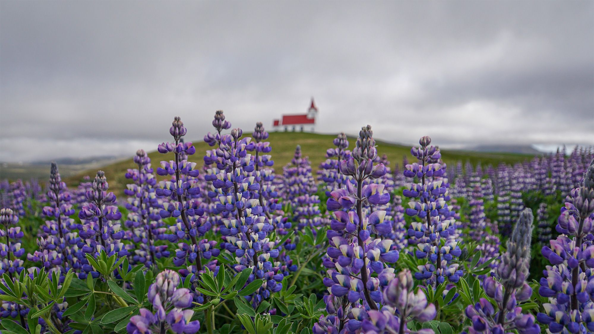 I have many favorite spots around, one of which is a small church on a hill next to the abandoned Ingjaldshóll farm. The church looks incredibly picturesque regardless of the season. I was pleasantly surprised to discover that lupines are growing along the road leading to it!