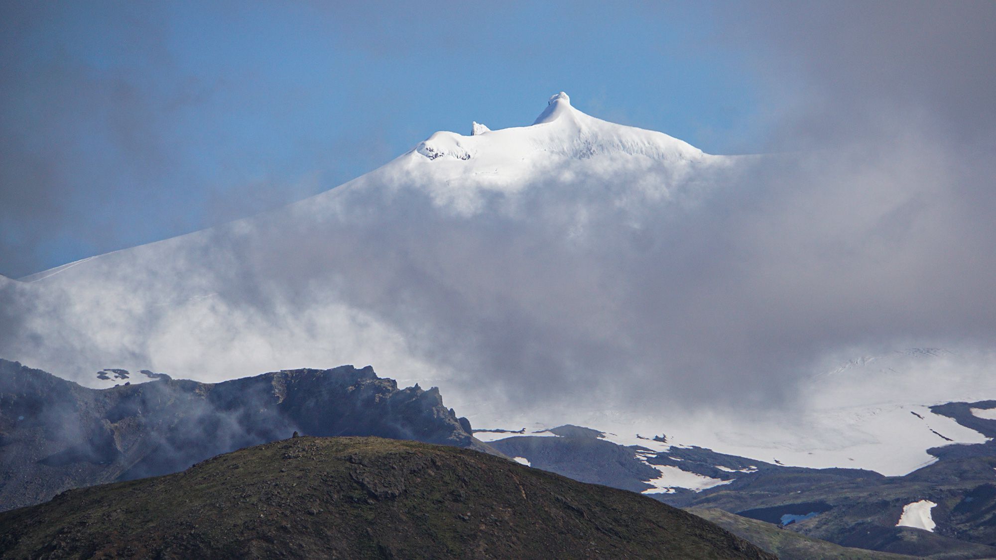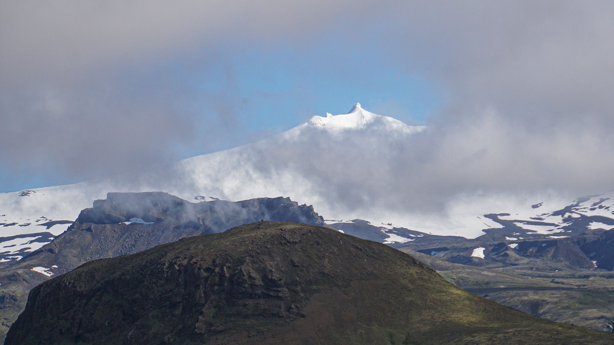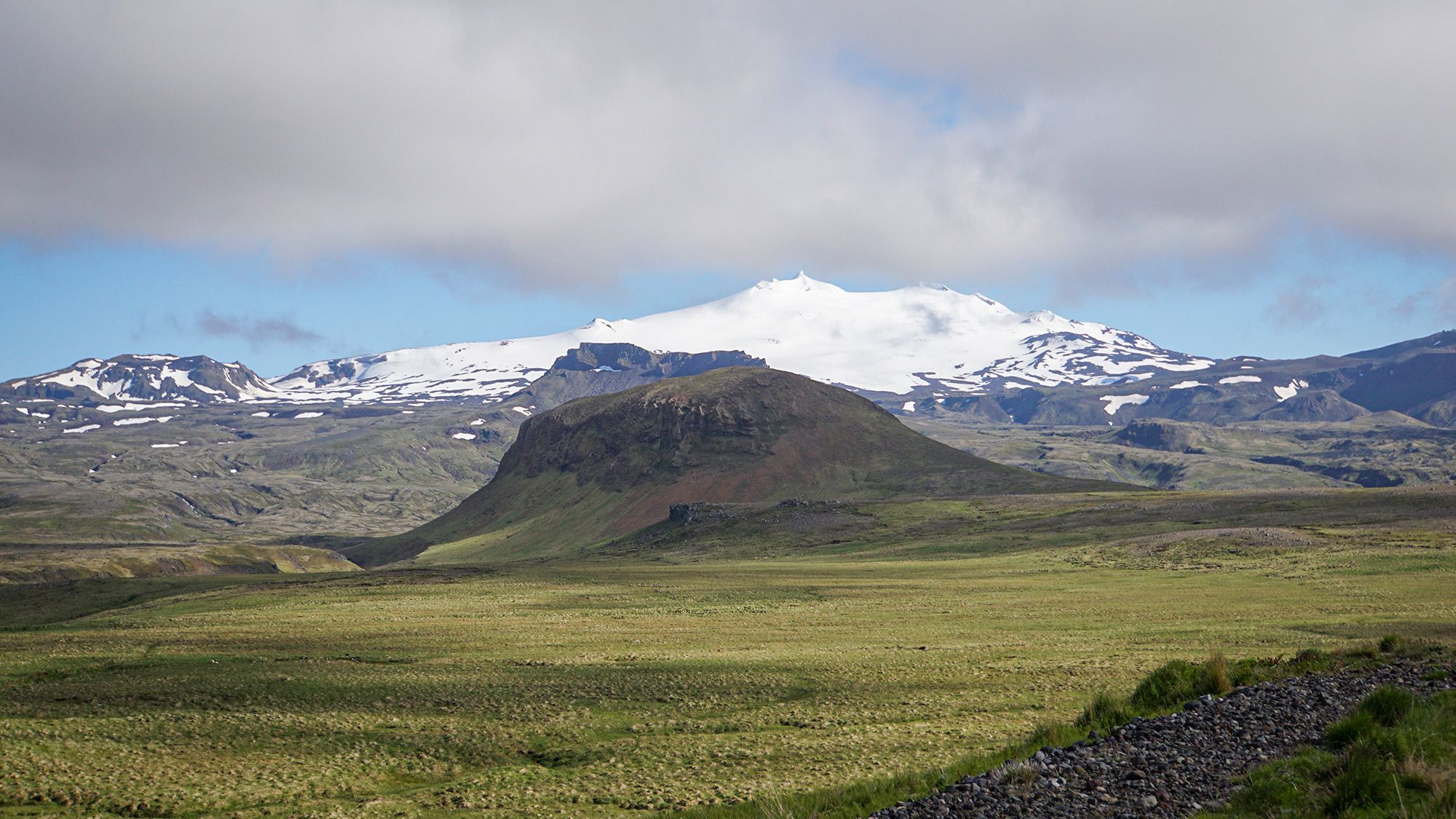 However, I do have some photos from May when I was fortunate to catch beautiful weather. In these pics, you can see the snow-covered Snæfellsjökull volcano on the right.