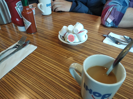 "I have this one with 1590 calories, please." In general, delicious breakfasts. A typical diner. At the exit I heard someone call each other Pumpkin and Honey Bunny ... I like everything in this photo. After such servings, no one was left hungry.