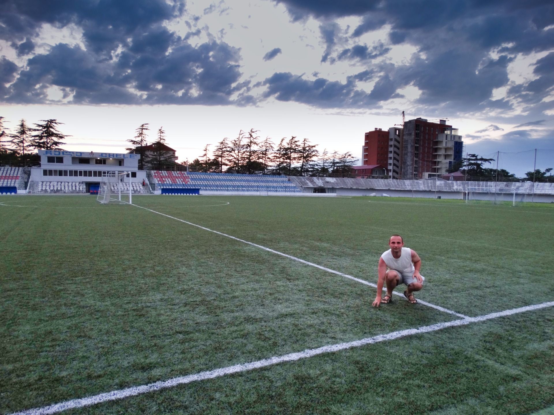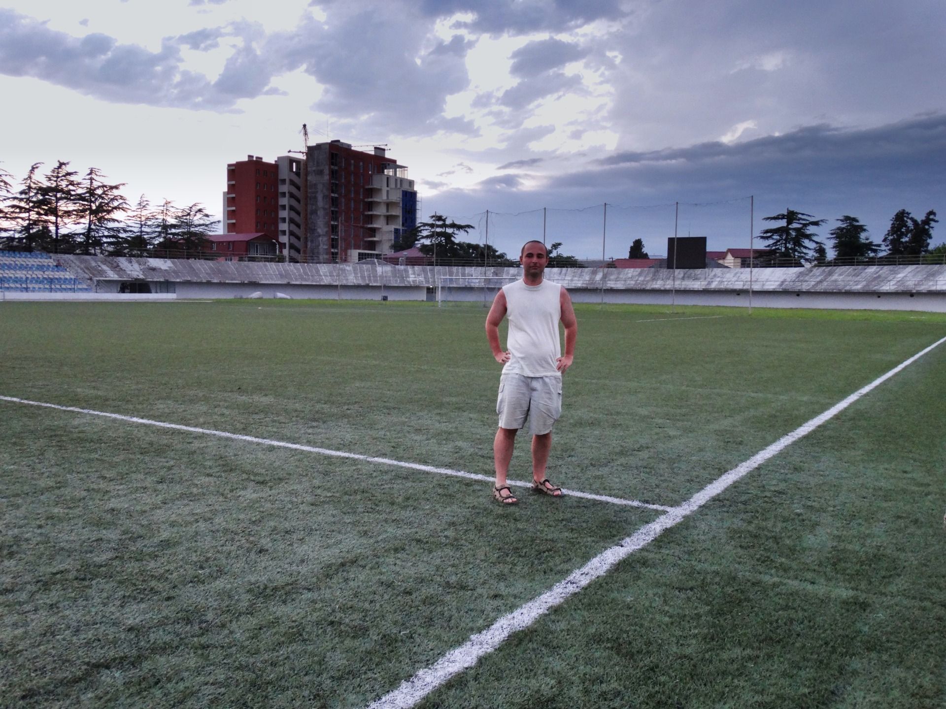 Zostawiliśmy górskie szczyty za sobą i po kilku dniach dotarliśmy w końcu nad morze. Zdecydowaliśmy, że naszą bazą na najbliższe dni będzie Kobuleti - małe miasteczko położone około 20 km na północ od Batumi. Choć większość czasu spędziliśmy, po prostu wylegując się na plaży, opalając się i pływając w morzu, znalazłem dość czasu, by odnaleźć i odwiedzić miejscowy stadion, nazwany „Czele Arena” na cześć słynnego, urodzonego właśnie w Kobuleti, piłkarza - Rewaza Czelebadzego