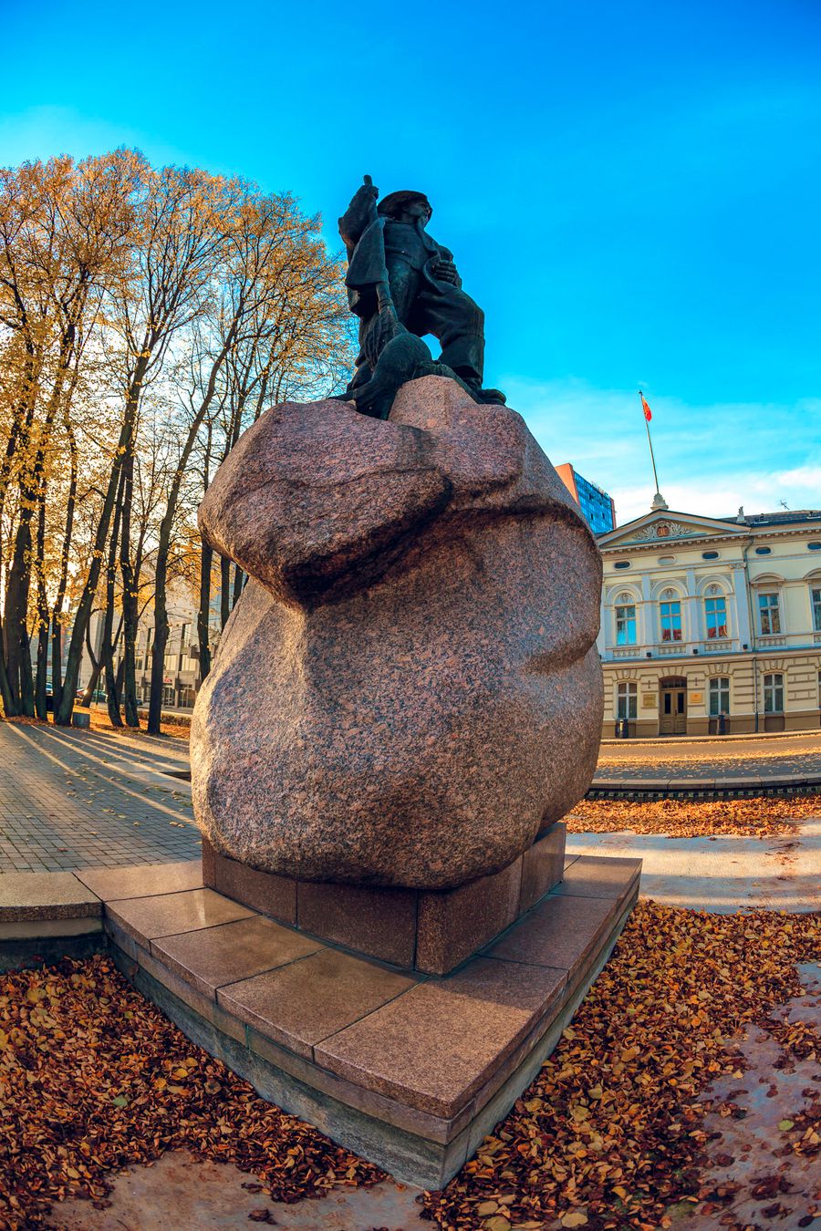 From the opposite side we can see Klaipeda Town Hall, which was temporary residence of the King Frederick William III of Prussia and his wife Queen Louise. The sculpture for the fisherman was built in Soviet times