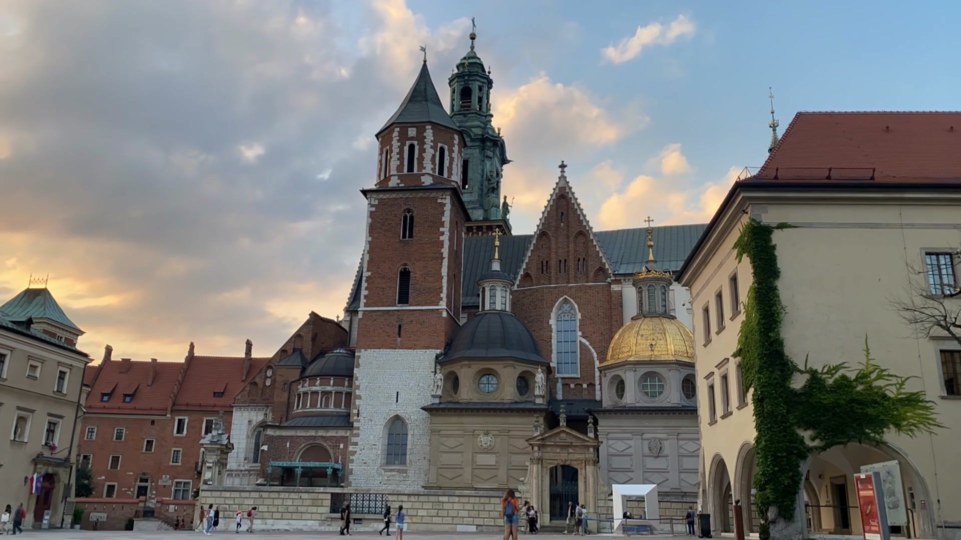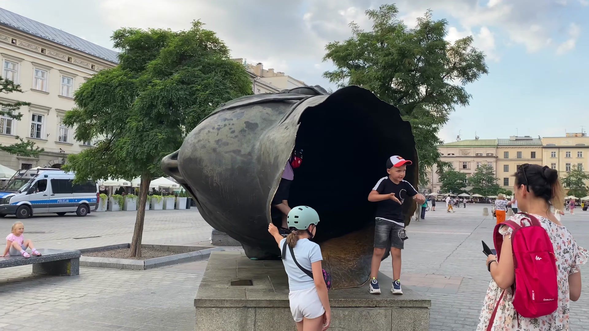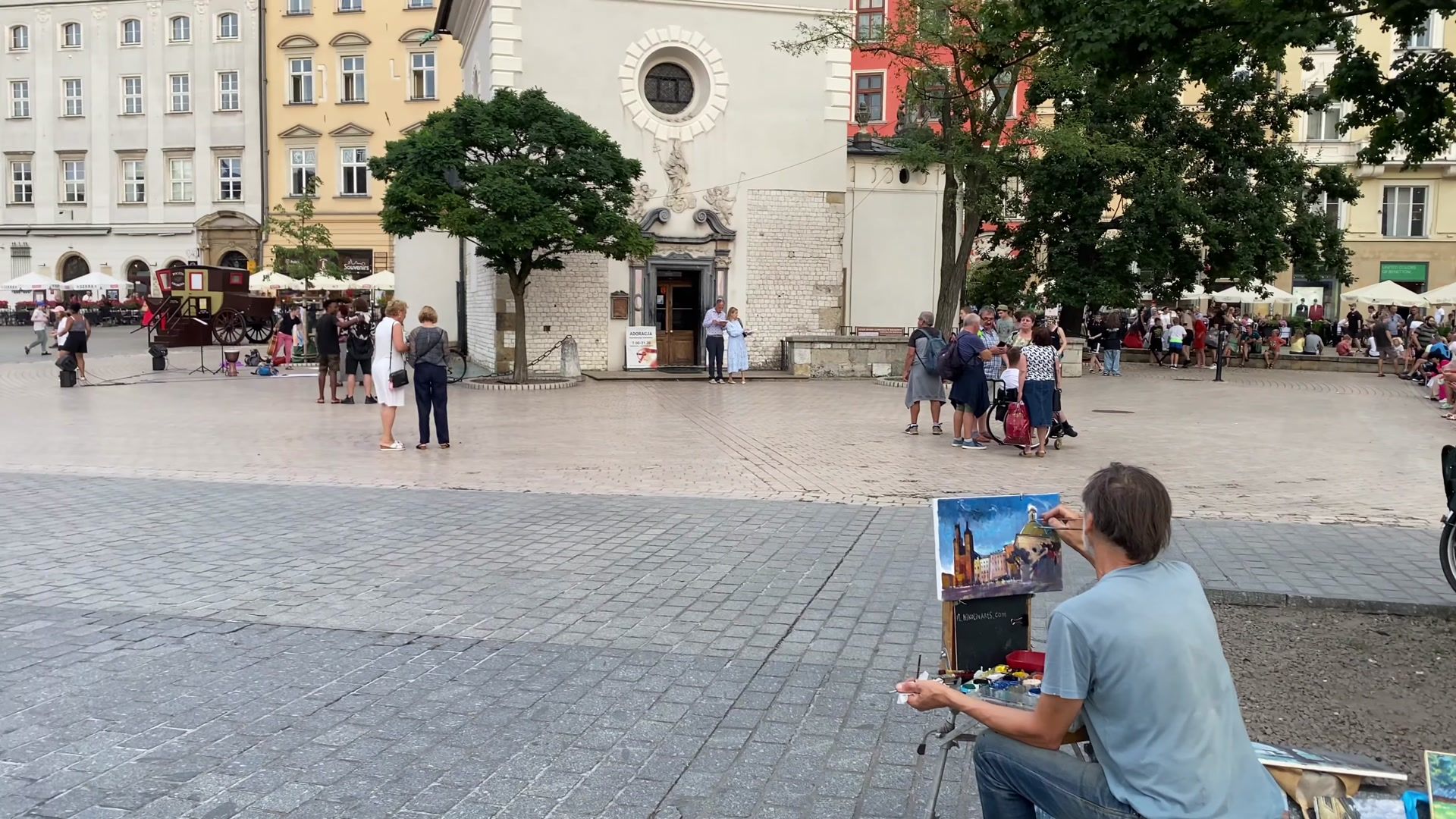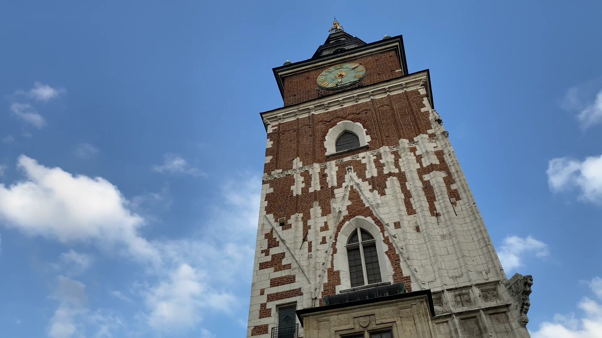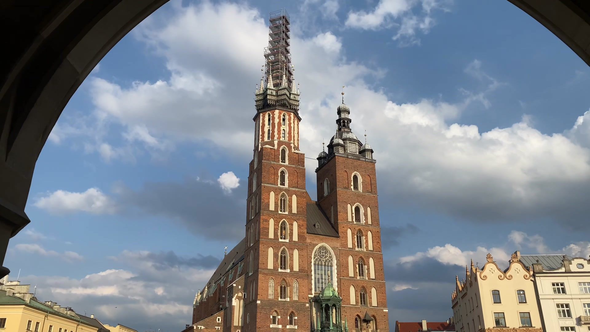 We came upon the dramatic theater after passing through the main gates and turning left. It’s a beautiful and grand structure. Walking a bit further we saw a time corridor displaying the city's history and timeline. Then we approached the heart of Kraków, the largest medieval square a UNESCO World Heritage Site. On the side there was St. Mary's Basilica. There's a legend associated with this cathedral: two brothers started building the two towers, but when one brother became more successful, the jealous brother killed him. Whether true or not the towers different appearances are clearly visible. You can enter the cathedral both for free and with a paid ticket. The free entry is only for a small section. The paid section is for the main part and the altar. The ticket price is 15 zloty and inside is the Mariacki Church. The full name of the Mariacki Church is the Church of the Assumption of the Blessed Virgin Mary and it’s a pride not only of Kraków but of all Poland. It was built on the foundations of a Roman temple in the 13th century. The church has been continuously renovated and expanded over the years and even today, restoration work continues. Inside we were captivated by the blue velvet dome, stained glass windows, sculptures and an organ that hosts classical music concerts. However, the church’s greatest treasure is one of the largest wooden altarpieces in the world dating back to the late 15th century. This masterpiece took 12 years to complete. Every hour a trumpeter plays a melody from the church tower, but there’s a half-finished melody. This incomplete melody is heard only in Kraków, but at noon all of Poland listens to it. This tradition originated when the trumpeter was warning the city, but an arrow struck his throat, leaving the melody unfinished. The attack was repelled, but this incomplete melody became a symbol of time and safety for the city.