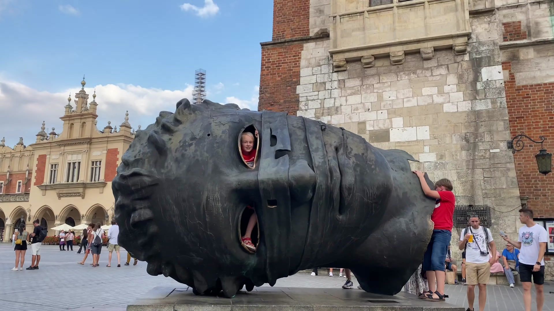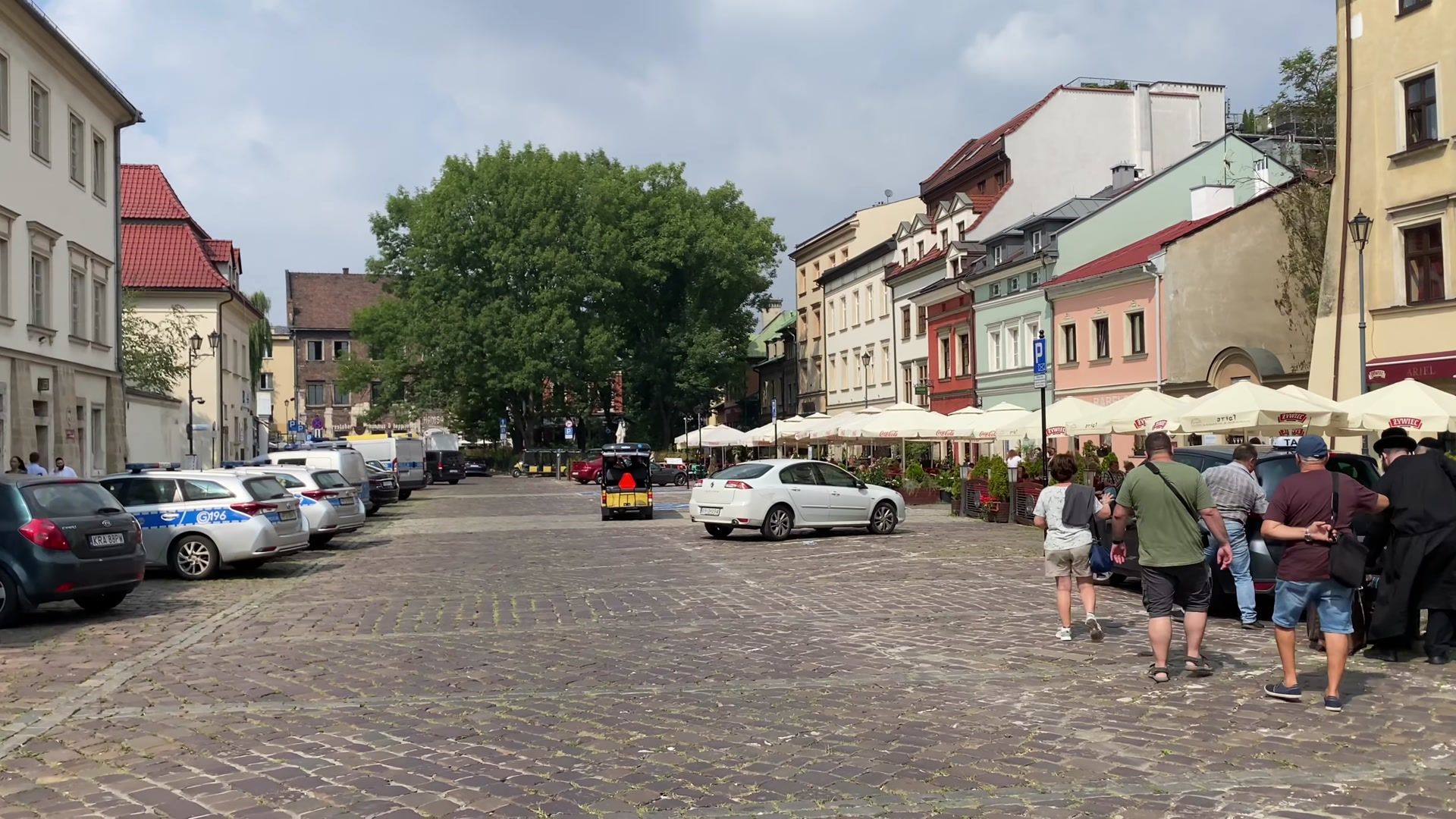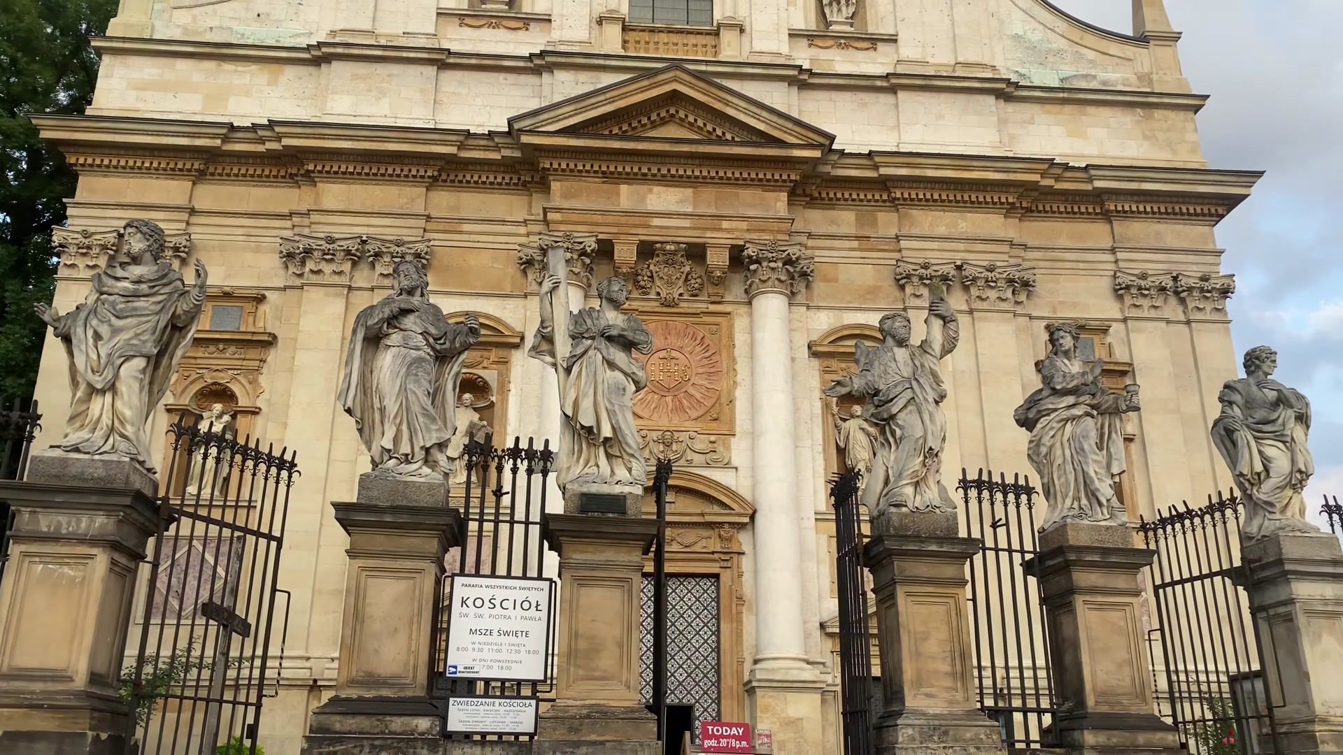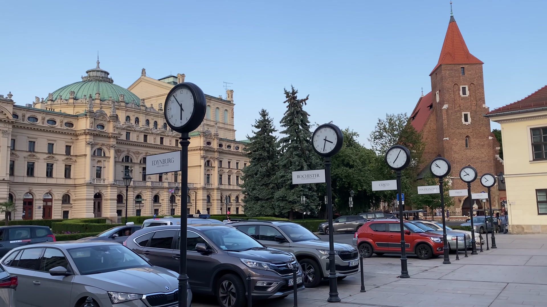 We came upon the dramatic theater after passing through the main gates and turning left. It’s a beautiful and grand structure. Walking a bit further we saw a time corridor displaying the city's history and timeline. Then we approached the heart of Kraków, the largest medieval square a UNESCO World Heritage Site. On the side there was St. Mary's Basilica. There's a legend associated with this cathedral: two brothers started building the two towers, but when one brother became more successful, the jealous brother killed him. Whether true or not the towers different appearances are clearly visible. You can enter the cathedral both for free and with a paid ticket. The free entry is only for a small section. The paid section is for the main part and the altar. The ticket price is 15 zloty and inside is the Mariacki Church. The full name of the Mariacki Church is the Church of the Assumption of the Blessed Virgin Mary and it’s a pride not only of Kraków but of all Poland. It was built on the foundations of a Roman temple in the 13th century. The church has been continuously renovated and expanded over the years and even today, restoration work continues. Inside we were captivated by the blue velvet dome, stained glass windows, sculptures and an organ that hosts classical music concerts. However, the church’s greatest treasure is one of the largest wooden altarpieces in the world dating back to the late 15th century. This masterpiece took 12 years to complete. Every hour a trumpeter plays a melody from the church tower, but there’s a half-finished melody. This incomplete melody is heard only in Kraków, but at noon all of Poland listens to it. This tradition originated when the trumpeter was warning the city, but an arrow struck his throat, leaving the melody unfinished. The attack was repelled, but this incomplete melody became a symbol of time and safety for the city.