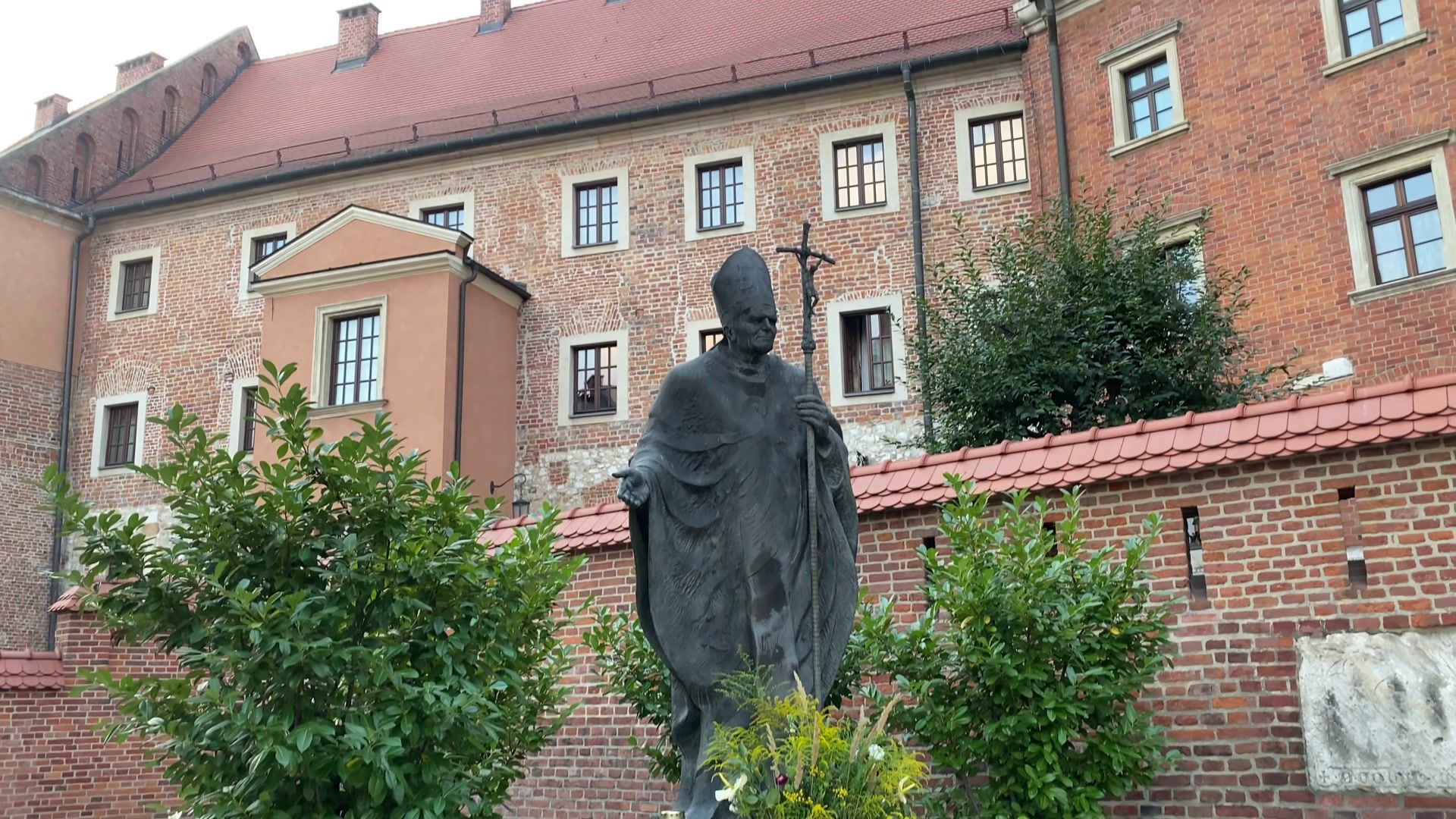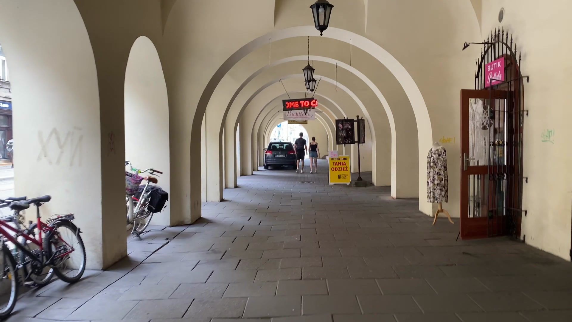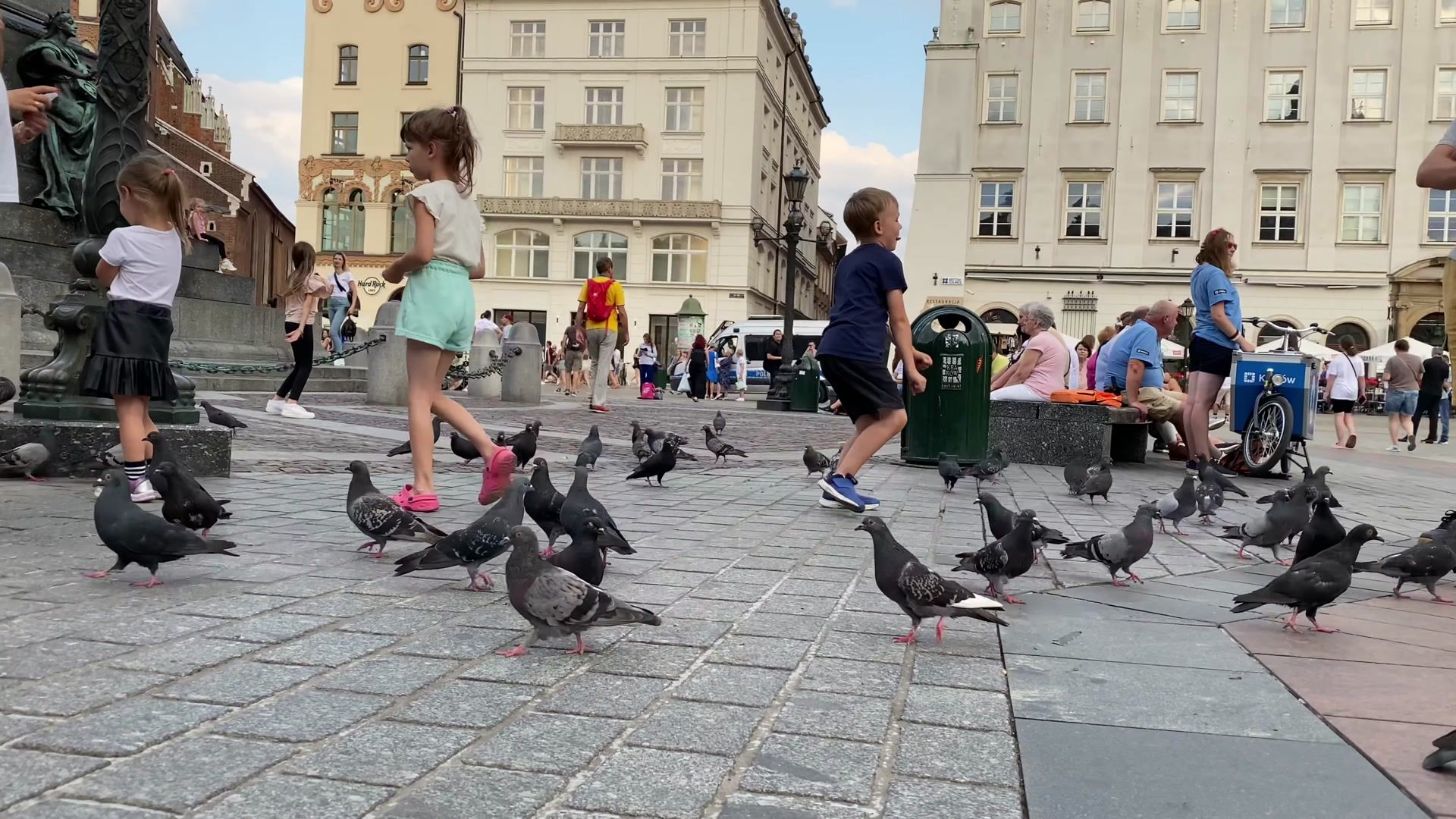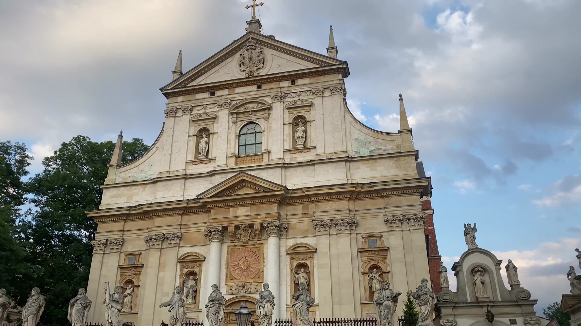 We came upon the dramatic theater after passing through the main gates and turning left. It’s a beautiful and grand structure. Walking a bit further we saw a time corridor displaying the city's history and timeline. Then we approached the heart of Kraków, the largest medieval square a UNESCO World Heritage Site. On the side there was St. Mary's Basilica. There's a legend associated with this cathedral: two brothers started building the two towers, but when one brother became more successful, the jealous brother killed him. Whether true or not the towers different appearances are clearly visible. You can enter the cathedral both for free and with a paid ticket. The free entry is only for a small section. The paid section is for the main part and the altar. The ticket price is 15 zloty and inside is the Mariacki Church. The full name of the Mariacki Church is the Church of the Assumption of the Blessed Virgin Mary and it’s a pride not only of Kraków but of all Poland. It was built on the foundations of a Roman temple in the 13th century. The church has been continuously renovated and expanded over the years and even today, restoration work continues. Inside we were captivated by the blue velvet dome, stained glass windows, sculptures and an organ that hosts classical music concerts. However, the church’s greatest treasure is one of the largest wooden altarpieces in the world dating back to the late 15th century. This masterpiece took 12 years to complete. Every hour a trumpeter plays a melody from the church tower, but there’s a half-finished melody. This incomplete melody is heard only in Kraków, but at noon all of Poland listens to it. This tradition originated when the trumpeter was warning the city, but an arrow struck his throat, leaving the melody unfinished. The attack was repelled, but this incomplete melody became a symbol of time and safety for the city.
