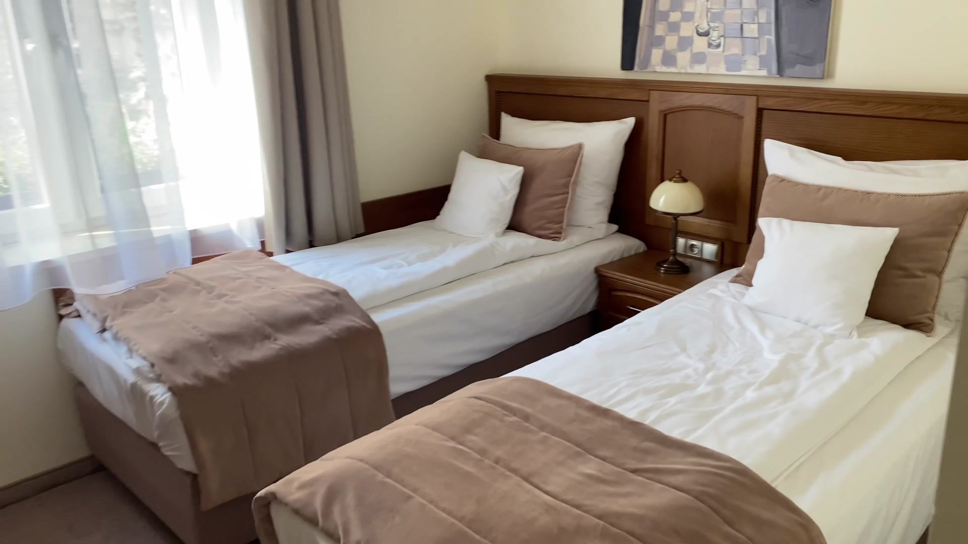 It’s time to talk about where we stayed. It was one of the best alternatives for us because we arrived by car and considered finding a place in the Old Town and parking the car in a parking lot, but parking was really expensive. So we decided to choose a place with its own parking area close to the city center. We decided to stay in a kind of boutique hotel, which was quite well organized. Attention to detail was evident and the room was quite good. The room entry is via a card. If you don't leave the card, the room’s air conditioning and lights do not work. The best part is that they provide two cards. One can be used to charge your devices and the other can be taken with you while exploring the city. The room was quite small, with two separate beds. The window faced the main street where trams passed, but the sound insulation was quite good. There was a small refrigerator and the bathroom was well done. On the first floor of the hotel, there was a Michelin-starred restaurant awarded in 2019.