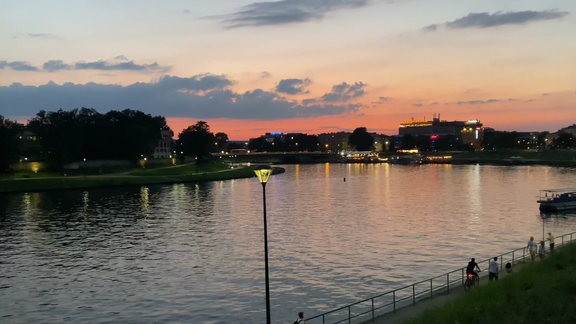 In the evening we began walking along the Wisła River. The riverbank had a really beautiful atmosphere. Walking here is enjoyable not only during the day but also in the evenings. The coolness of the Wisła River, with many different excursion boats and street musicians, makes it a perfect place to unwind and catch your breath. This spot where the Wawel Dragon's cave is located, is also one of Kraków's legends.