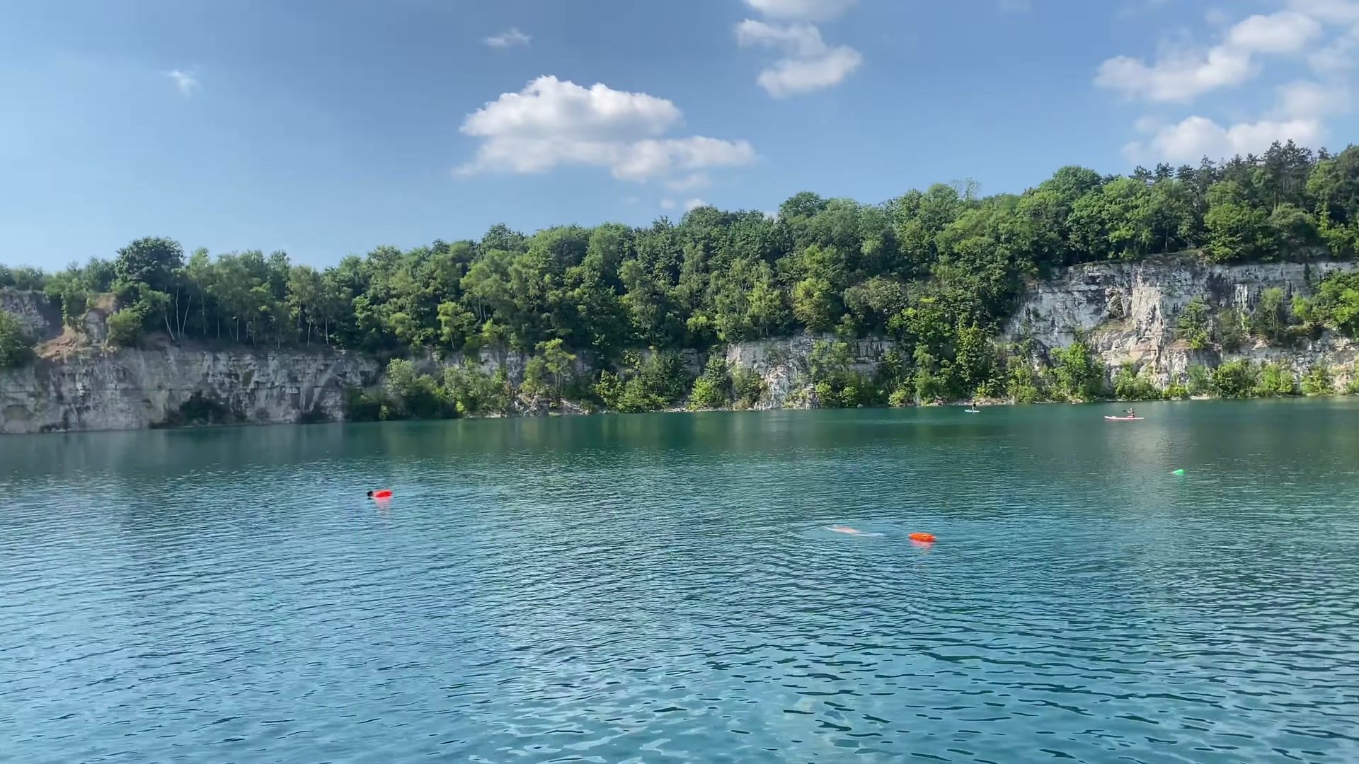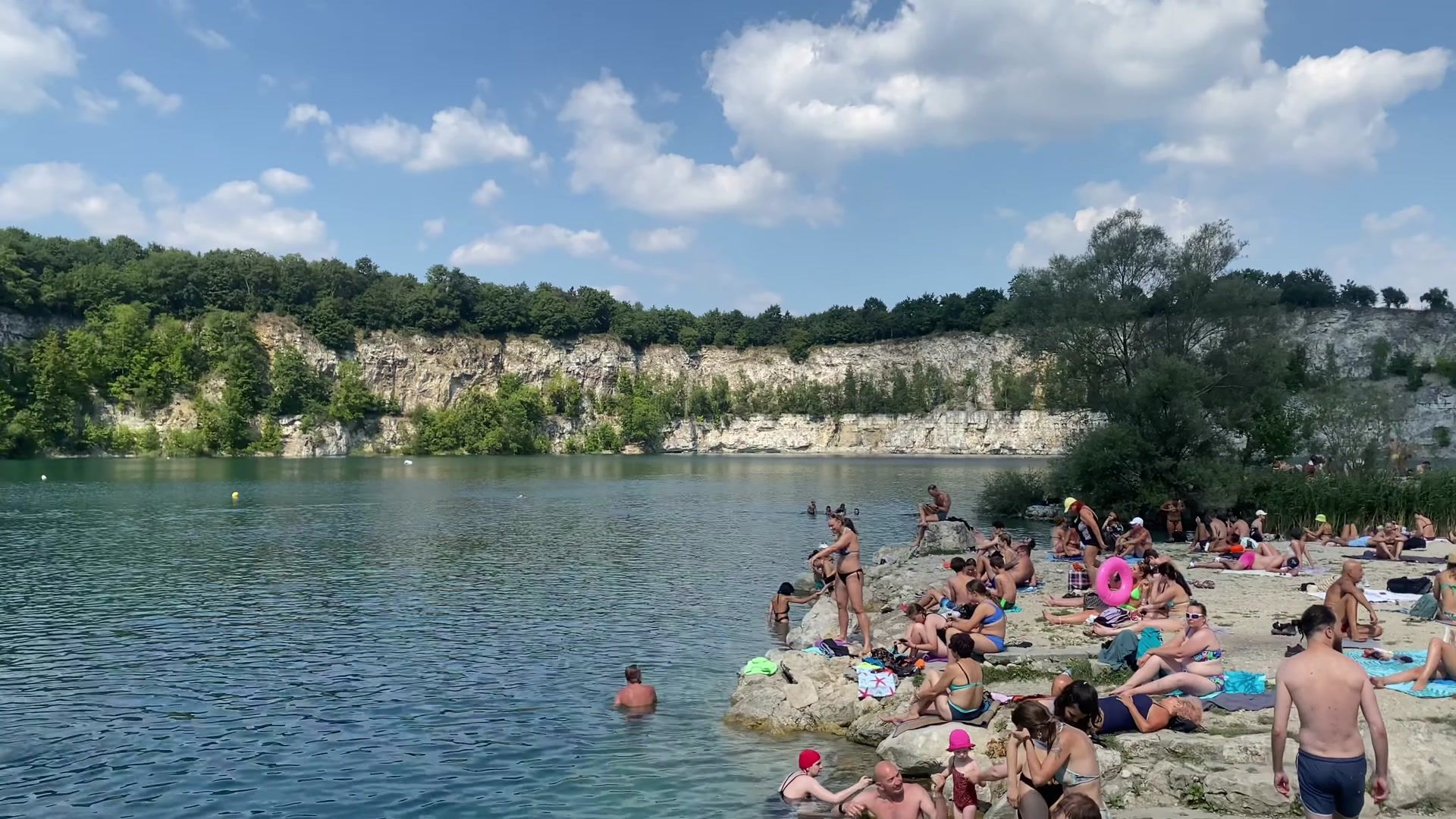 We drove to a very nice place, located a bit south of Kraków. This place opened in the summer of 2023. There was a long queue. Here, there is a water-filled quarry from the 90s. It used to be a place for adrenaline junkies, where people came to jump off cliffs and dive because the quarry’s depth reaches up to 20 meters and there is a sunken bus underwater. City officials invested 10 million euros here and built five pools on the water. The depth of the pools ranges from 40 cm to 2 m.Each pool has a wooden deck around it for sunbathing. This place is also known as "Little Croatia" Although we didn’t reach our exact destination it turned out to be quite an interesting place. Entering the pool is nearly impossible on good weather days. People say the queue is so long that they wait 1.5 hours. We didn’t want to spend that much time and went to the beach behind the pool. It was a bit quieter there and the water was very clean. The only downside was that the ground was completely covered with stones, making it uncomfortable to sit or lie down on the stones. Still we swam and cooled off, then continued on our way.