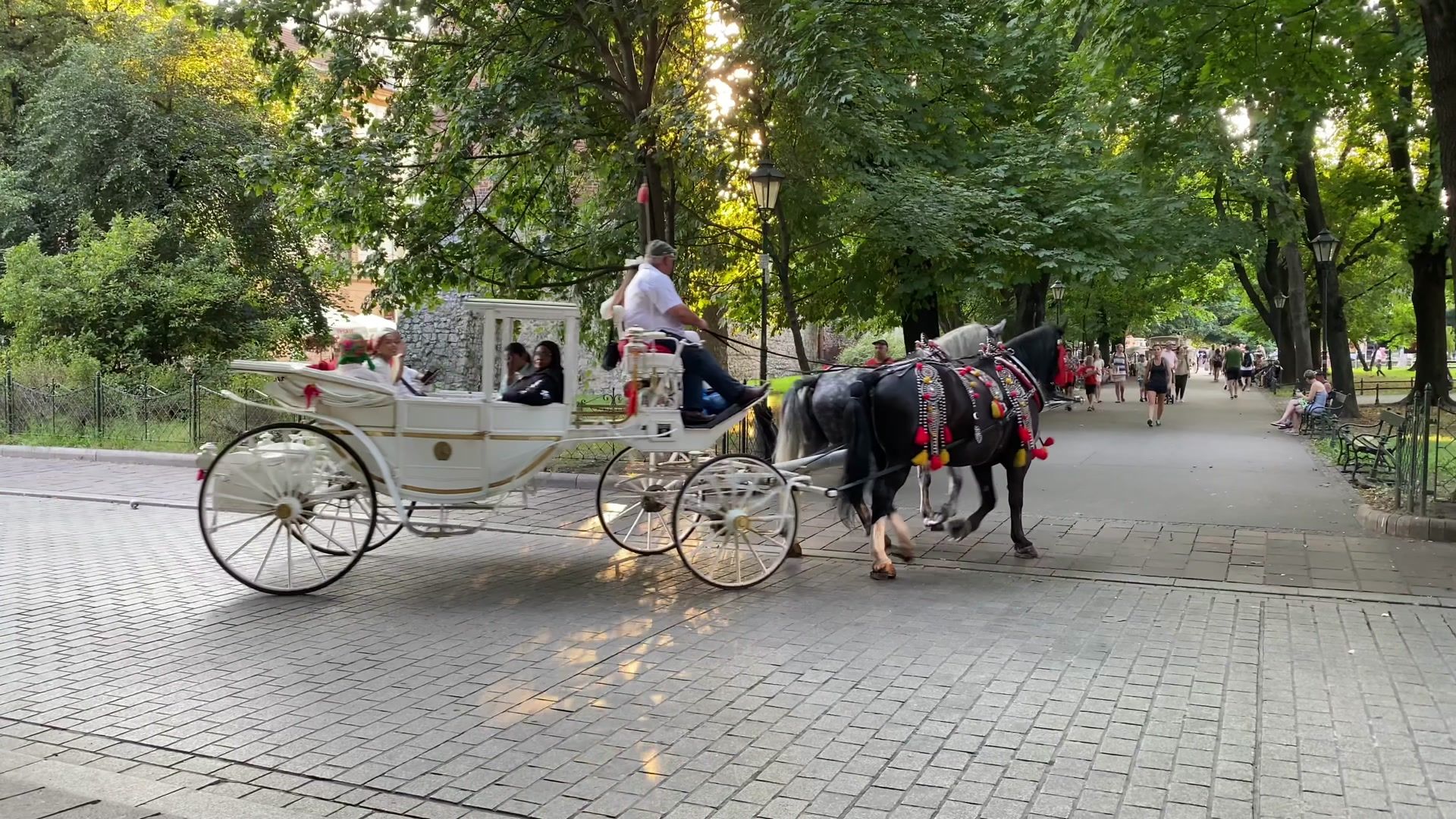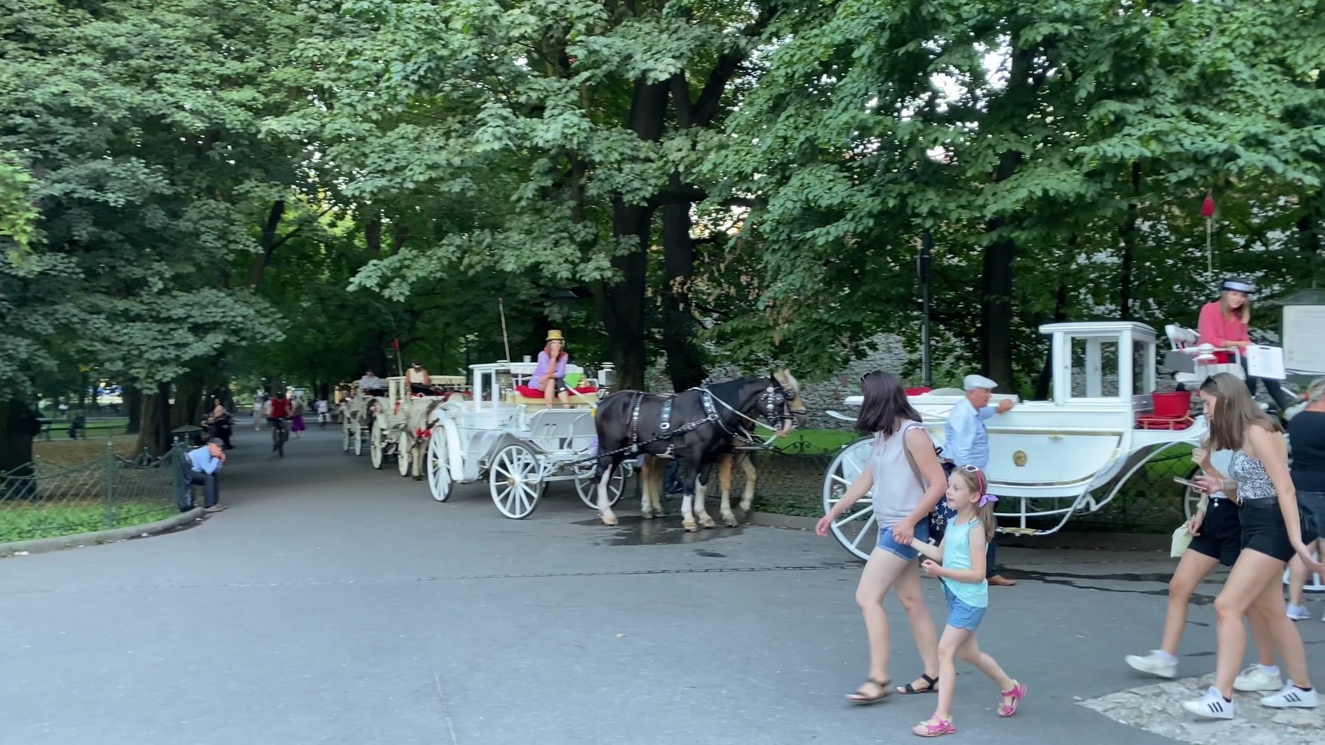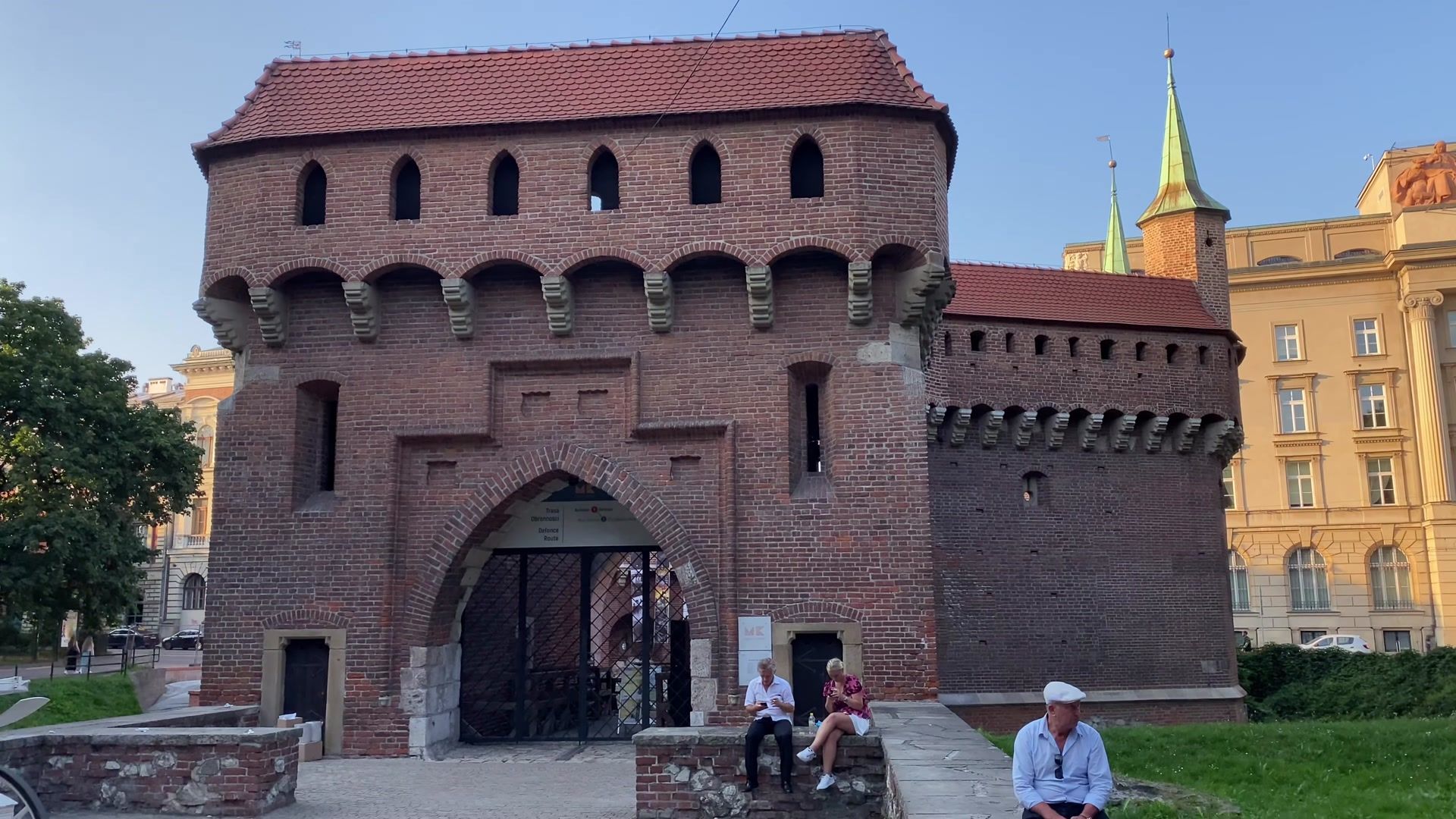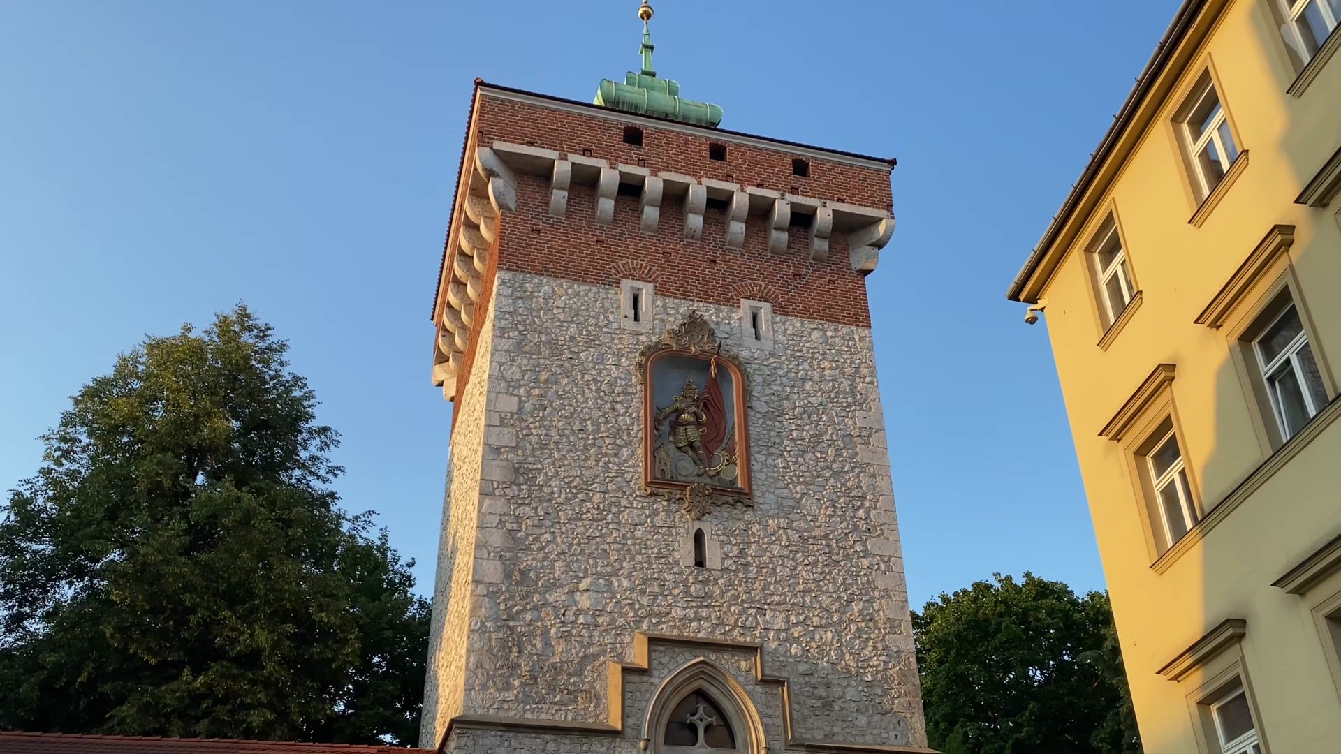 Hello everyone. Today we arrived in Kraków a city in southern Poland, also known as the Royal Capital. Our journey began at Galeria Krakowska. Your trip will most likely start from this point if you arrive here by public transport. It’s a large shopping mall, but it also houses the bus terminal and the main train station. Although the main entrance of the train station is now closed, everyone accesses the old town through the shopping mall. It takes about 10 minutes to walk to the old town from here. So there's no need to use public transport. In front of the main gate we saw a defense fortress. It was once surrounded by moats, but there's no water now and inside, there’s a museum. Very little of the main gate remains. At the city entrance there are many horse-drawn carriages waiting to take you around the old town. The horses look well-groomed and healthy and there’s no bad smell in the area. The Florian Gate here was built in the 10th century. St. Florian depicted on the tower, is considered the city's protector. Today the gates are one of the symbols that welcome visitors to the city.
