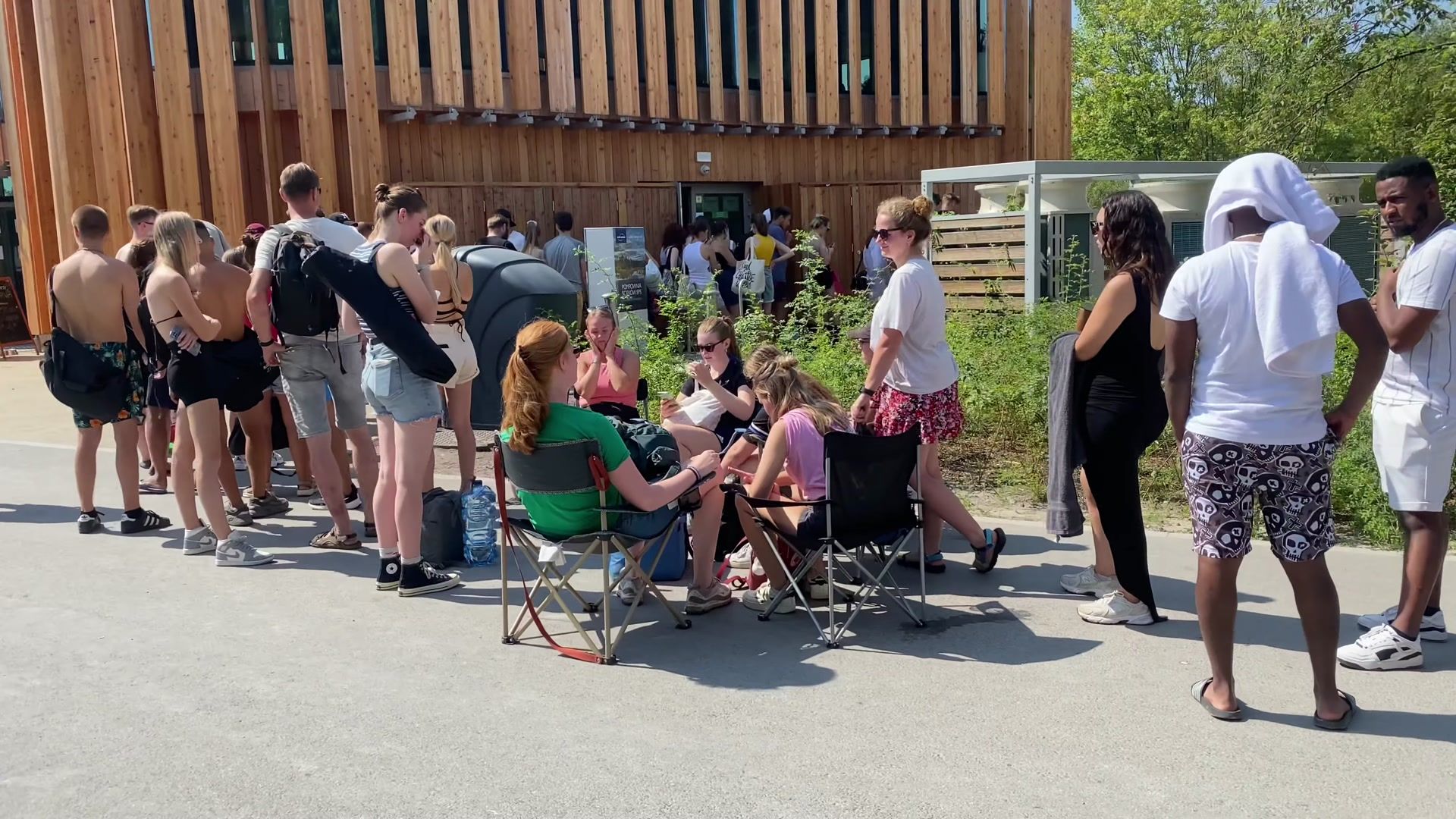 Then we passed by the pool and the queue was still very long. You had to wait for someone to leave before you could enter. So, it was a complete ordeal. However, there are changing cabins right at the entrance, which is a nice thing. We changed our clothes there right after swimming. The cabins are free and there are also toilets.