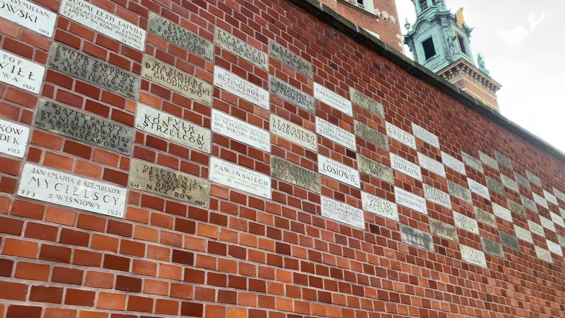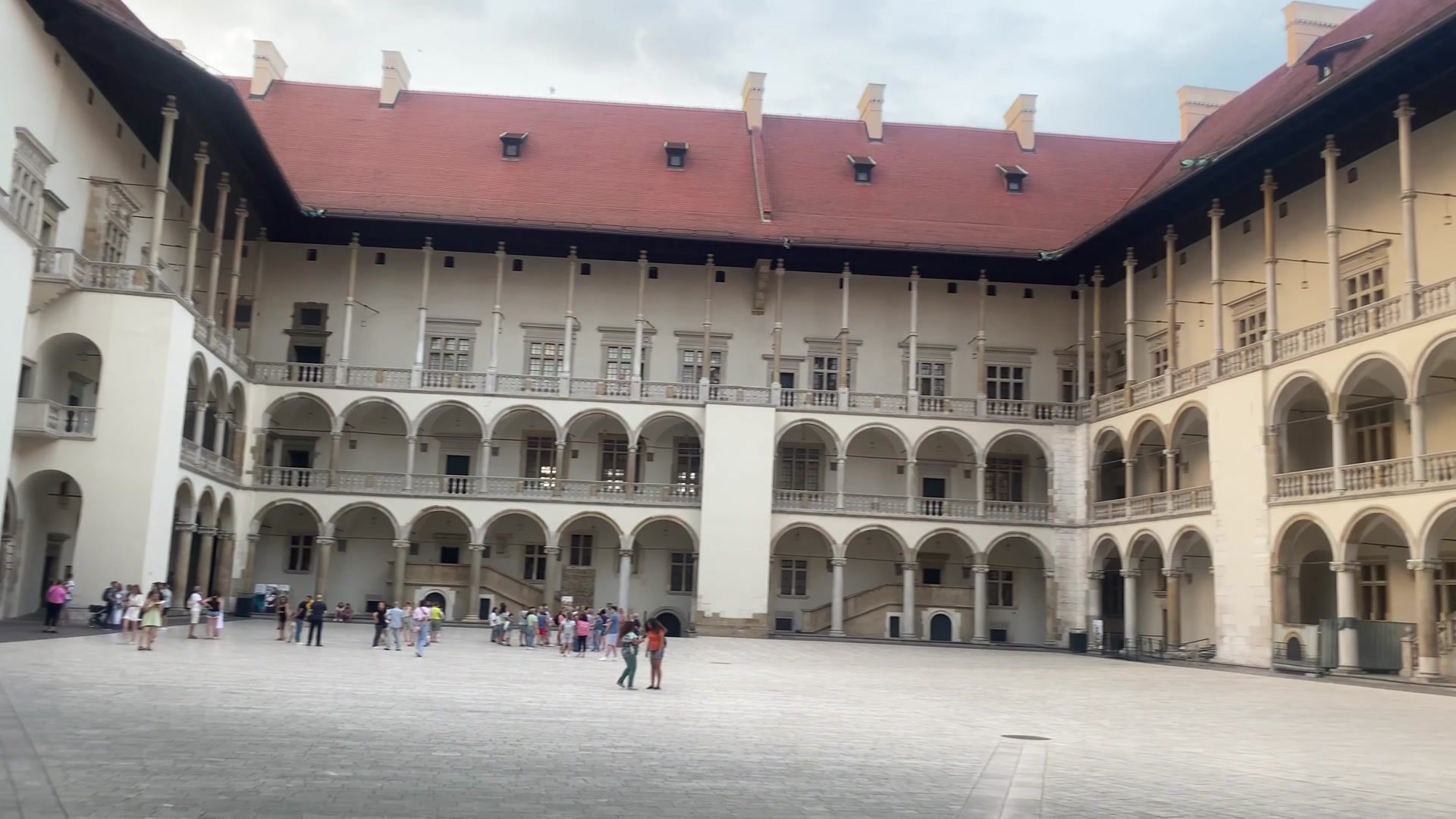 In the center of the square there are fun and refreshing fountains for children. Of course they’re not just for children. They’re fun for everyone. Walking from Rynek Square towards Wawel Castle, we saw St. Peter and Paul’s Cathedral. In front of the cathedral are statues of the 12 apostles and in the evenings, live music concerts are held here. We can say that Kraków has many churches. Over 90% of Kraków's population is Catholic and Kraków's Archbishop John Paul II was elected as the first non-Italian Pope in 455 years. We continued walking towards Wawel Castle. As we climbed to the castle we noticed there was a path suitable for strollers. This path is also laid out to resemble a mosaic. In fact here are the names and donation amounts of those who contributed to the reconstruction of the castle. Climbing to the castle is completely free, you just need enough strength and patience. However, entry with dogs and bicycles is prohibited. As we climbed to the castle we passed the second gate and saw the magnificent view in the courtyard.