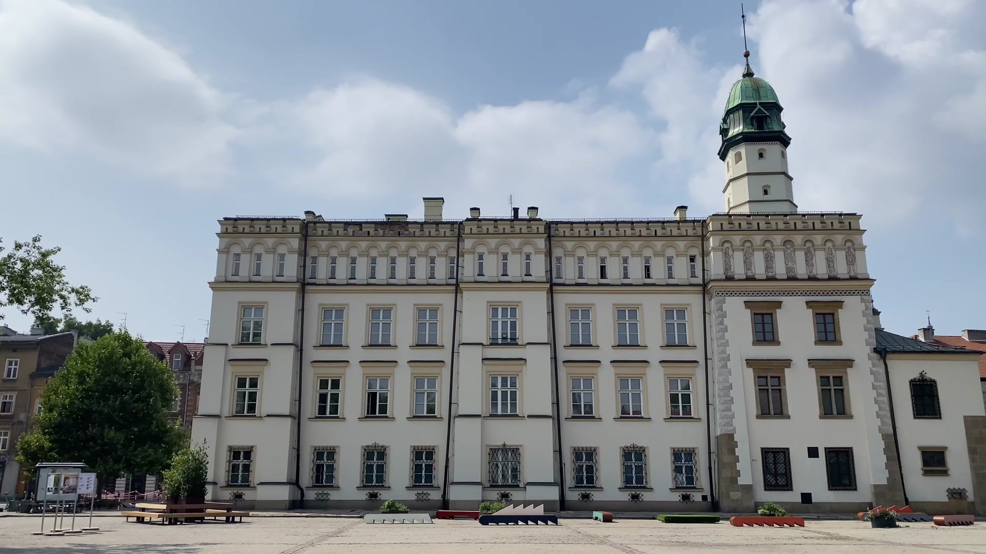 We moved on to Kraków's main square. Rynek Square was built in the 13th century with a square shape, measuring about 200 meters in length and width, making it an impressive 40000 square meters. Since 1978 it has been a UNESCO World Heritage Site along with the old town. In the middle of the square is the Sukiennice or Cloth Hall. From the outside it looks like a palace, but it was actually a market for local textile merchants. Today the building hosts a souvenir market adorned with national colors. And there is a gallery here displaying 19th-century Polish art and the only remaining part of Kraków's first town hall, a 70-meter-high town hall tower. The tower features an observation platform where you can see the old town's panorama, but be prepared to climb 110 steps.