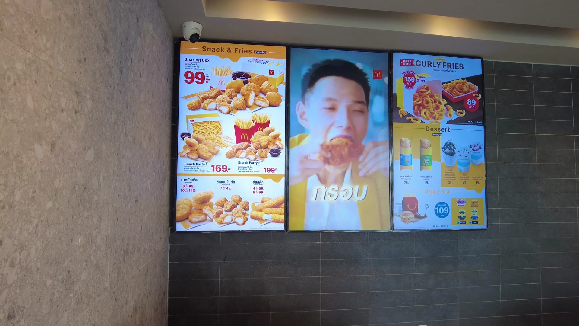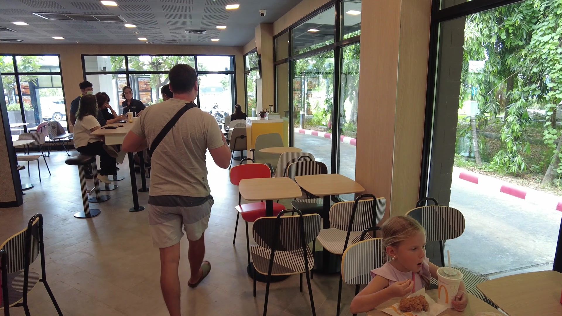 We stopped at McDonald's, not our usual preference, but at least it offers a reliable standard. While we generally avoid soda at home, we made an exception for the trip. Our meal included crispy chicken, two servings of fries, a burger, a Coke and cheese sticks. We paid 213 Baht, but thanks to the McDonald's app, we got one portion of fries for free. Using the app helps reduce costs slightly.