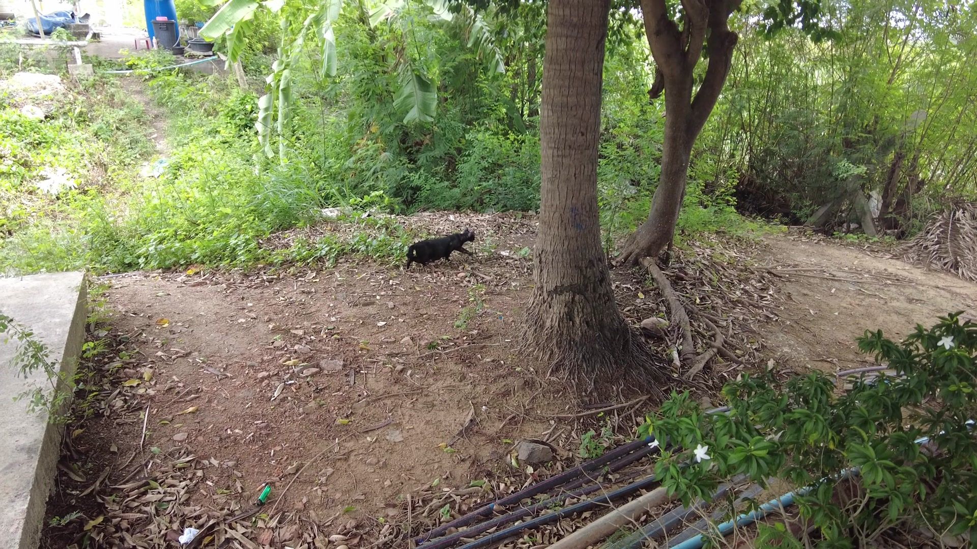 We saw a cat on the roadside, hunting, probably for its kittens. It was sniffing around and moving carefully. Suddenly, when the birds flew up, it turned its attention elsewhere.