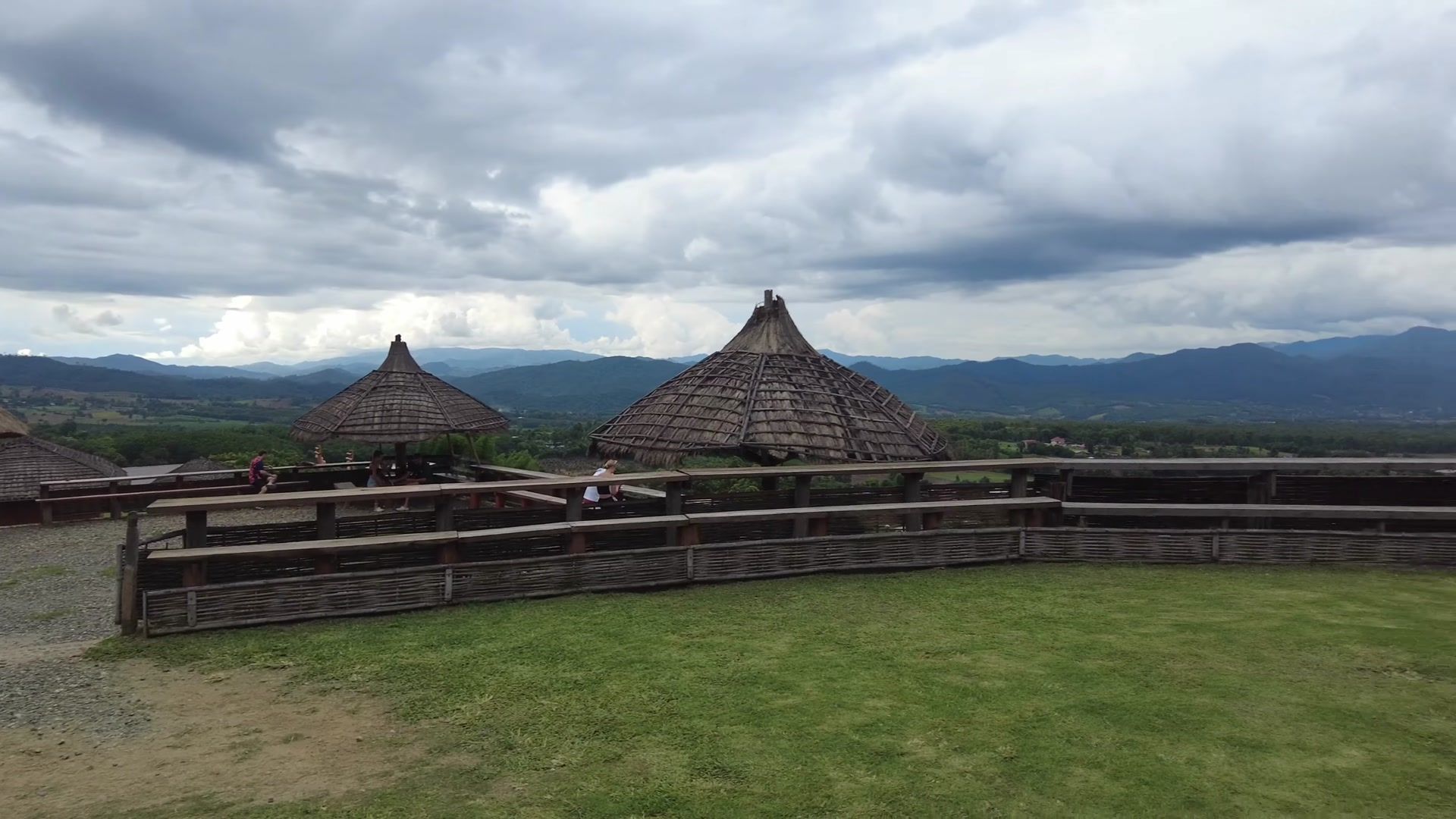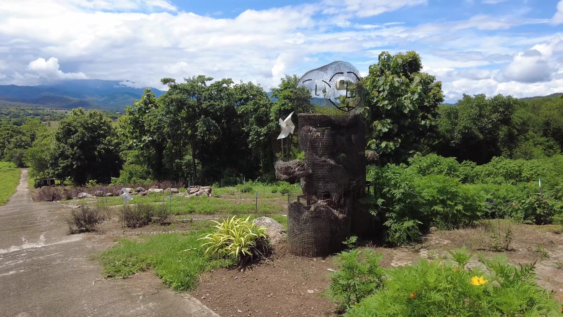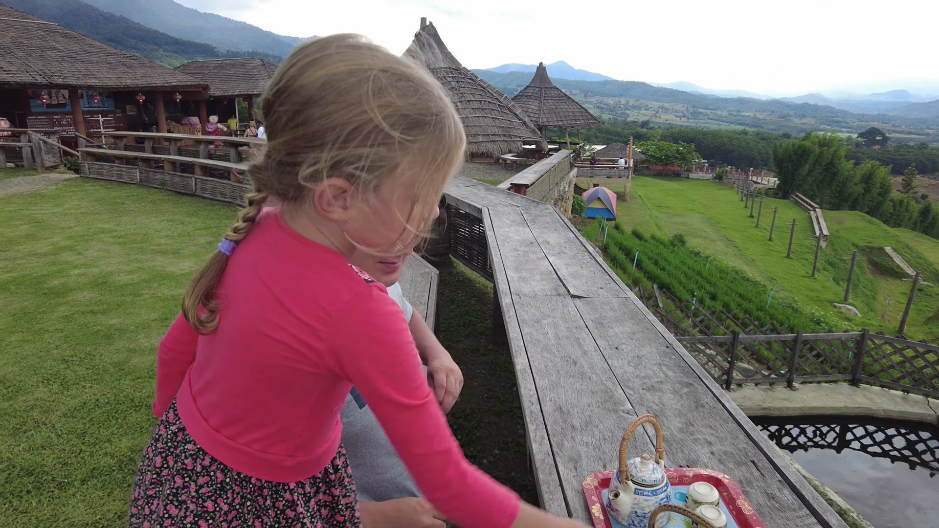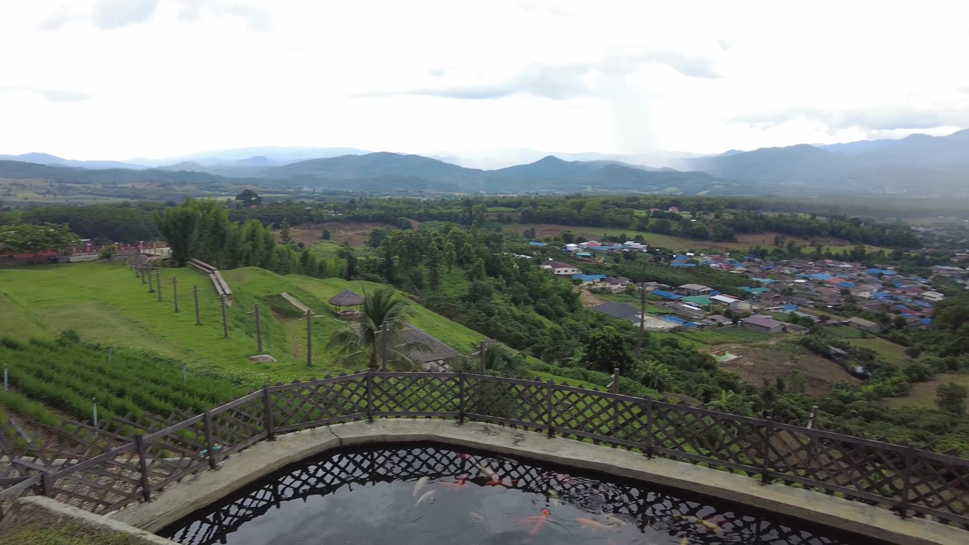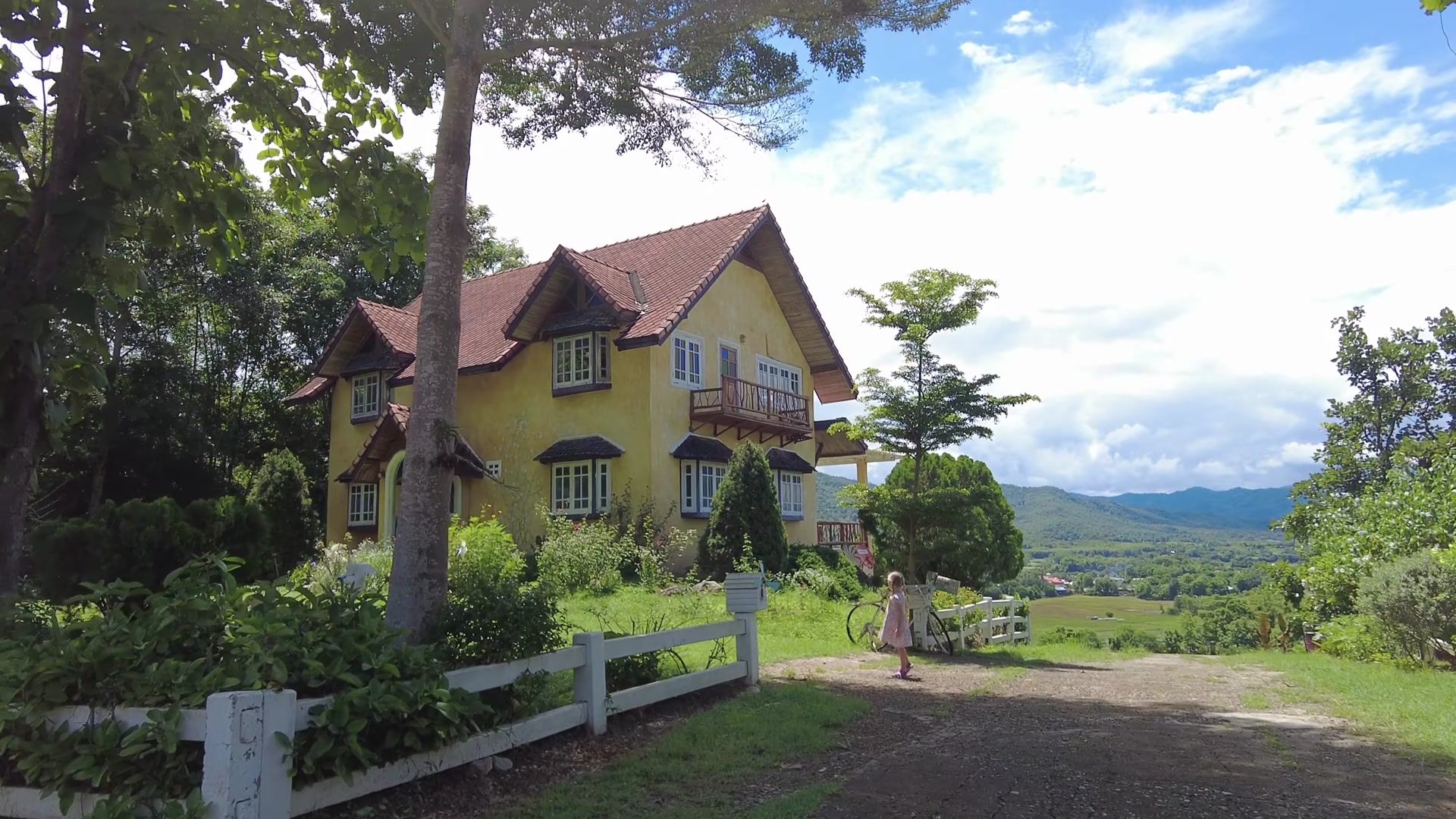 We decided to explore the area. It’s well-maintained, with neatly trimmed lawns. We found a local attraction: a Chinese village. The village is nearby but features houses built in a distinctly Chinese style. It’s only 10-15 minutes from Pai, so very close. There are also a few viewpoints and camping options nearby. Some visitors had come specifically to camp. From above, Pai looks like a small town.