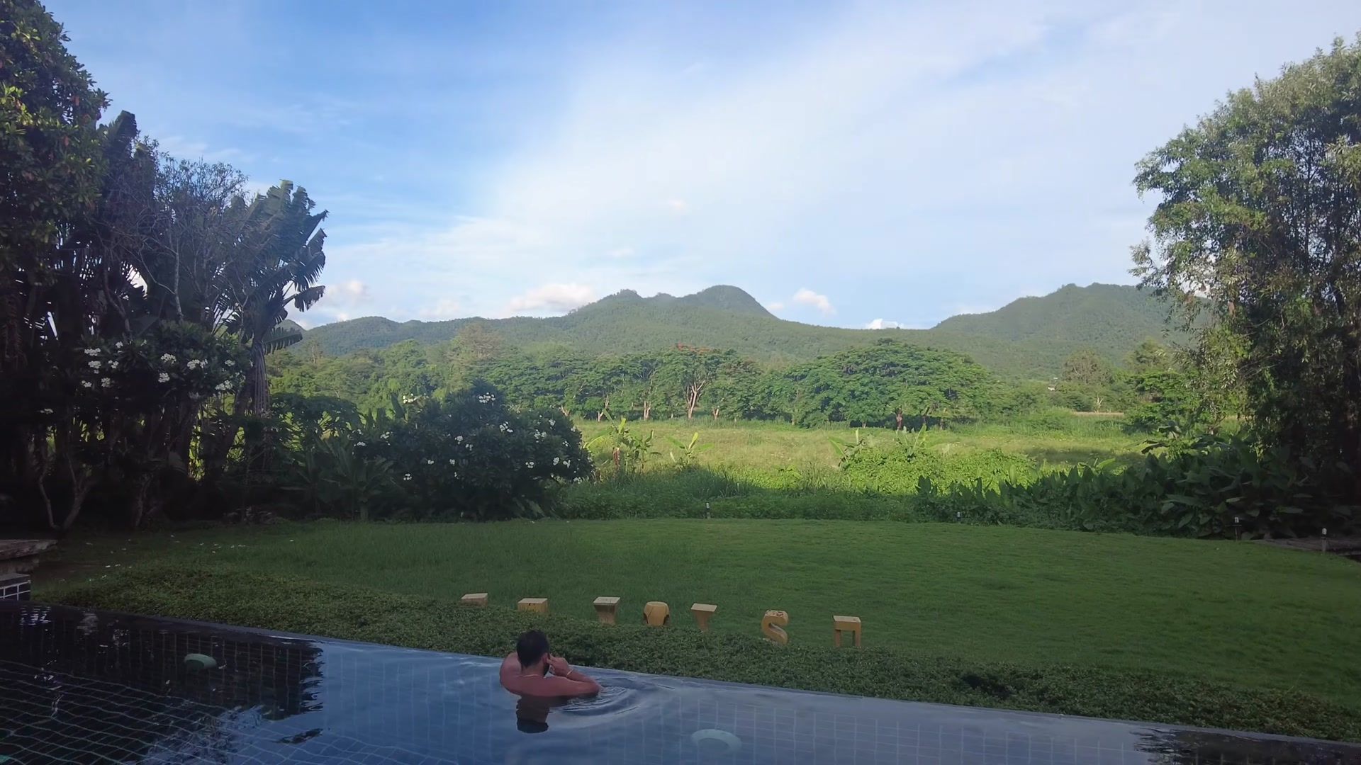 We woke up to a breathtaking view of the mountains, clouds hovering over the hills and fresh air. For the first time in Thailand, we slept without air conditioning. With the windows open and the fan running, the refreshing air filled the room. This is something you appreciate only after living in Thailand for over a year, enduring the constant heat and stuffy, air-conditioned environments. The air here is phenomenal. The untouched nature feels so pristine, as if a dinosaur might emerge from the trees at any moment. This alone makes Pai worth visiting.