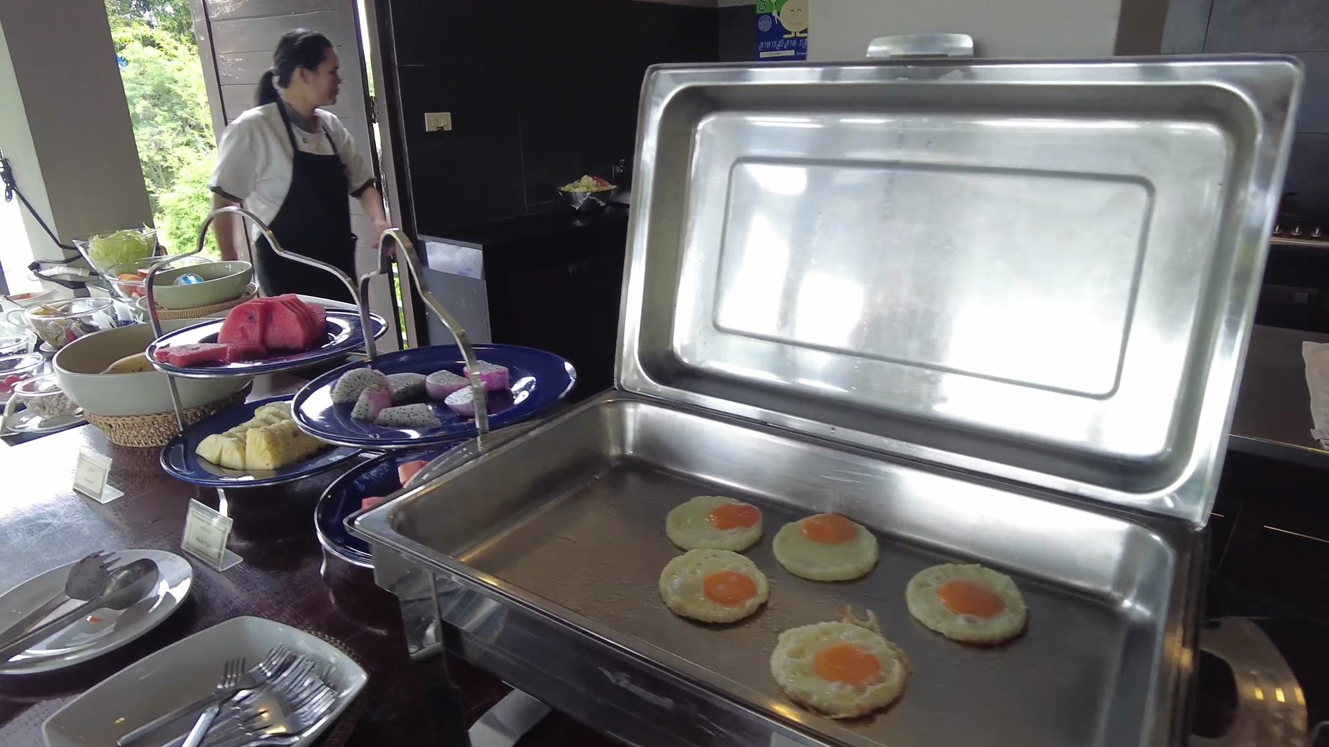 We headed to breakfast, which offered a decent selection: Chinese and European dishes, eggs, sausages, bread and pancakes. There was also plenty of fresh fruit and vegetables, regular bread, even baguettes, cereals, tea and coffee. Not bad for Thailand. Considering the room price, the breakfast was quite good. The view was stunning.