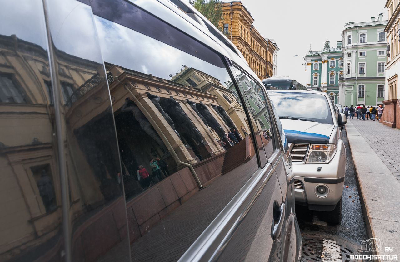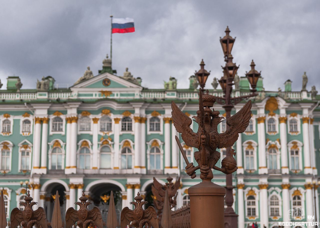 Once on the square, the first thing I went to the fence around the Alexander Column. When I lived in St. Petersburg many years ago, there was no such beautiful fence. I really liked these decorations around its perimeter. This double-headed eagle is the state symbol of Russia and is depicted on its national emblem, and is also used in other Russian symbols.