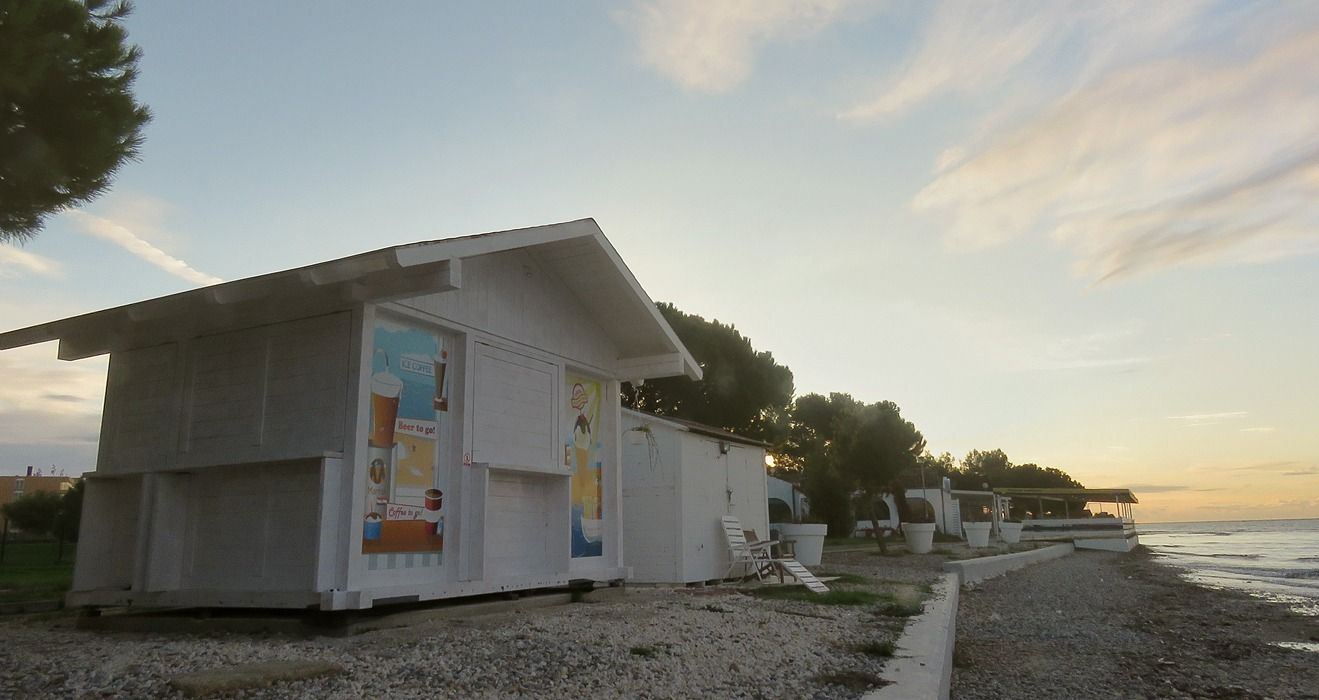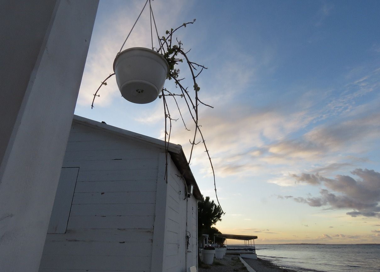 The lamps of the summer terraces, stiff like helmeted soldiers on a quiet front, were silently observing the sea ...