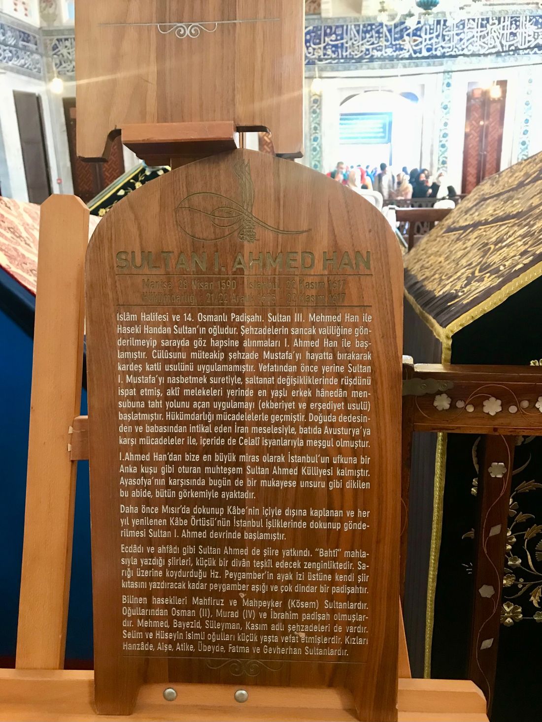 Making my way to the back of the room, I found myself in the presence of the Sultan himself. Sultan Ahmed I, born in 1590, took the throne at thirteen years of age and reigned for 14 years until his death in 1617 of typhus.