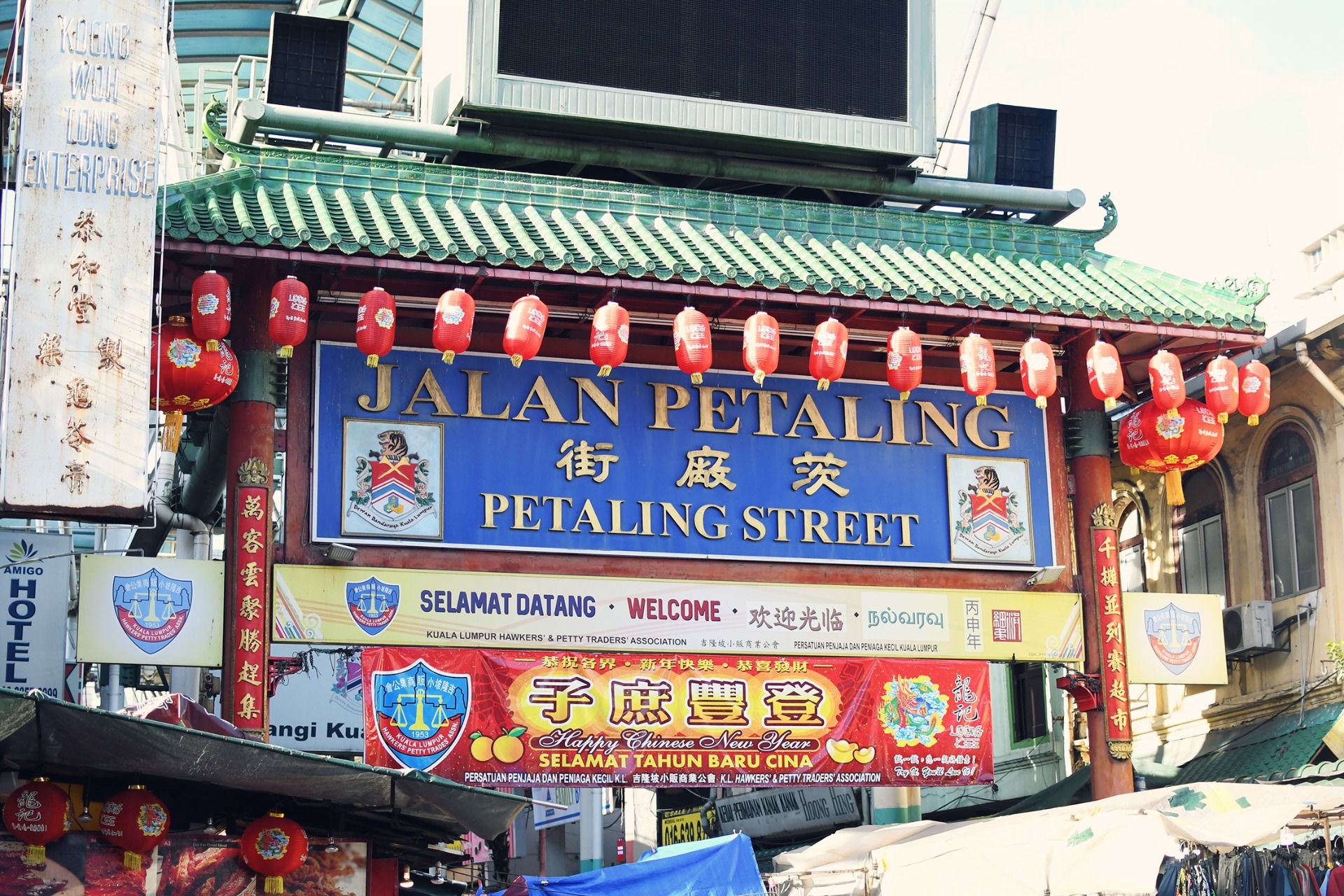 The china town is at Petaling Street and the whole area is bustling with market vendors trying to sell food, clothing,trinkets,scarves,shoes and much more.