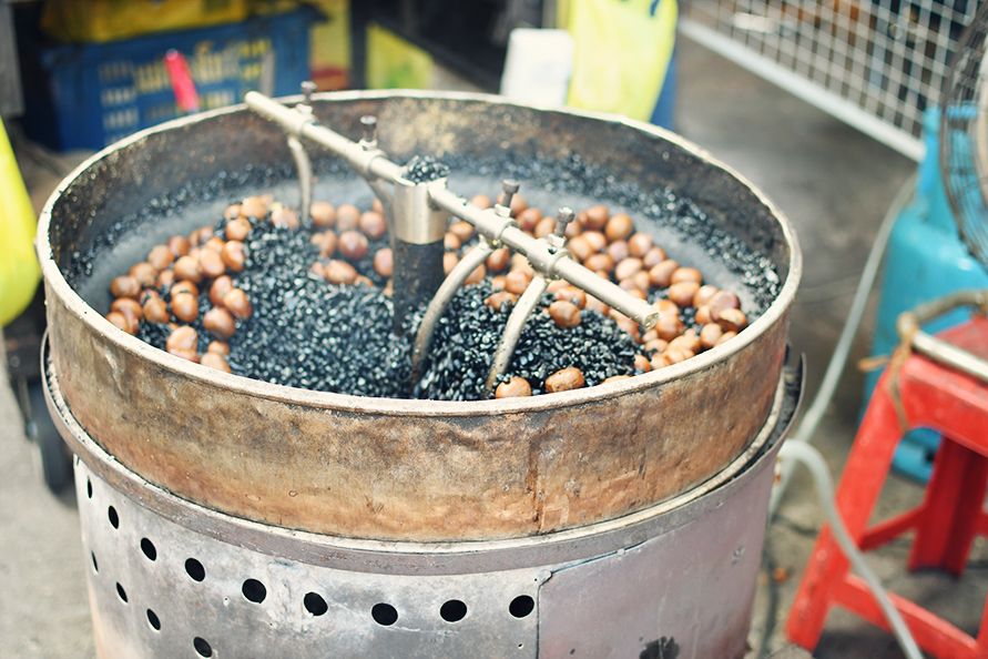 I tried hot roasted chestnuts roasted in coffee beans. They were so good but honestly I didn't get a coffee taste. Than again, I'm not a roasted chestnut connoisseur.