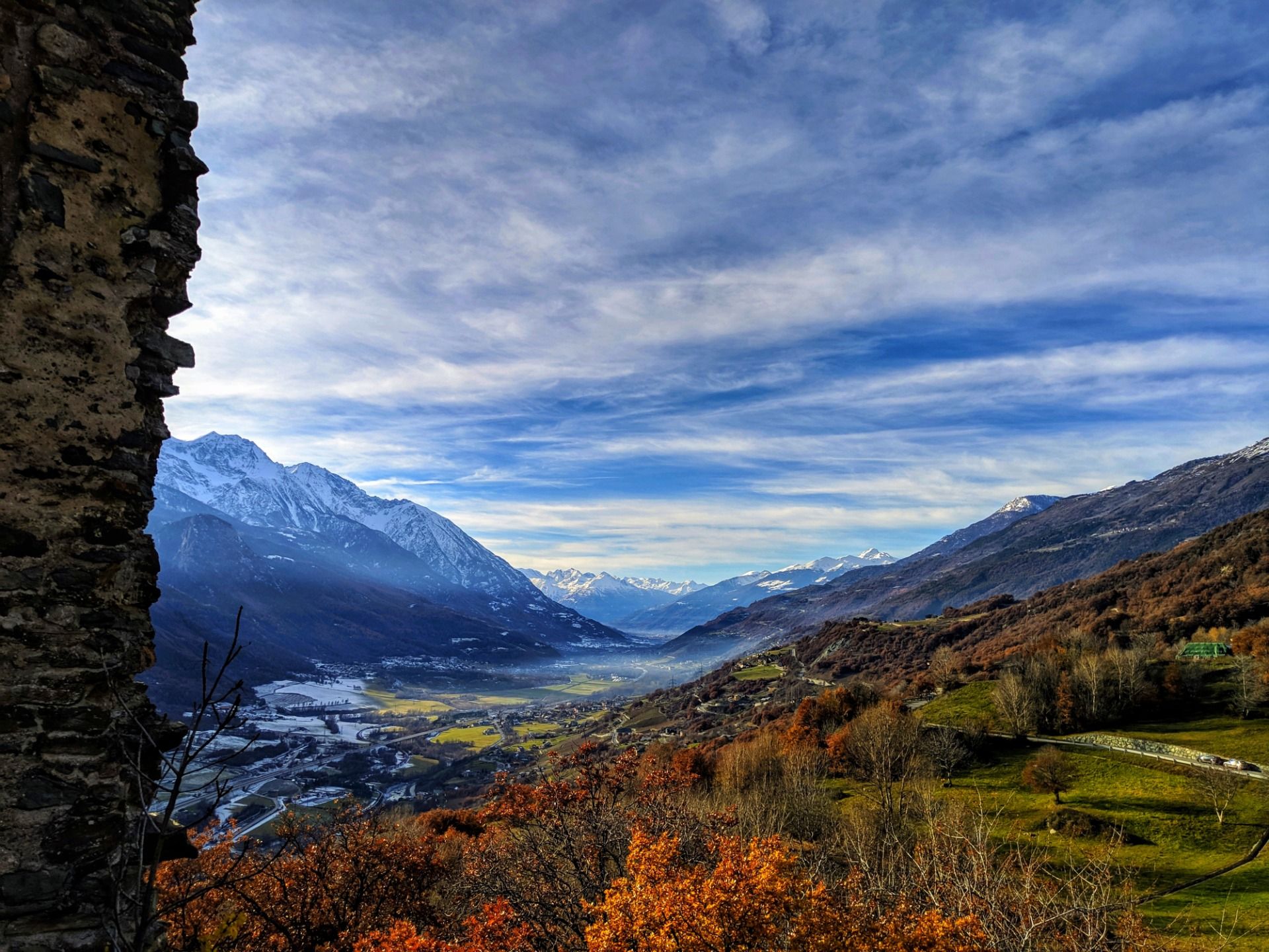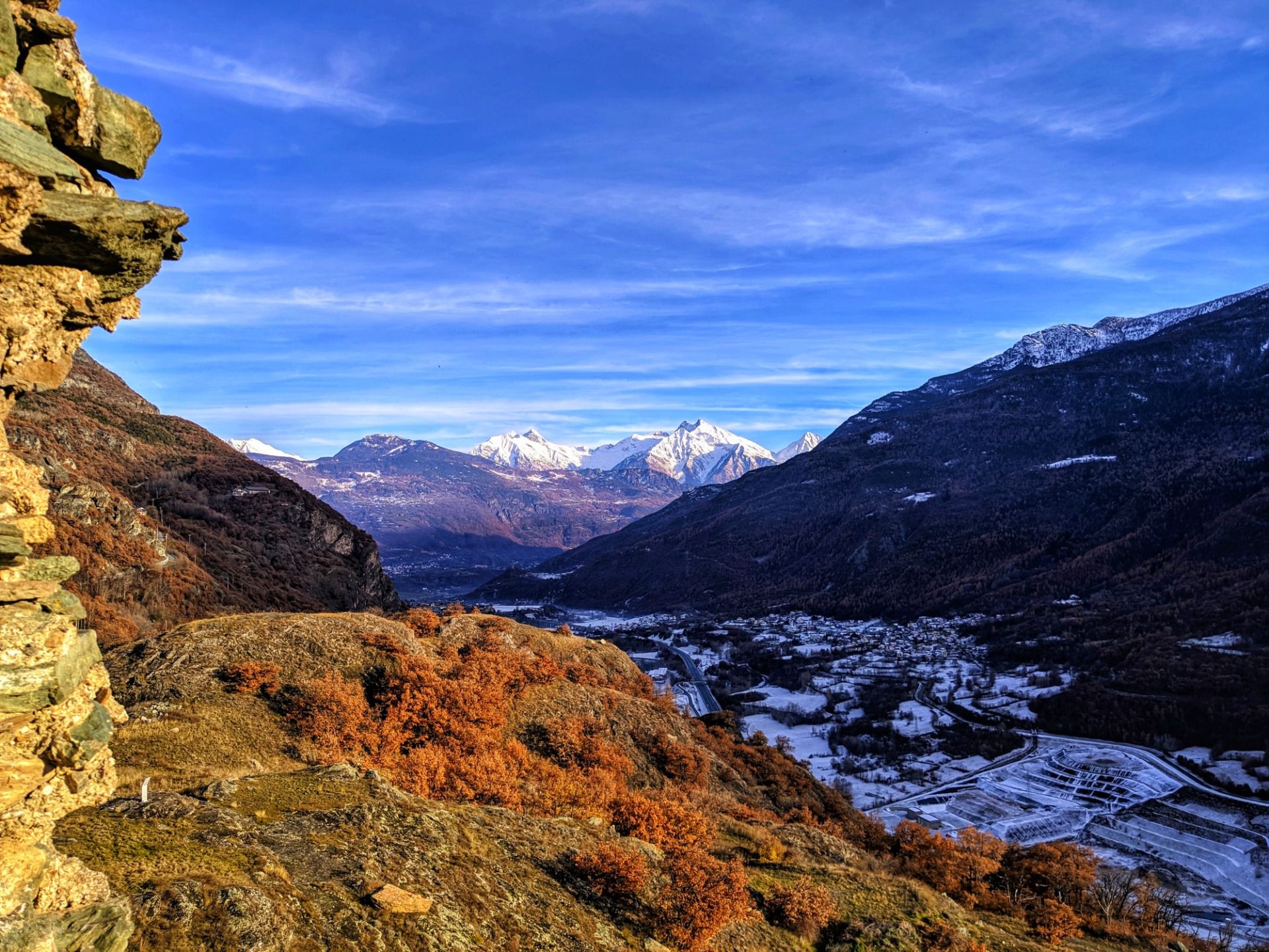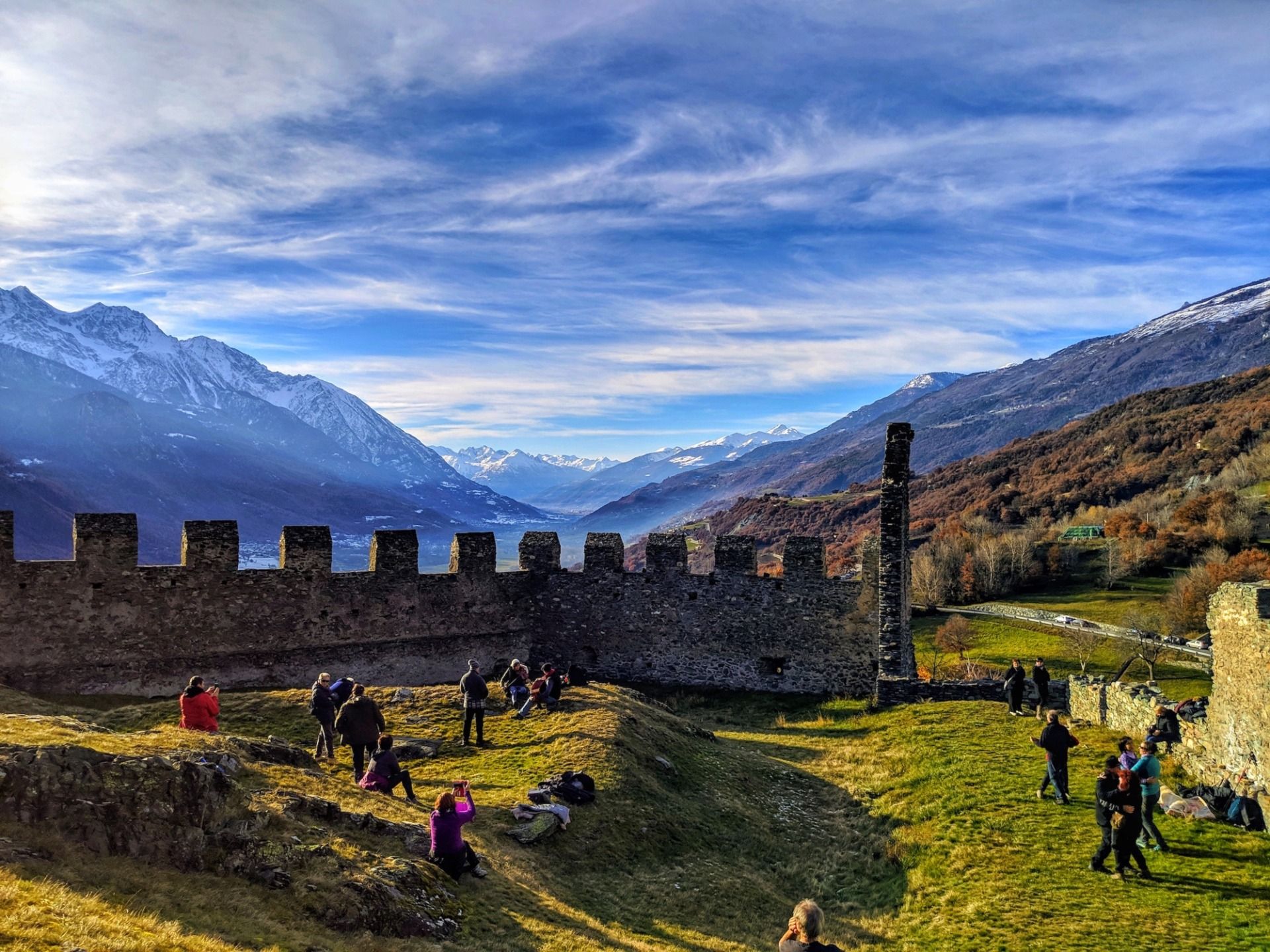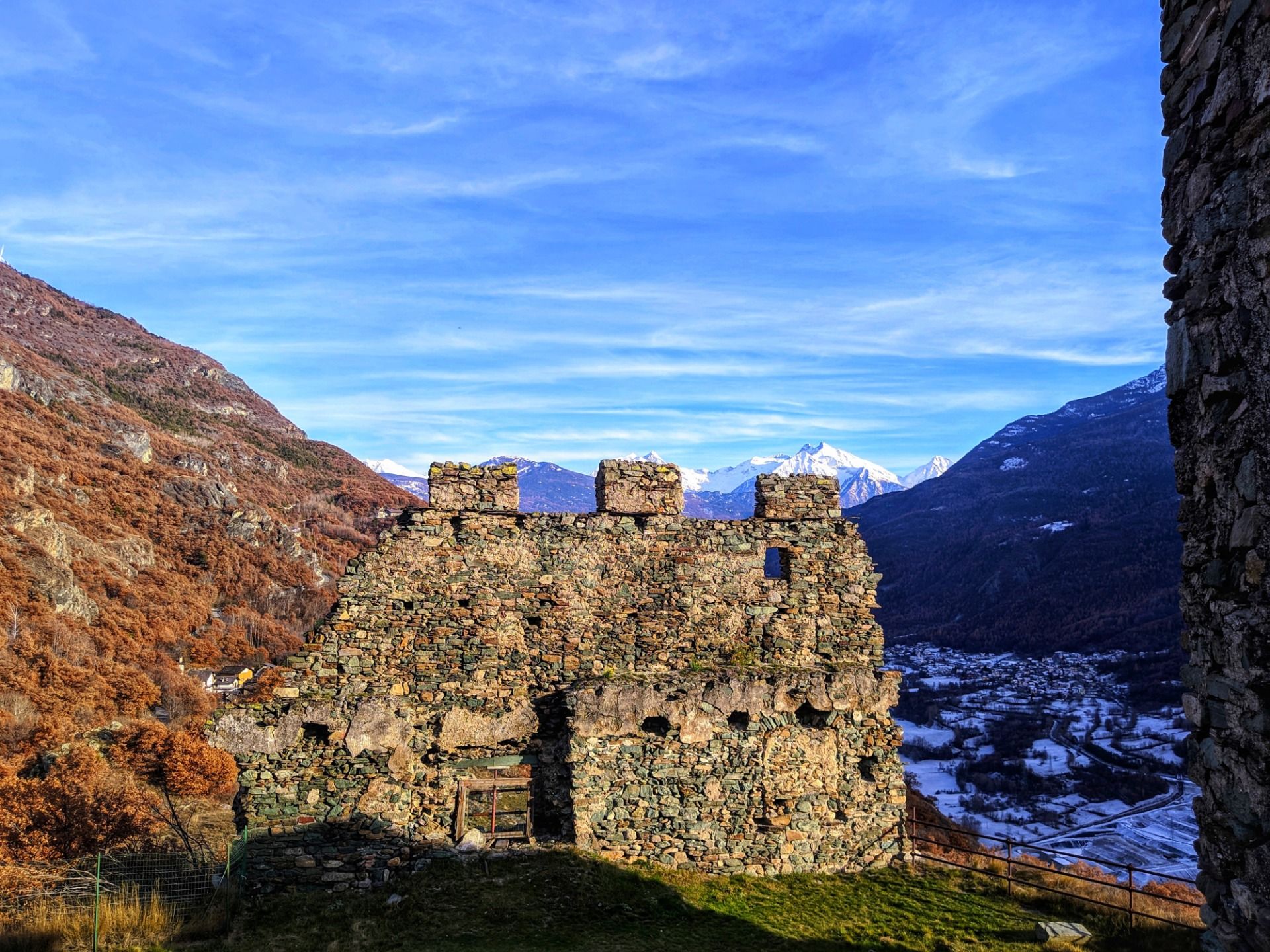 From up there you can see a large part of the valley, from Aosta to Saint Vincent (which are 25 kilometers away from each other), as well as a good part of the Alpine mountain range that envelops the region with the smallest surface area in the whole of Italy.