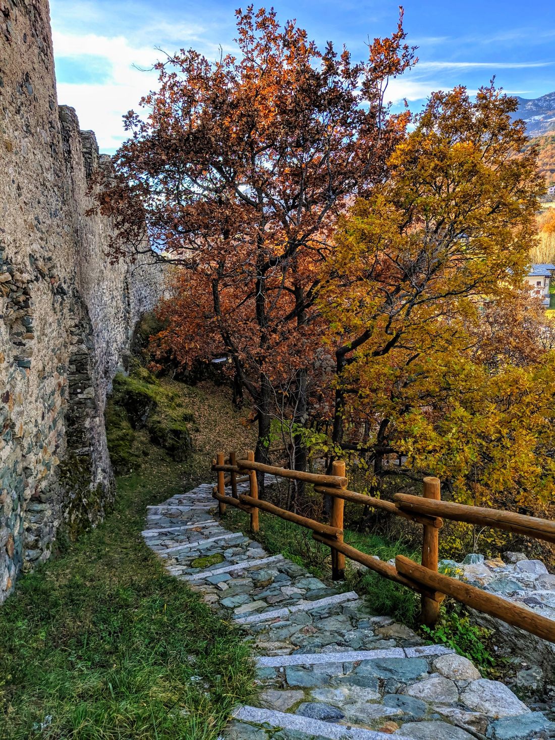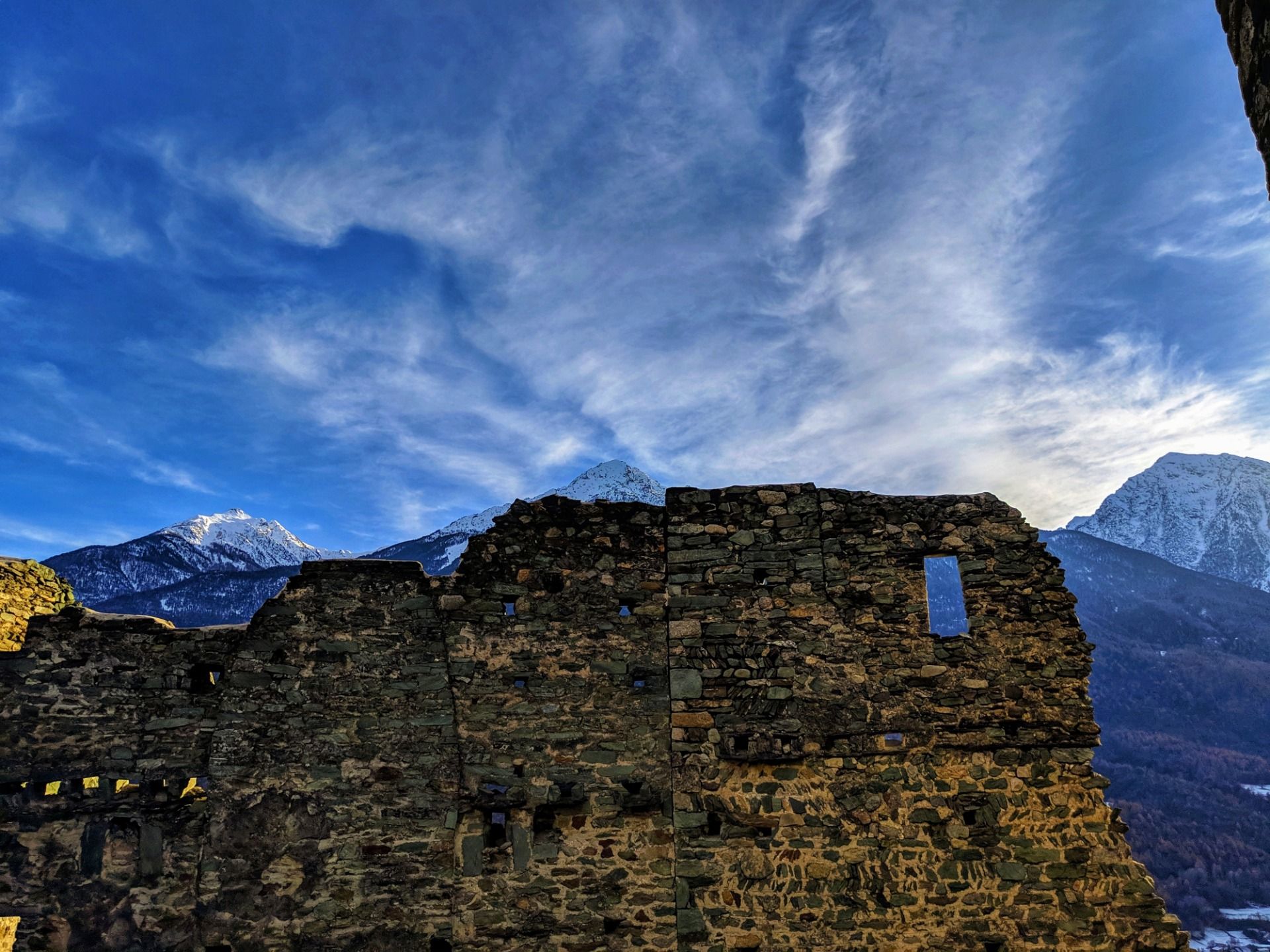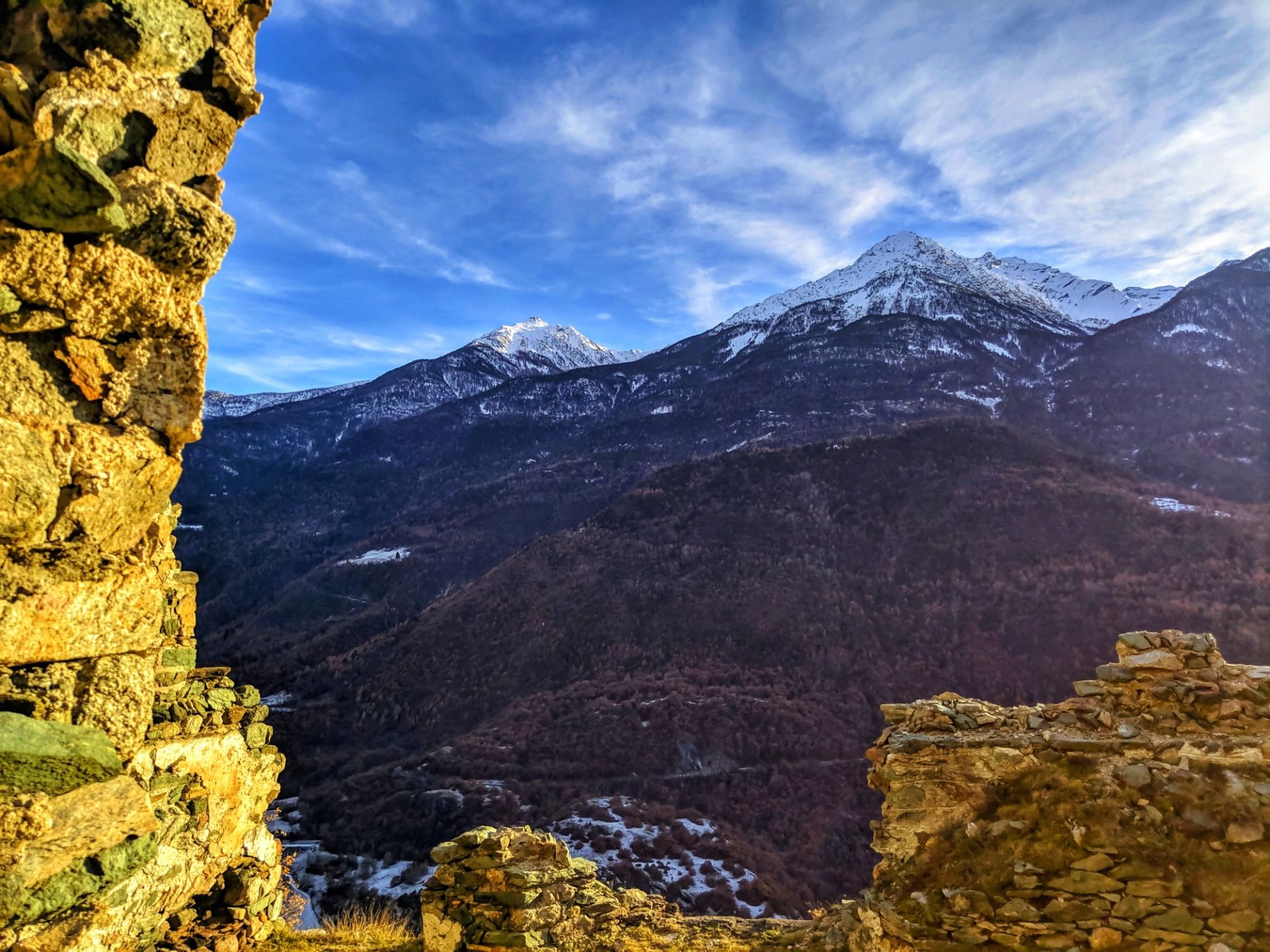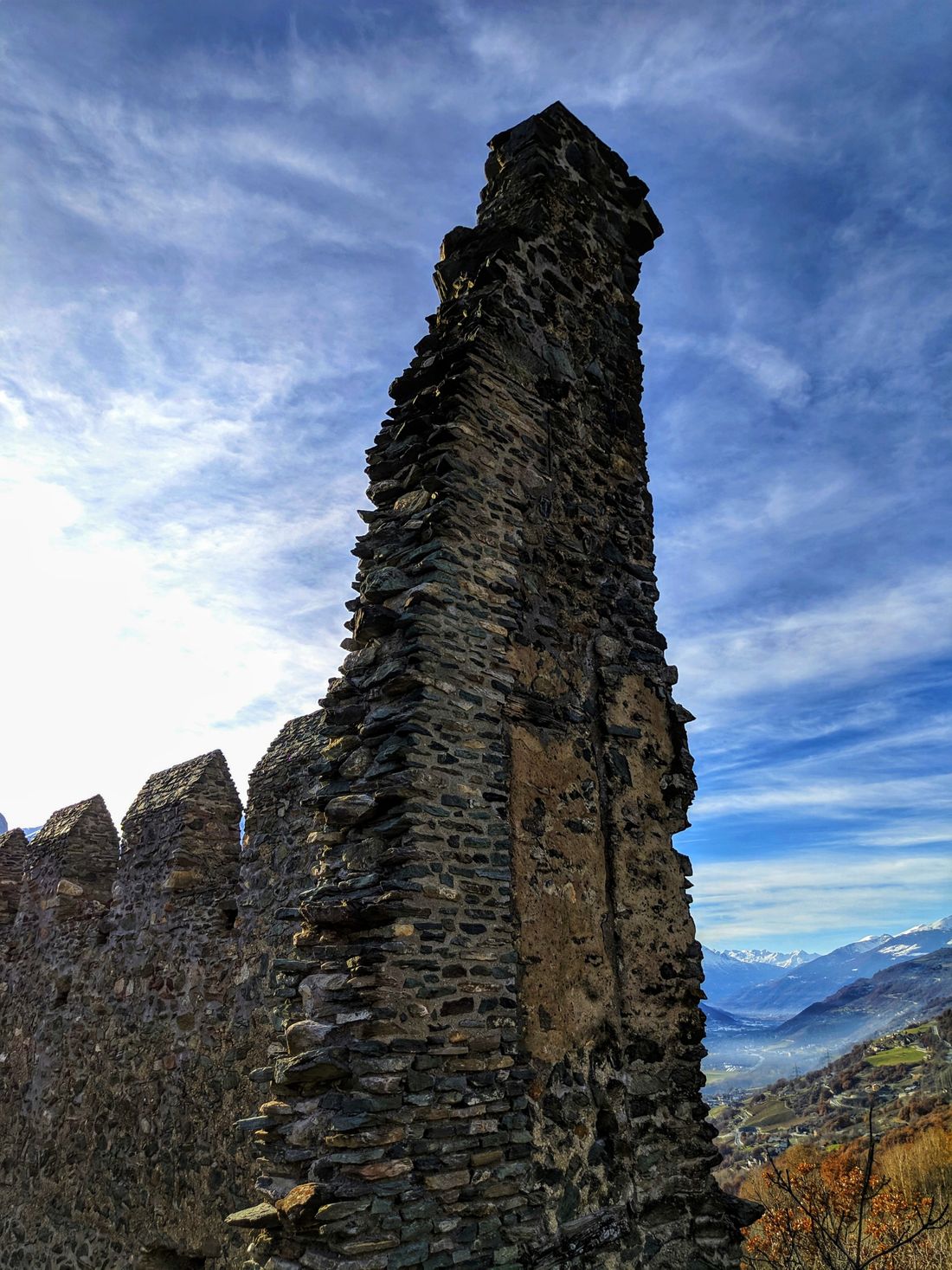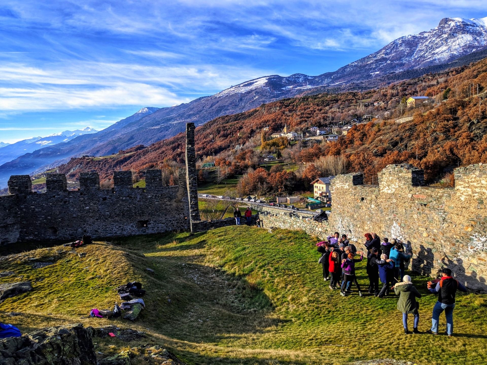 From up there you can see a large part of the valley, from Aosta to Saint Vincent (which are 25 kilometers away from each other), as well as a good part of the Alpine mountain range that envelops the region with the smallest surface area in the whole of Italy.