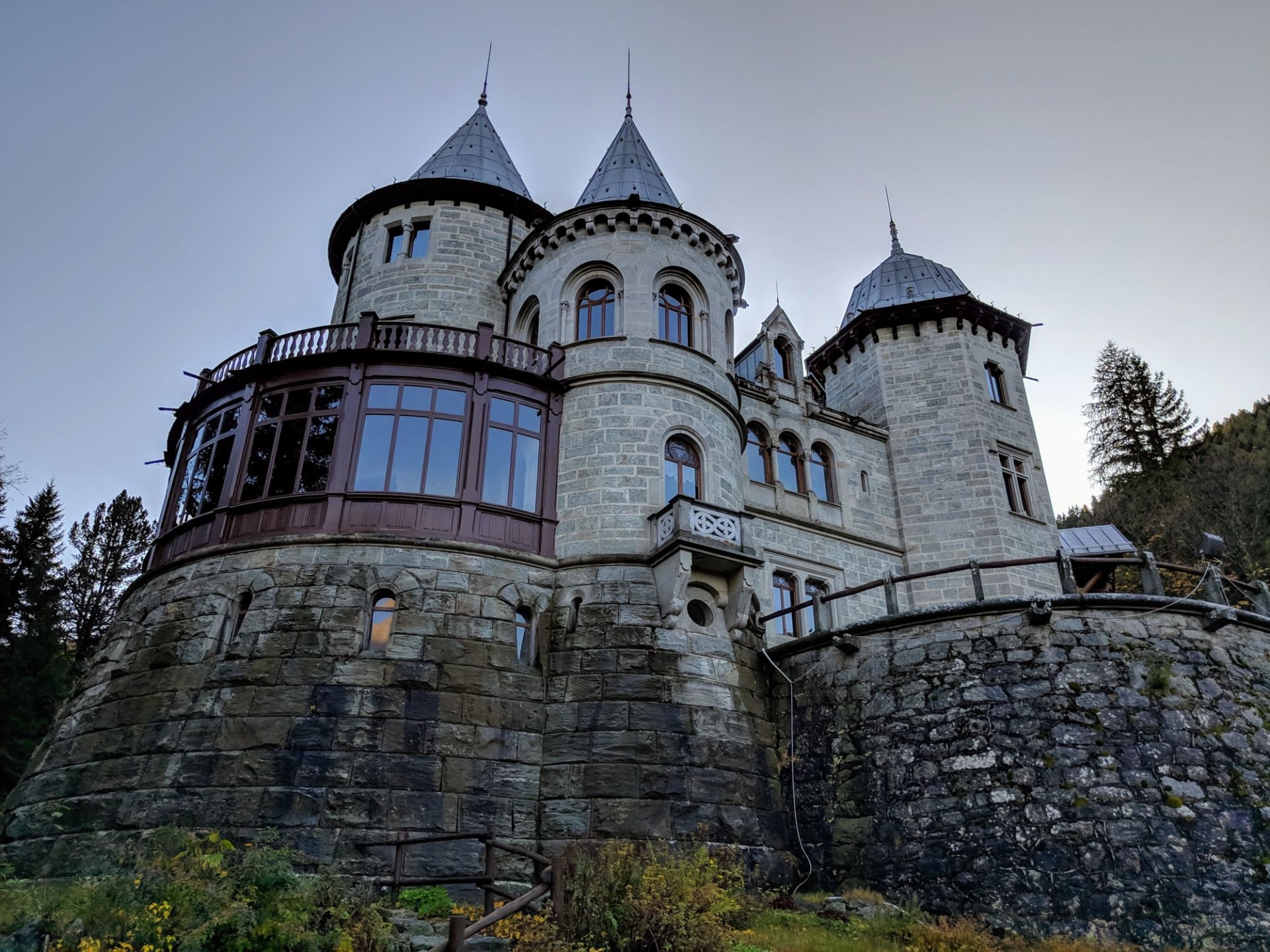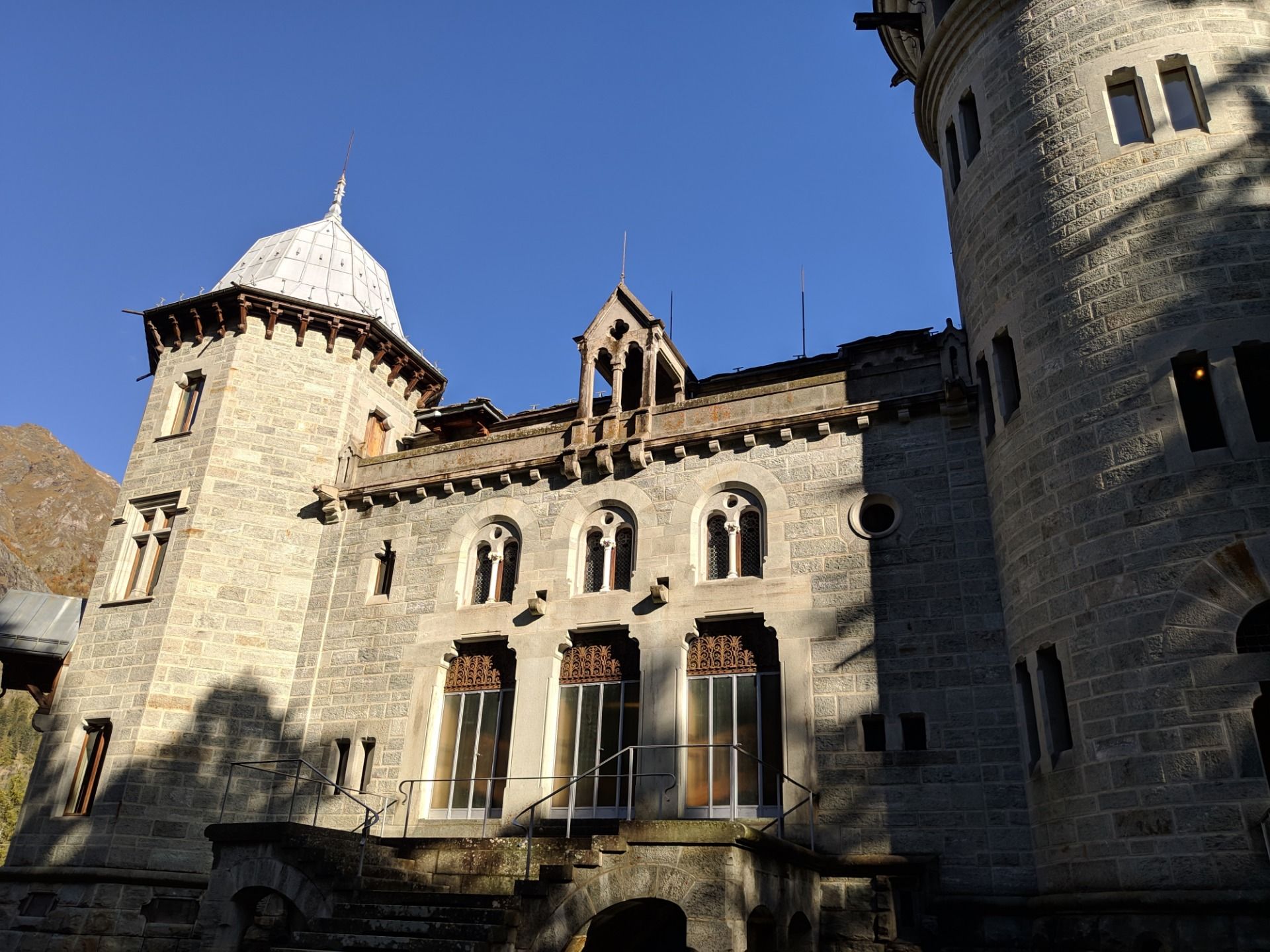 A castle that looks like those of fairy tales, inside Aosta Valley (Italy) Alps next to Switzerland border and a dense vegetation all around, unique example for a region plenty of castles but almost all with square shapes and places in strategic military areas.