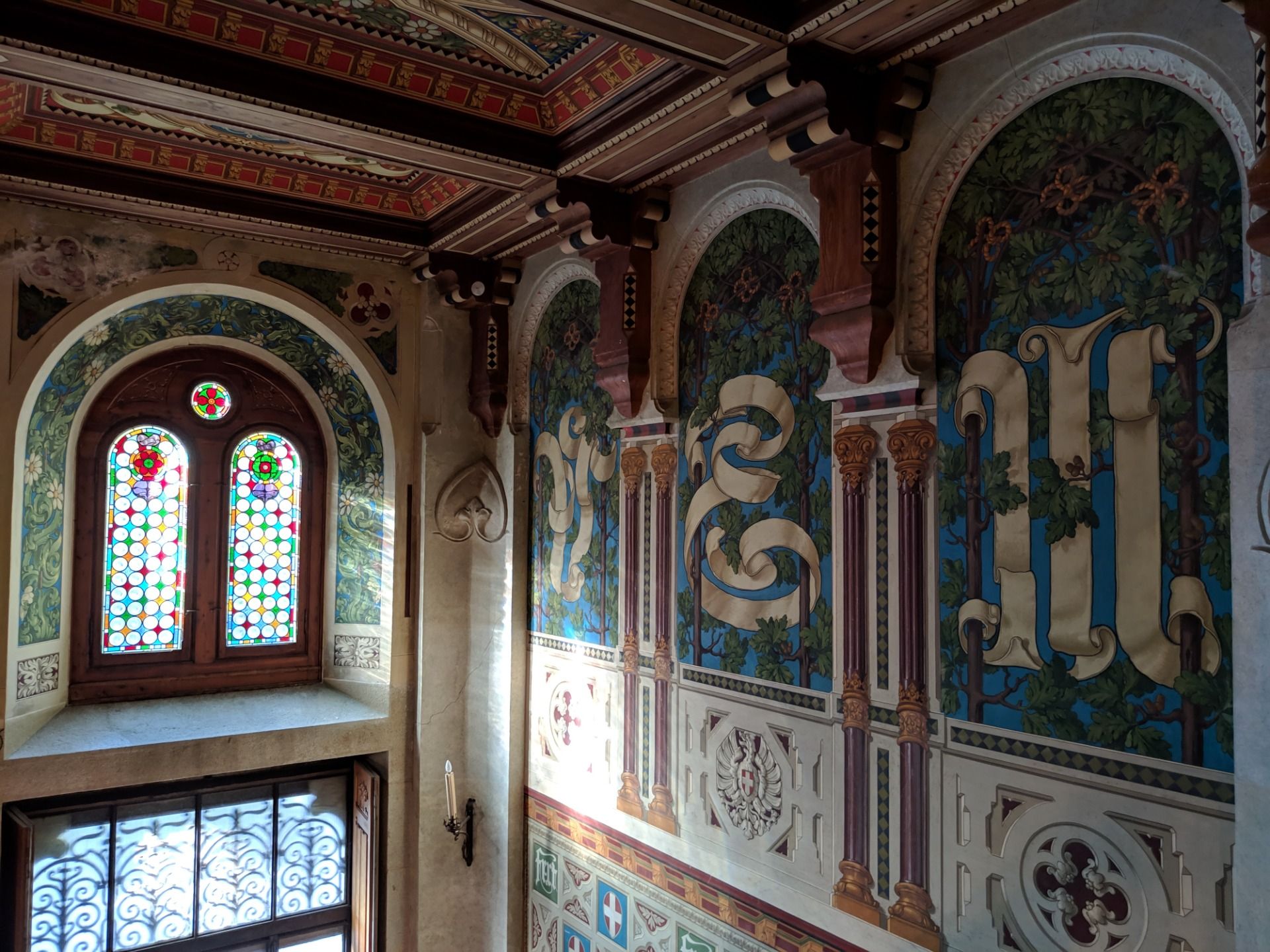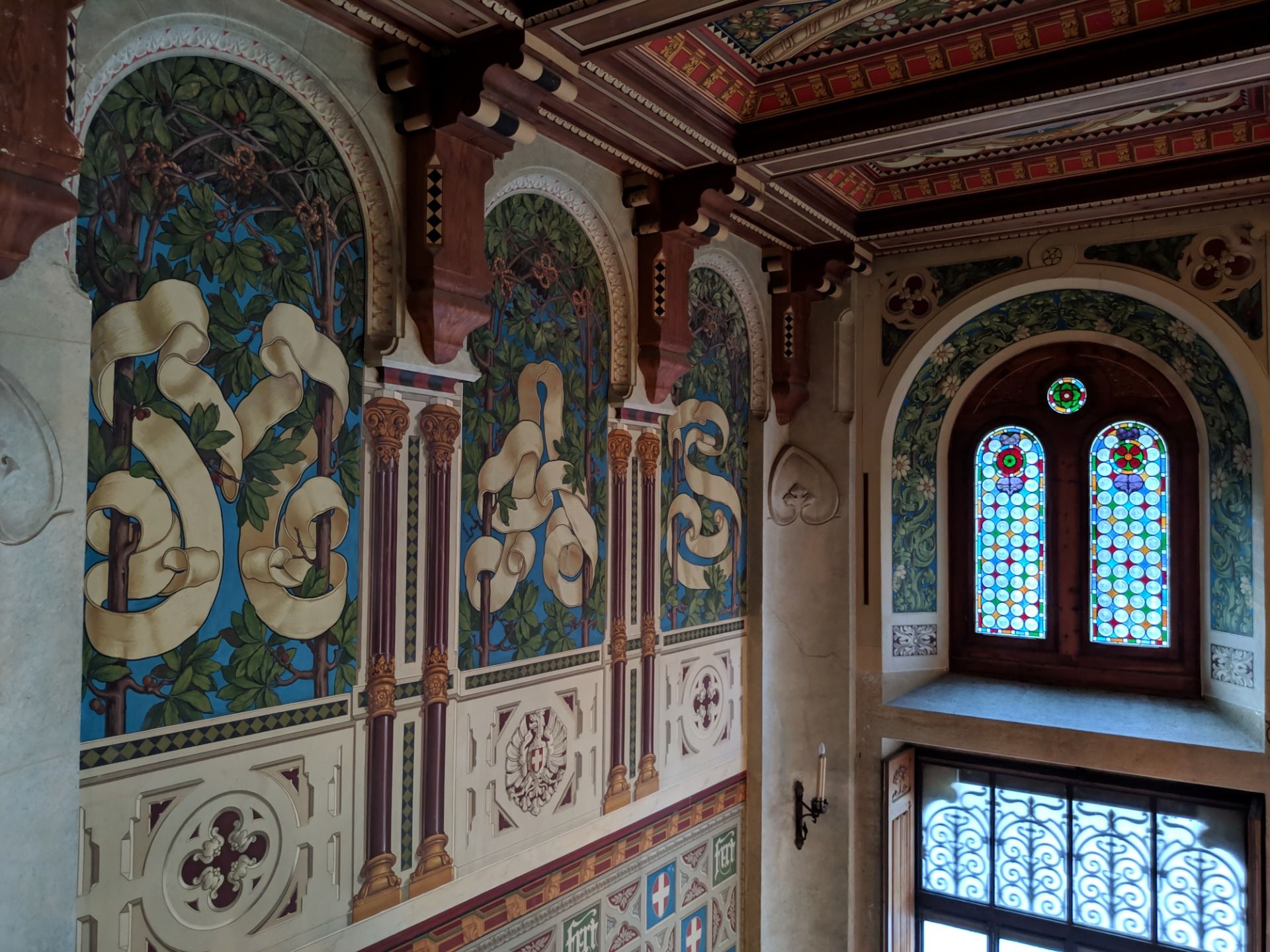 It is built on three floors, but the third is close ti the public, its towers are in neo-Gothic style, in this pictures article you can see the dining room, living rooms, the game room (the one with an original billiard table), the semicircular wood veranda and the hall of honor with the huge semi-circular durmast double staircase. On the ceilings and walls you will also find some symbols of Savoia and floral motifs particularly loved by the Sovereign.